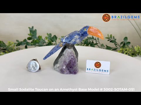 Each intricate detail of the bird is meticulously carved by skilled Brazilian artisans who have mastered the technique that combines the beauty of Brazil's gemstones with their colorful native birds into an amazing art piece. Elevate your space with the timeless charm of our Toucan gemstone bird on an Amethyst base.
