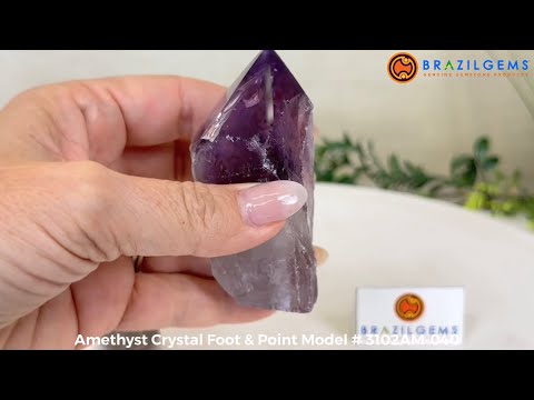 Elevate your spiritual rituals with Brazil Gems' Super Quality Polished Amethyst Crystal Foot & Point. Featuring deep purple tones, this exquisite crystal exudes incredible energy and exquisite artistry. Whether used in meditation or healing, it is a must-have for the refined crystal connoisseur. With its polished point, flat base, and raw side edges, this piece has a tactile and visual appeal, perfect to hold or display on a tabletop.