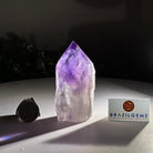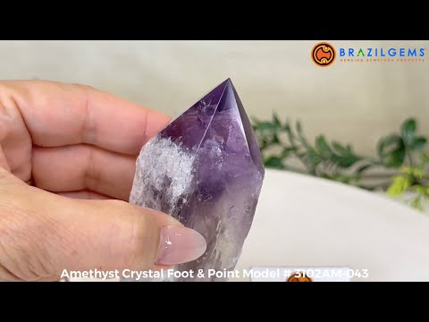 Elevate your spiritual rituals with Brazil Gems' Super Quality Polished Amethyst Crystal Foot & Point. Featuring deep purple tones, this exquisite crystal exudes incredible energy and exquisite artistry. Whether used in meditation or healing, it is a must-have for the refined crystal connoisseur. With its polished point, flat base, and raw side edges, this piece has a tactile and visual appeal, perfect to hold or display on a tabletop.