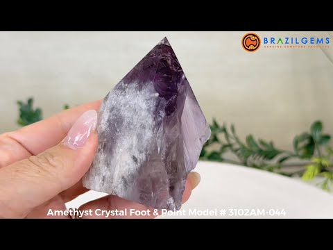 Elevate your spiritual rituals with Brazil Gems' Super Quality Polished Amethyst Crystal Foot & Point. Featuring deep purple tones, this exquisite crystal exudes incredible energy and exquisite artistry. Whether used in meditation or healing, it is a must-have for the refined crystal connoisseur. With its polished point, flat base, and raw side edges, this piece has a tactile and visual appeal, perfect to hold or display on a tabletop.