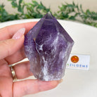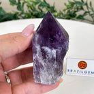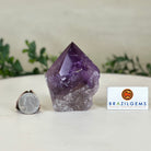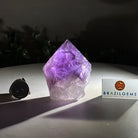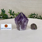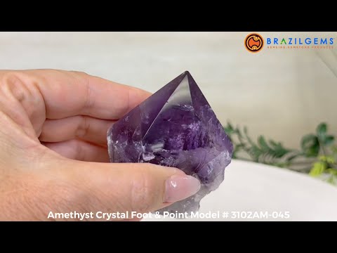 Elevate your spiritual rituals with Brazil Gems' Super Quality Polished Amethyst Crystal Foot & Point. Featuring deep purple tones, this exquisite crystal exudes incredible energy and exquisite artistry. Whether used in meditation or healing, it is a must-have for the refined crystal connoisseur. With its polished point, flat base, and raw side edges, this piece has a tactile and visual appeal, perfect to hold or display on a tabletop.