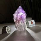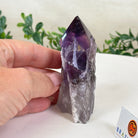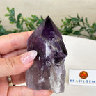 Elevate your spiritual rituals with Brazil Gems' Super Quality Polished Amethyst Crystal Foot & Point. Featuring deep purple tones, this exquisite crystal exudes incredible energy and exquisite artistry. Whether used in meditation or healing, it is a must-have for the refined crystal connoisseur. With its polished point, flat base, and raw side edges, this piece has a tactile and visual appeal, perfect to hold or display on a tabletop.