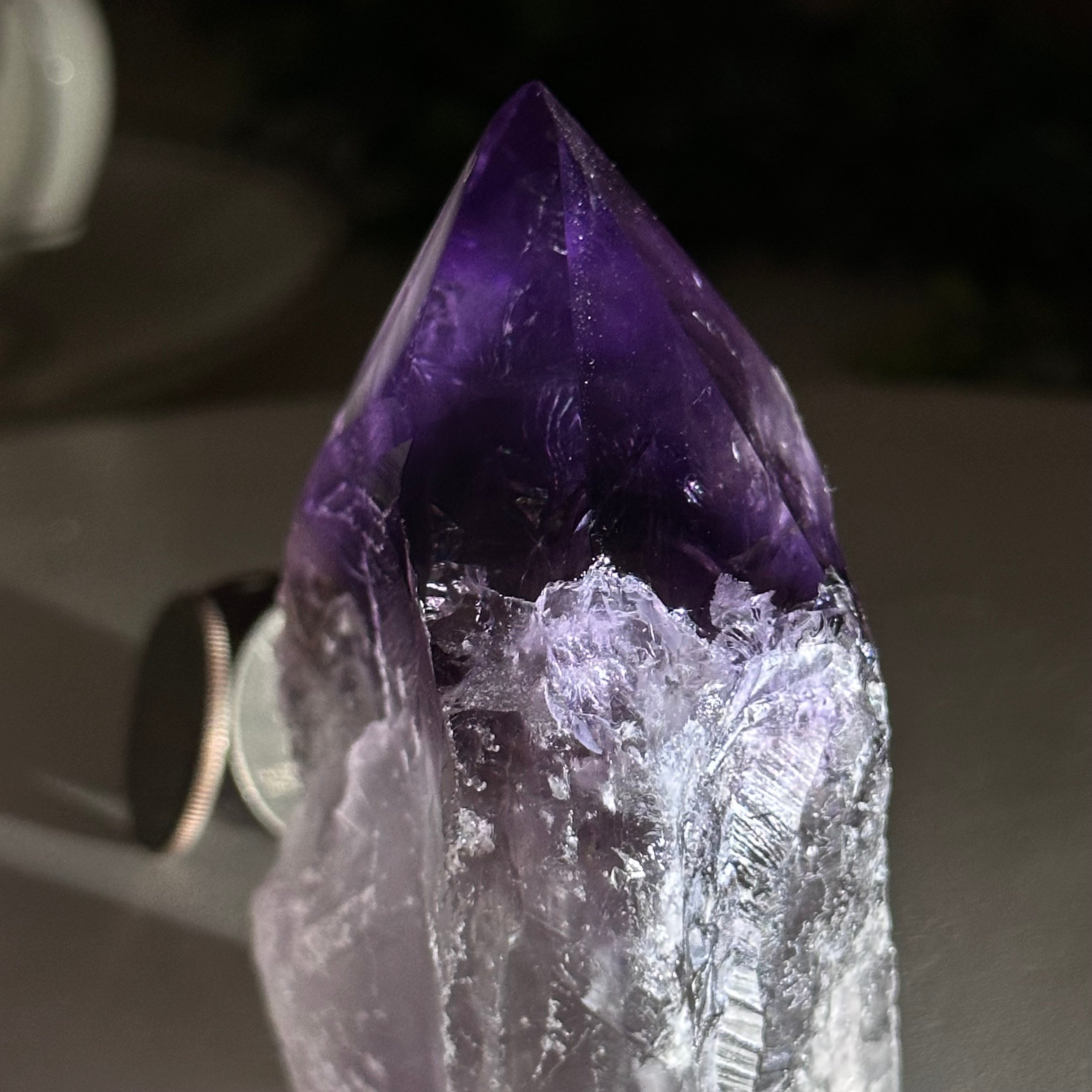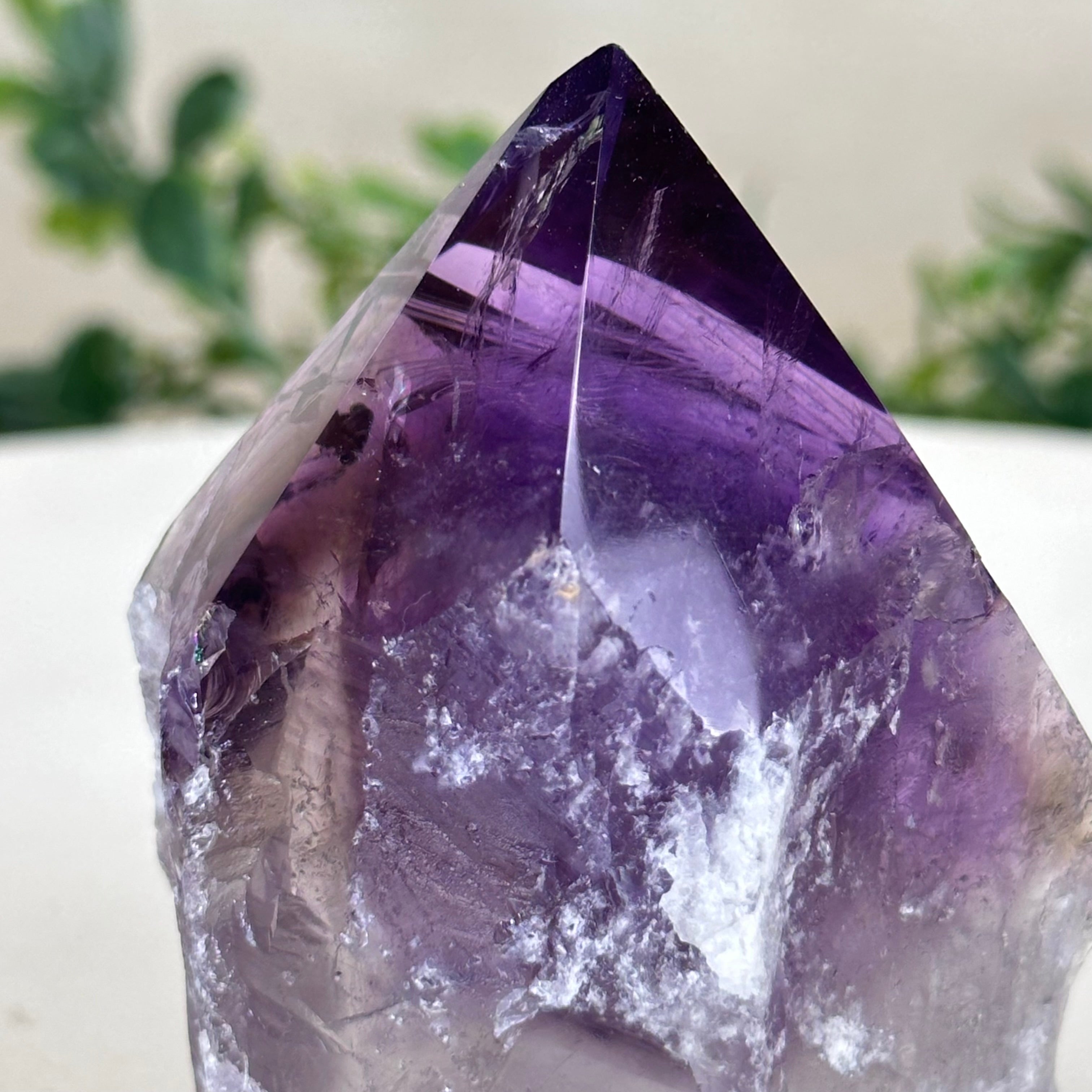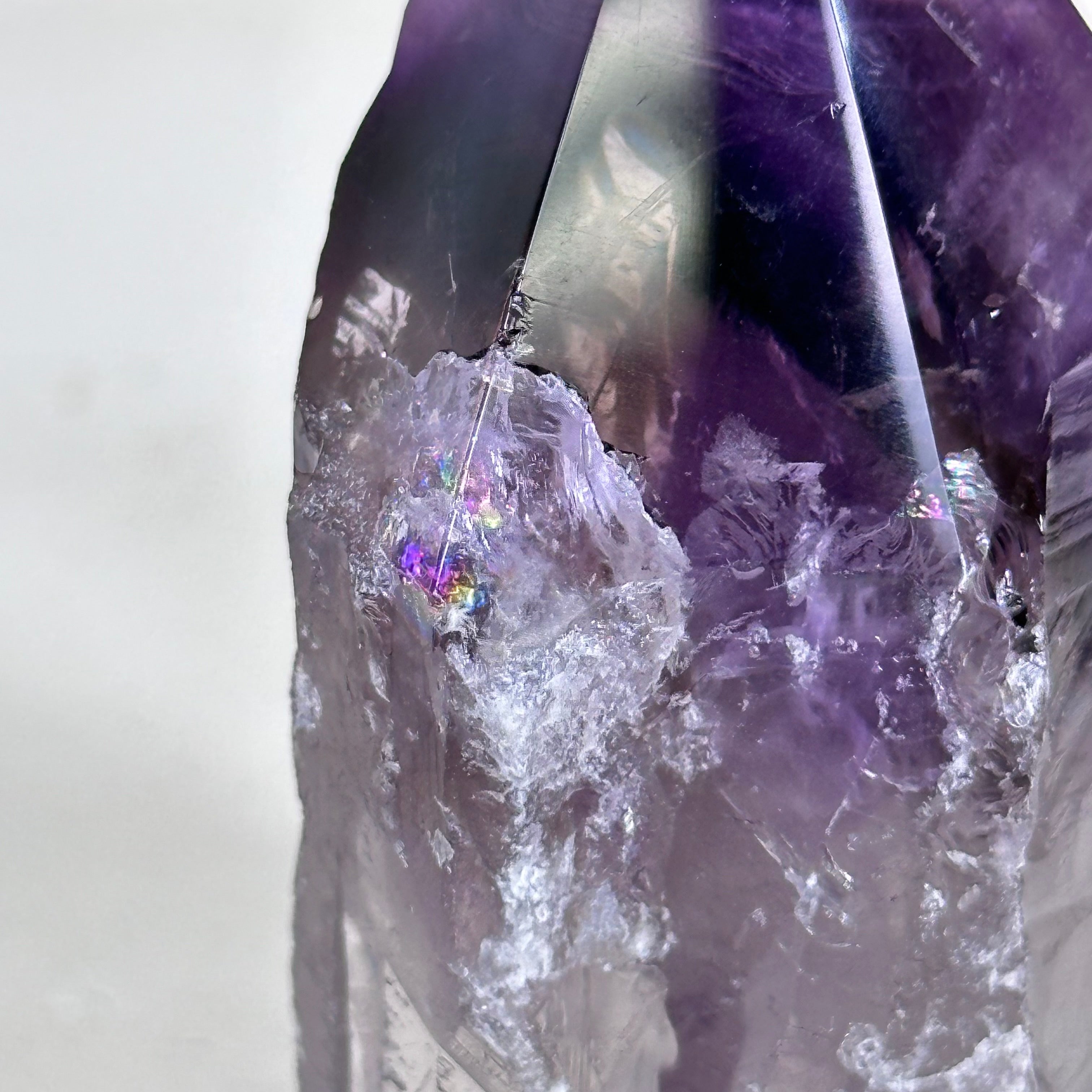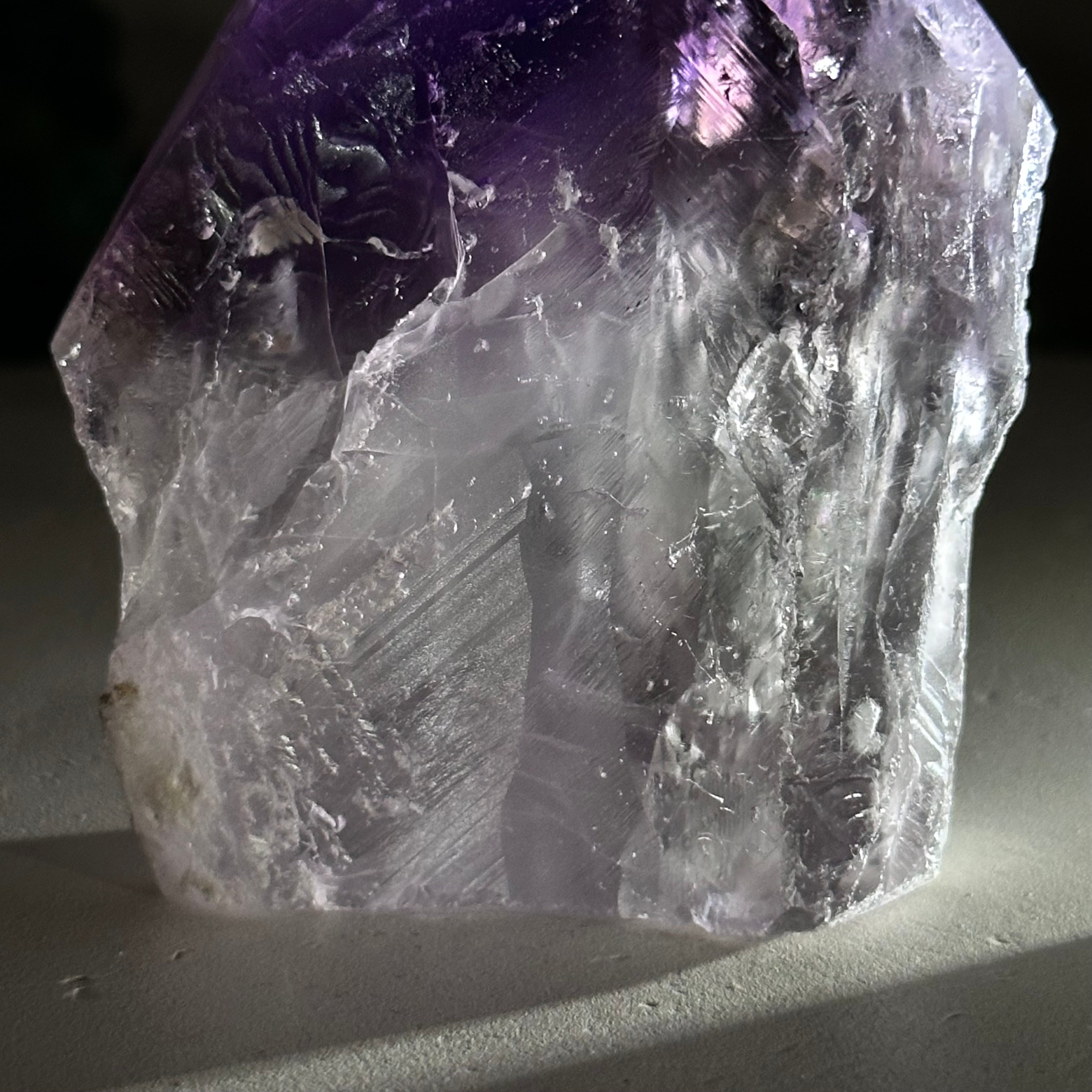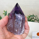 Elevate your spiritual rituals with Brazil Gems' Super Quality Polished Amethyst Crystal Foot & Point. Featuring deep purple tones, this exquisite crystal exudes incredible energy and exquisite artistry. Whether used in meditation or healing, it is a must-have for the refined crystal connoisseur. With its polished point, flat base, and raw side edges, this piece has a tactile and visual appeal, perfect to hold or display on a tabletop.