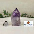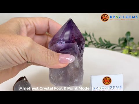 Elevate your spiritual rituals with Brazil Gems' Super Quality Polished Amethyst Crystal Foot & Point. Featuring deep purple tones, this exquisite crystal exudes incredible energy and exquisite artistry. Whether used in meditation or healing, it is a must-have for the refined crystal connoisseur. With its polished point, flat base, and raw side edges, this piece has a tactile and visual appeal, perfect to hold or display on a tabletop.