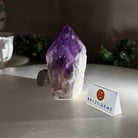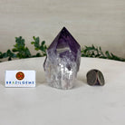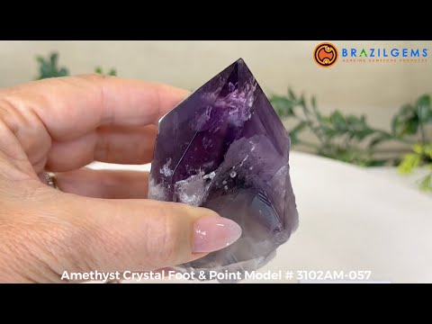 Elevate your spiritual rituals with Brazil Gems' Super Quality Polished Amethyst Crystal Foot & Point. Featuring deep purple tones, this exquisite crystal exudes incredible energy and exquisite artistry. Whether used in meditation or healing, it is a must-have for the refined crystal connoisseur. With its polished point, flat base, and raw side edges, this piece has a tactile and visual appeal, perfect to hold or display on a tabletop.