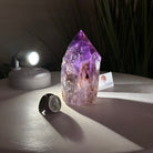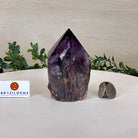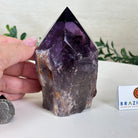 Elevate your spiritual rituals with Brazil Gems' Super Quality Polished Amethyst Crystal Foot & Point. Featuring deep purple tones, this exquisite crystal exudes incredible energy and exquisite artistry. Whether used in meditation or healing, it is a must-have for the refined crystal connoisseur. With its polished point, flat base, and raw side edges, this piece has a tactile and visual appeal, perfect to hold or display on a tabletop.