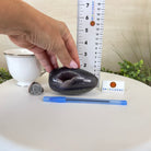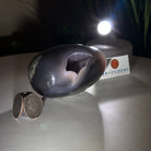 This exquisite Amethyst Geode Egg is a stunning fusion of nature’s beauty and expert craftsmanship. Polished to a smooth, glossy finish, this geode displays nicely shaped druzy crystals inside making it ideal for meditation, energy work, or as a captivating décor piece.