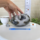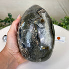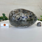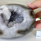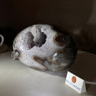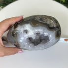 This exquisite Amethyst Geode Egg is a stunning fusion of nature’s beauty and expert craftsmanship. Polished to a smooth, glossy finish, this geode displays nicely shaped druzy crystals inside making it ideal for meditation, energy work, or as a captivating décor piece.