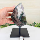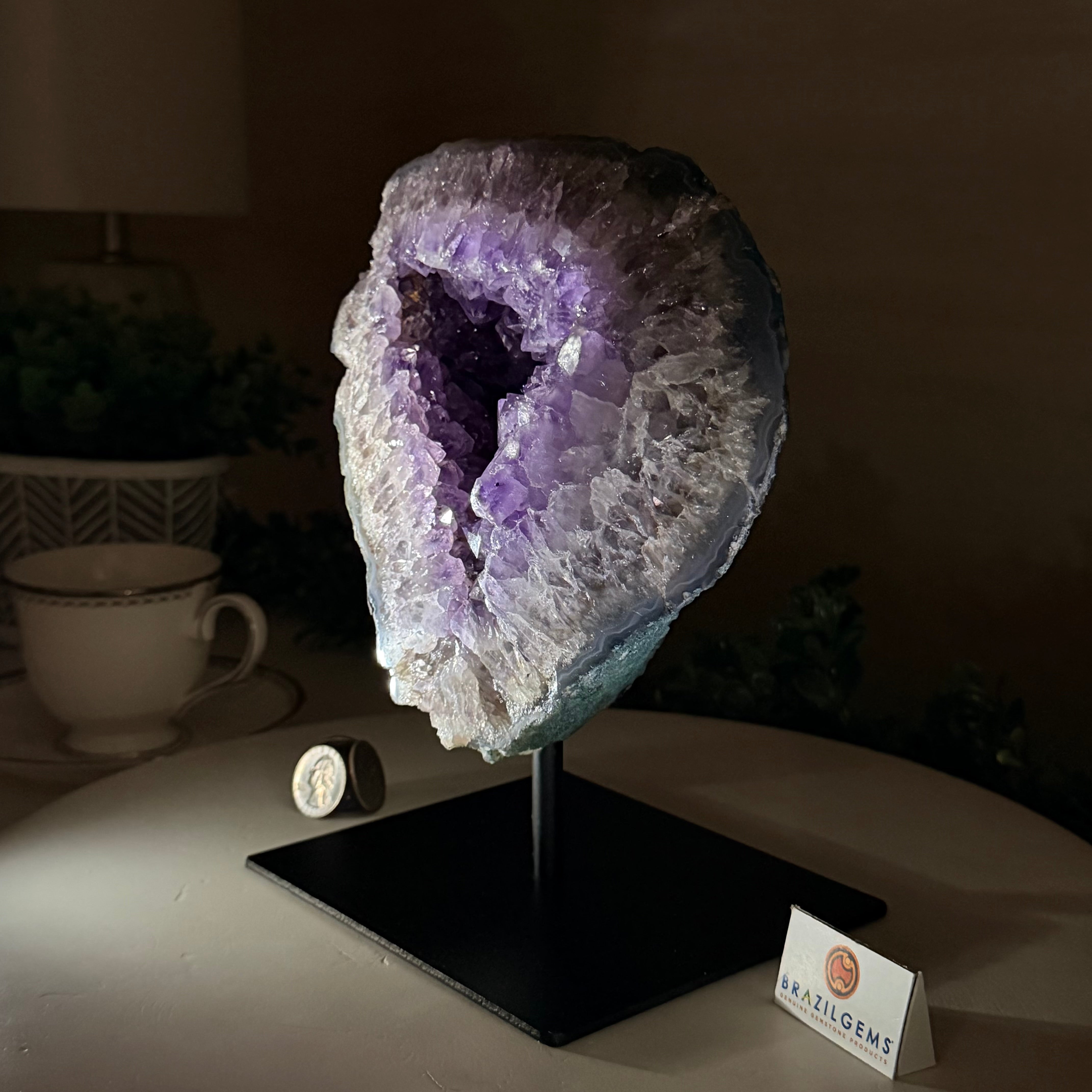 Disclaimer: This is a natural gemstone crystal sold by Brazil Gems® as is and as you see it in its images and video. It is the exact piece you will receive. It may contain natural imperfections as well as imperfections, repairs, scratches and/or broken edges from the extraction, polishing, mounting and prepping processes. The crystal has a hole drilled in its bottom to allow it to be mounted on its black painted metal stand. It can be removed from its stand. At Brazil Gems® we make every effort to get measurements as exact as possible but they are done by human hands and eyes and therefore may have minor discrepancies.