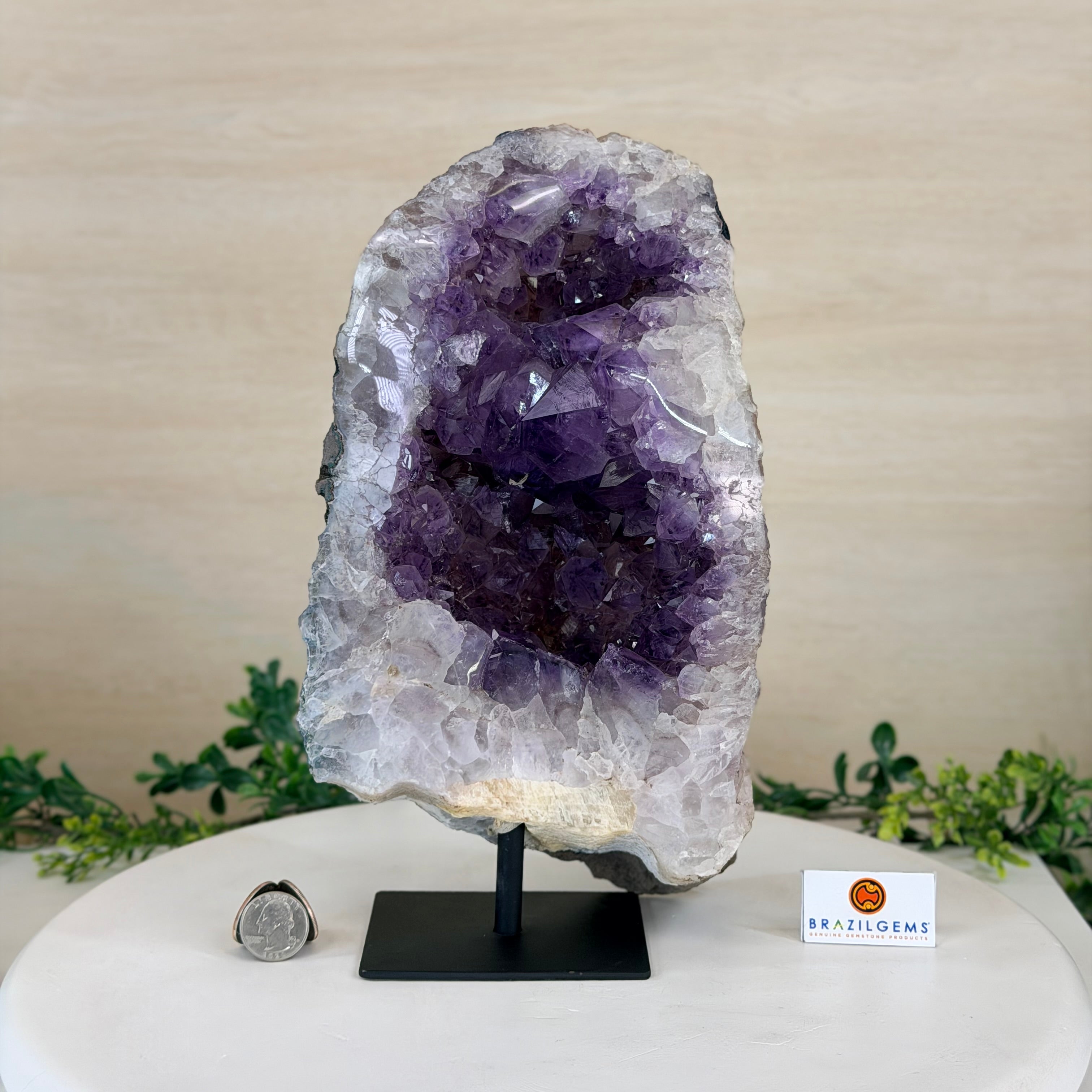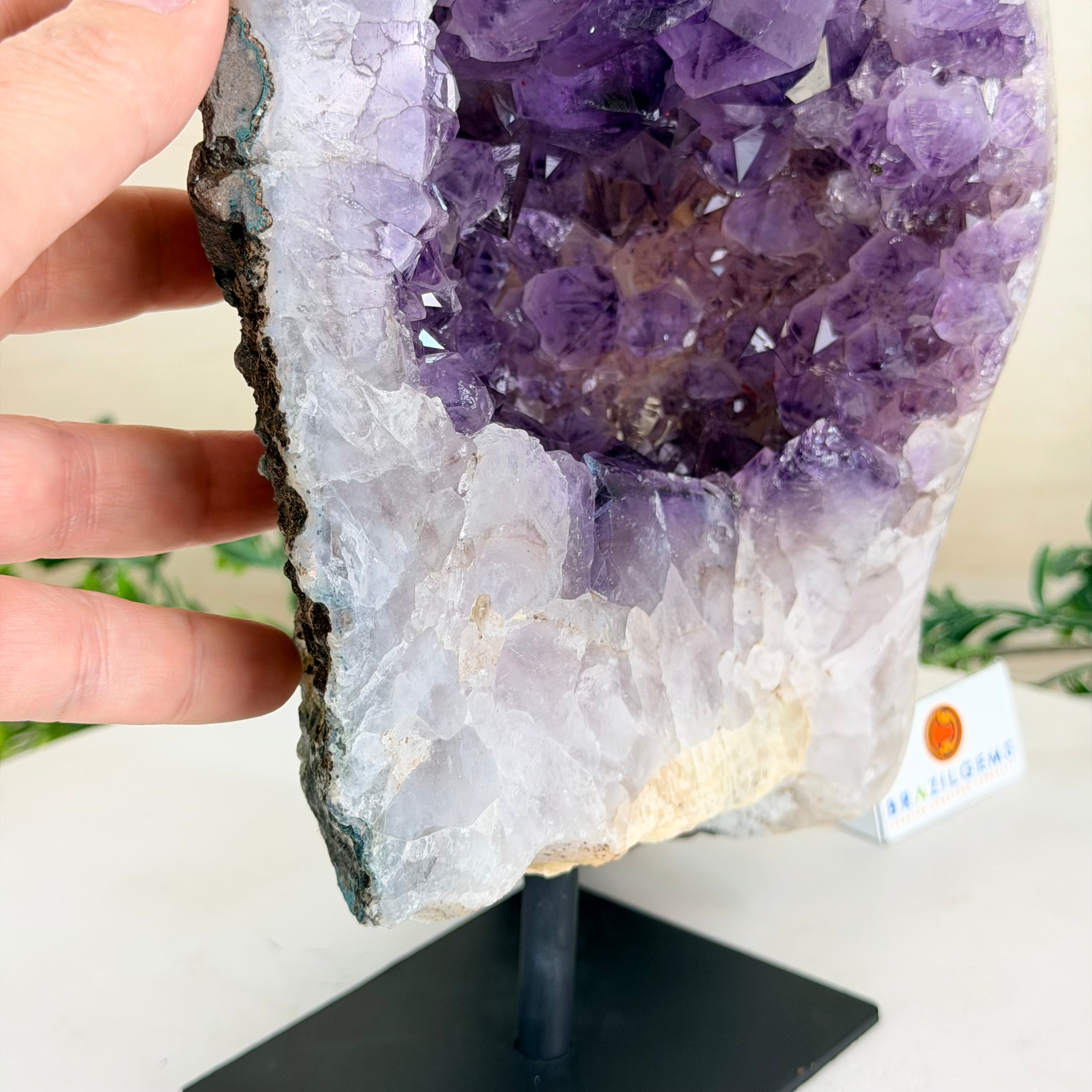 Disclaimer: This is a natural gemstone crystal sold by Brazil Gems® as is and as you see it in its images and video. It is the exact piece you will receive. It may contain natural imperfections as well as imperfections, repairs, scratches and/or broken edges from the extraction, polishing, mounting and prepping processes. The crystal has a hole drilled in its bottom to allow it to be mounted on its black painted metal stand. It can be removed from its stand. At Brazil Gems® we make every effort to get measurements as exact as possible but they are done by human hands and eyes and therefore may have minor discrepancies.