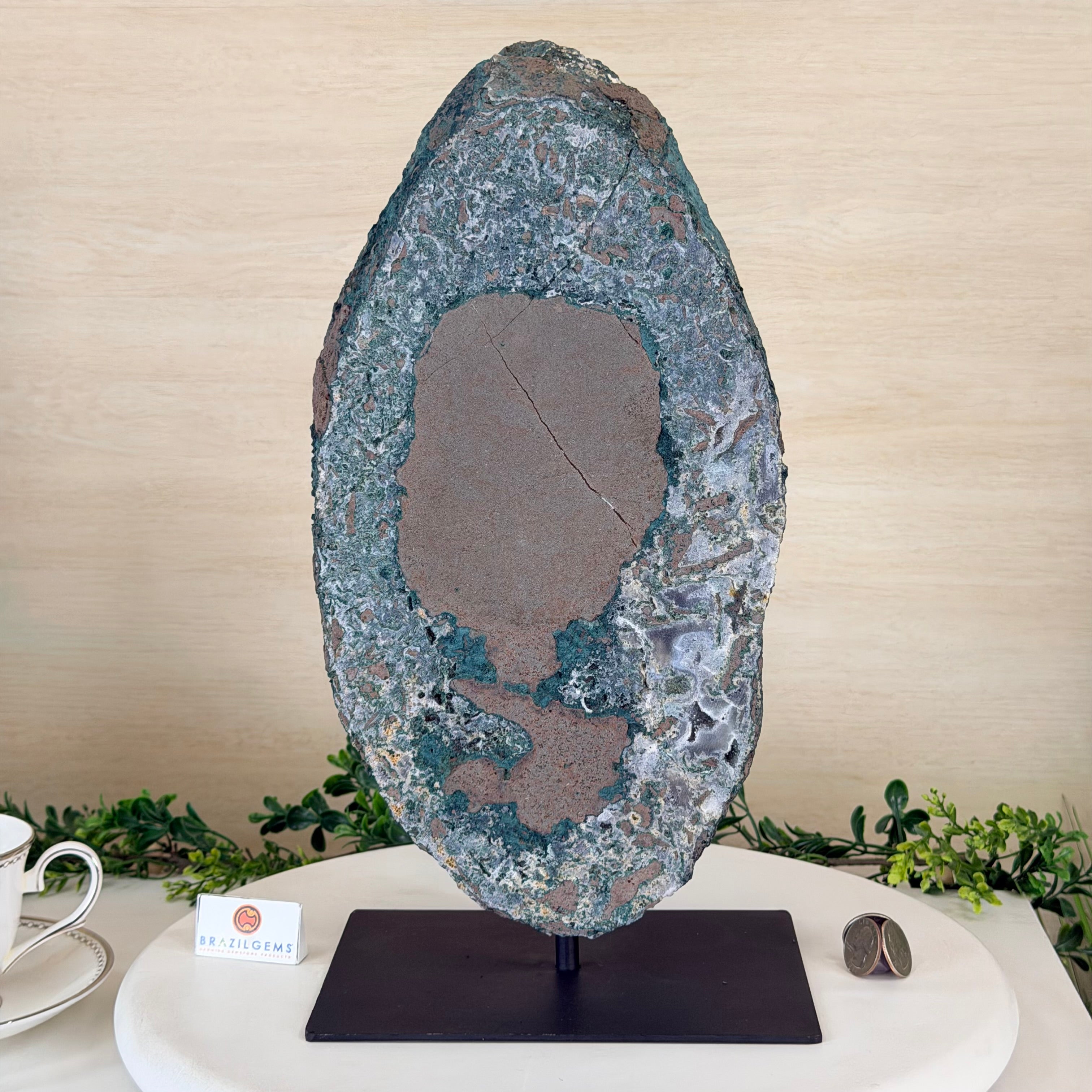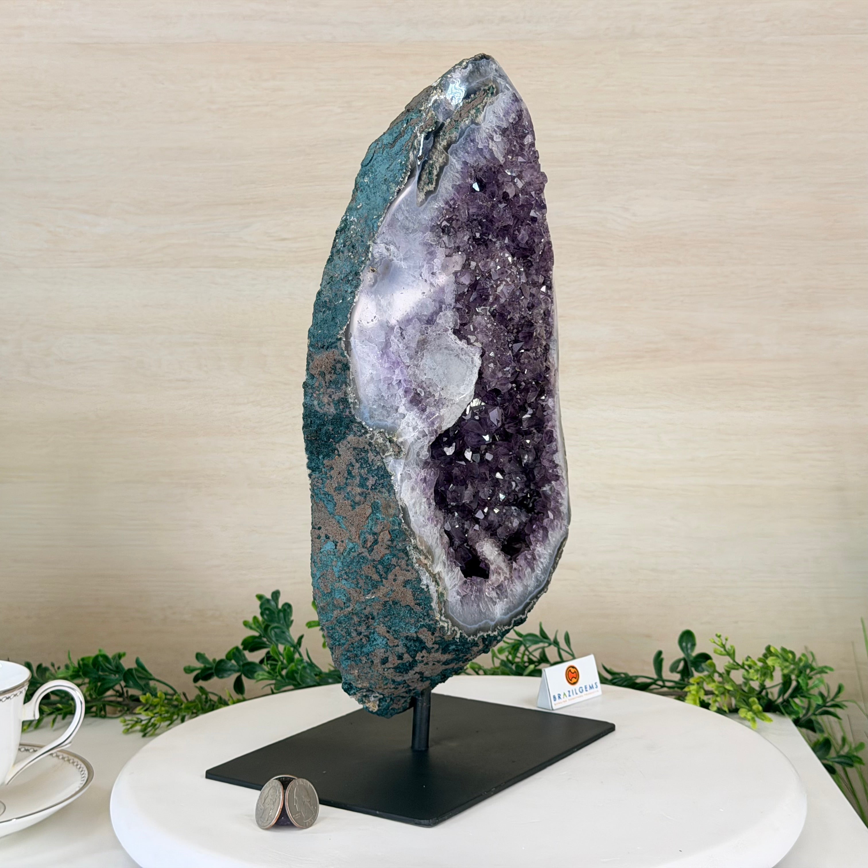 Disclaimer: This is a natural gemstone crystal sold by Brazil Gems® as is and as you see it in its images and video. It is the exact piece you will receive. It may contain natural imperfections as well as imperfections, repairs, scratches and/or broken edges from the extraction, polishing, mounting and prepping processes. The crystal has a hole drilled in its bottom to allow it to be mounted on its black painted metal stand. It can be removed from its stand. At Brazil Gems® we make every effort to get measurements as exact as possible but they are done by human hands and eyes and therefore may have minor discrepancies.
