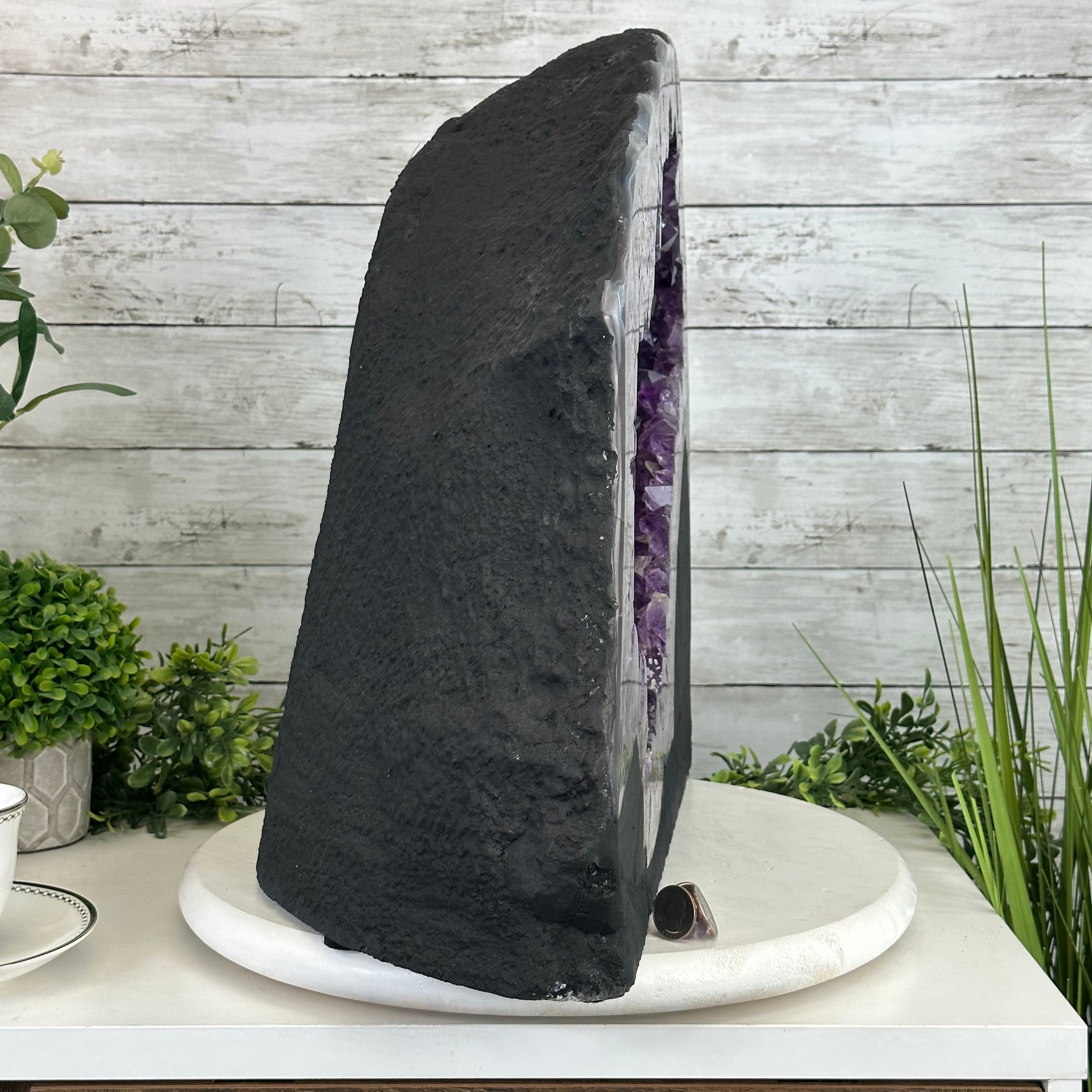 Disclaimer: This is a natural gemstone crystal sold as is and as you see it in its images and video. It is the exact one you will receive. It may contain natural imperfections and/or imperfections, broken edges and repairs from the extraction, polishing and prepping processes. In order for it to stand on its own, the back and bottom have been reinforced with a small amount of cement then painted black. We take every effort to get measurements as exact as possible but they are done by human hands & eyes and therefore may have minor discrepancies.