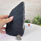 Disclaimer: This is a natural gemstone crystal sold by Brazil Gems® as is and as you see it in its images and video. It is the exact one you will receive. It may contain natural imperfections as well as imperfections, broken edges and repairs from the extraction, polishing and prepping processes. In order for it to stand on its own, the back and bottom have been reinforced with a small amount of cement then painted black. At Brazil Gems® we make every effort to get measurements as exact as possible but they are done by human hands and eyes and therefore may have minor discrepancies.