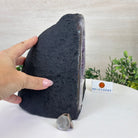 Disclaimer: This is a natural gemstone crystal sold by Brazil Gems® as is and as you see it in its images and video. It is the exact one you will receive. It may contain natural imperfections as well as imperfections, broken edges and repairs from the extraction, polishing and prepping processes. In order for it to stand on its own, the back and bottom have been reinforced with a small amount of cement then painted black. At Brazil Gems® we make every effort to get measurements as exact as possible but they are done by human hands and eyes and therefore may have minor discrepancies.