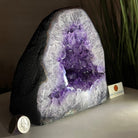 Disclaimer: This is a natural gemstone crystal sold by Brazil Gems® as is and as you see it in its images and video. It is the exact one you will receive. It may contain natural imperfections as well as imperfections, broken edges and repairs from the extraction, polishing and prepping processes. In order for it to stand on its own, the back and bottom have been reinforced with a small amount of cement then painted black. At Brazil Gems® we make every effort to get measurements as exact as possible but they are done by human hands and eyes and therefore may have minor discrepancies.