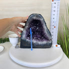 Disclaimer: This is a natural gemstone crystal sold by Brazil Gems® as is and as you see it in its images and video. It is the exact one you will receive. It may contain natural imperfections as well as imperfections, broken edges and repairs from the extraction, polishing and prepping processes. In order for it to stand on its own, the back and bottom have been reinforced with a small amount of cement then painted black. At Brazil Gems® we make every effort to get measurements as exact as possible but they are done by human hands and eyes and therefore may have minor discrepancies.