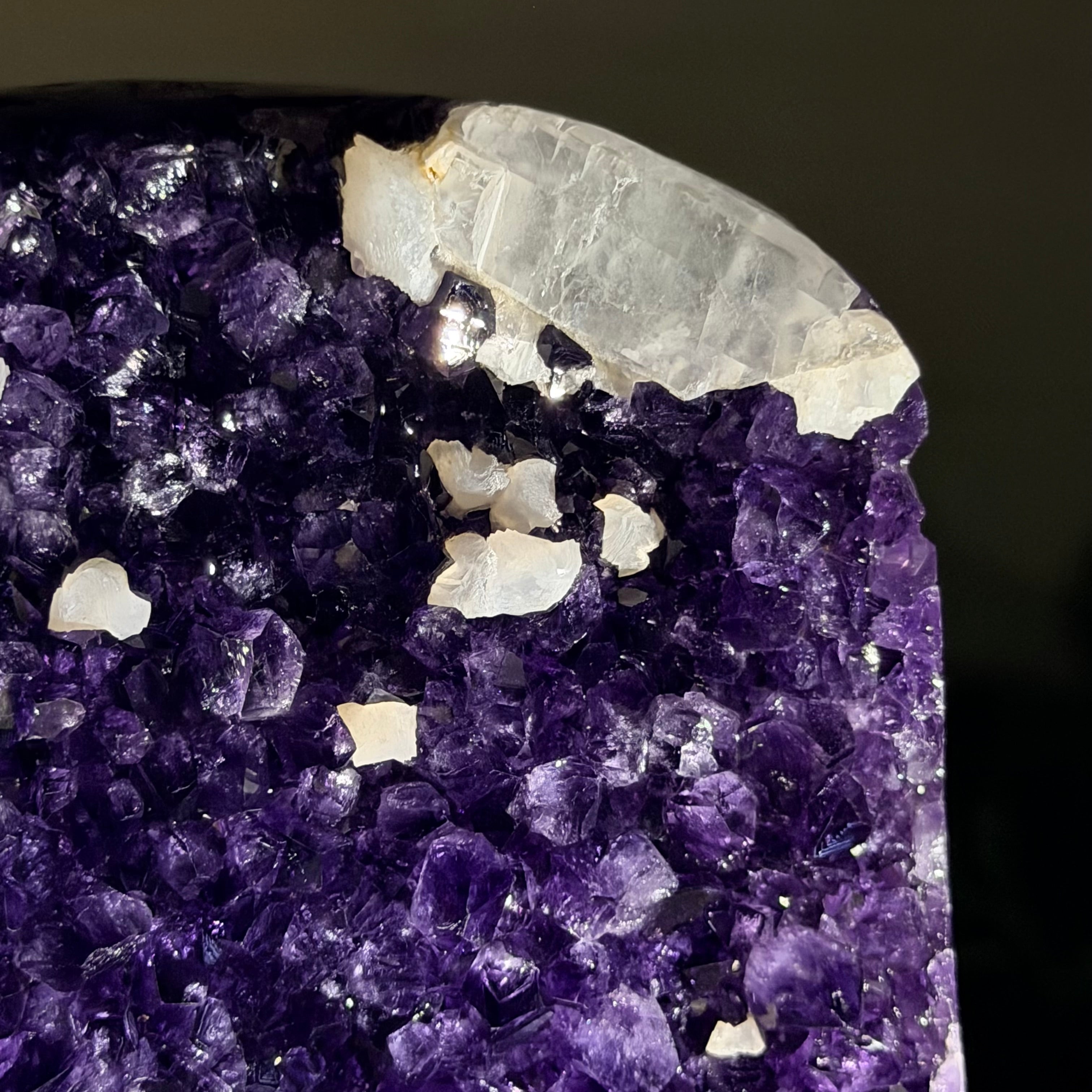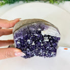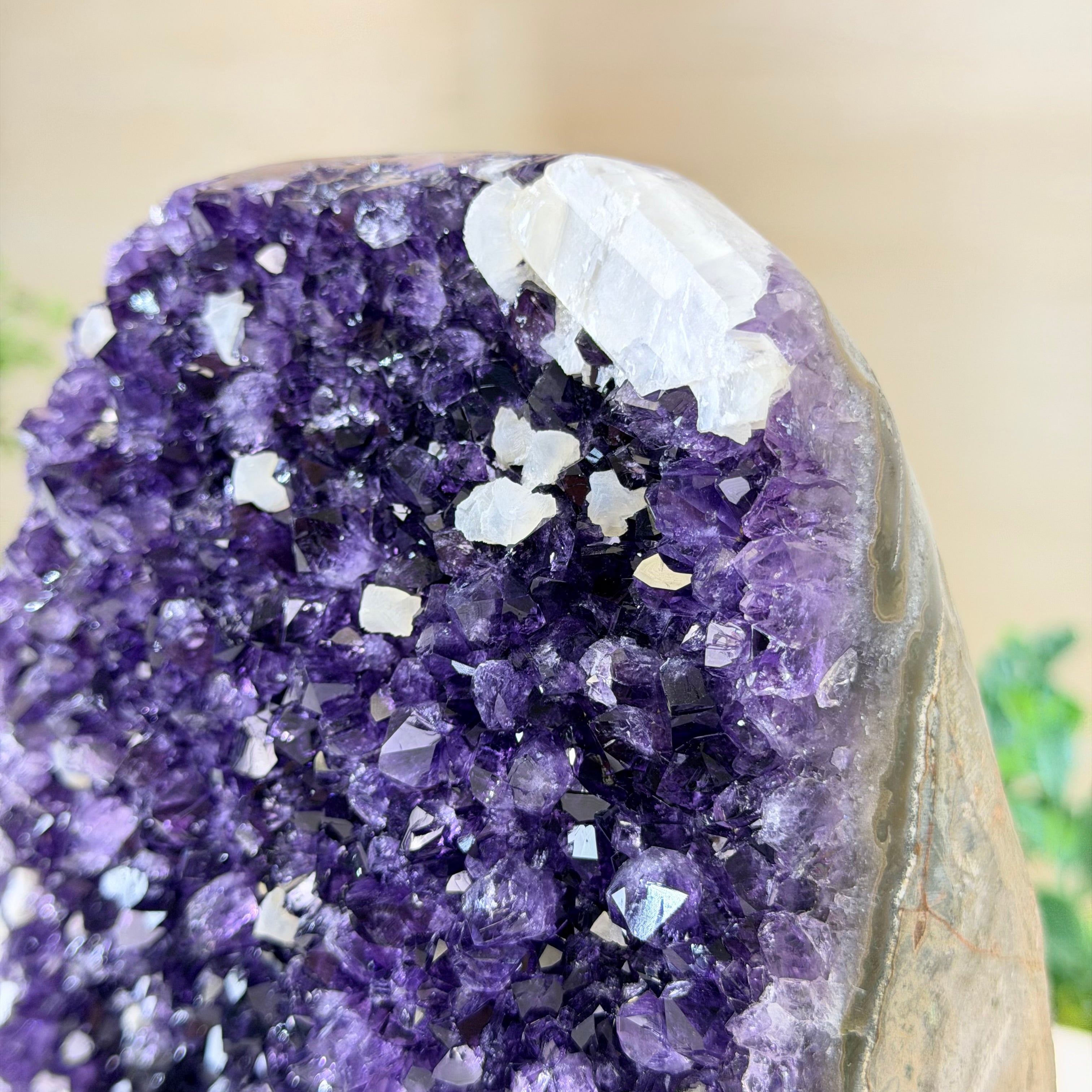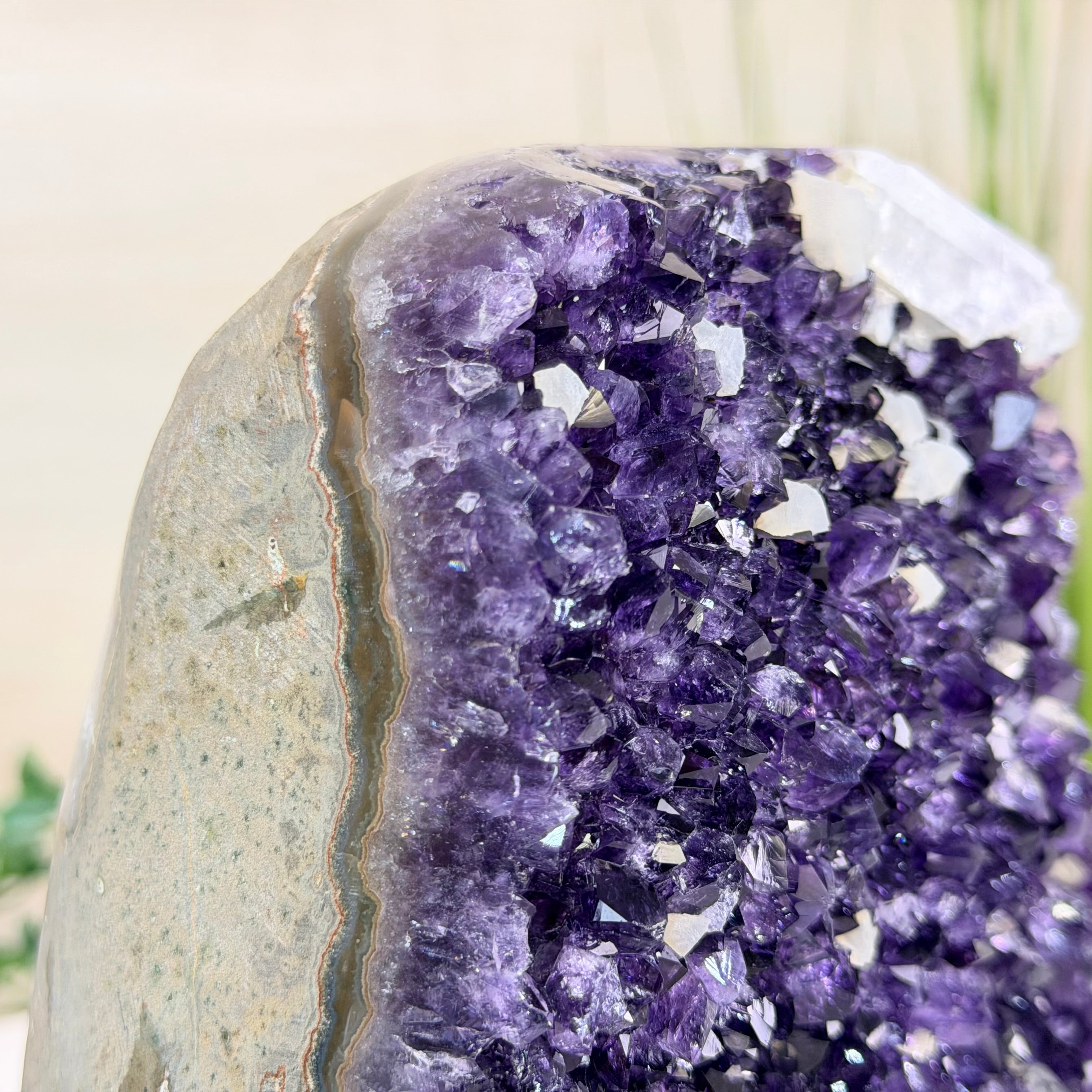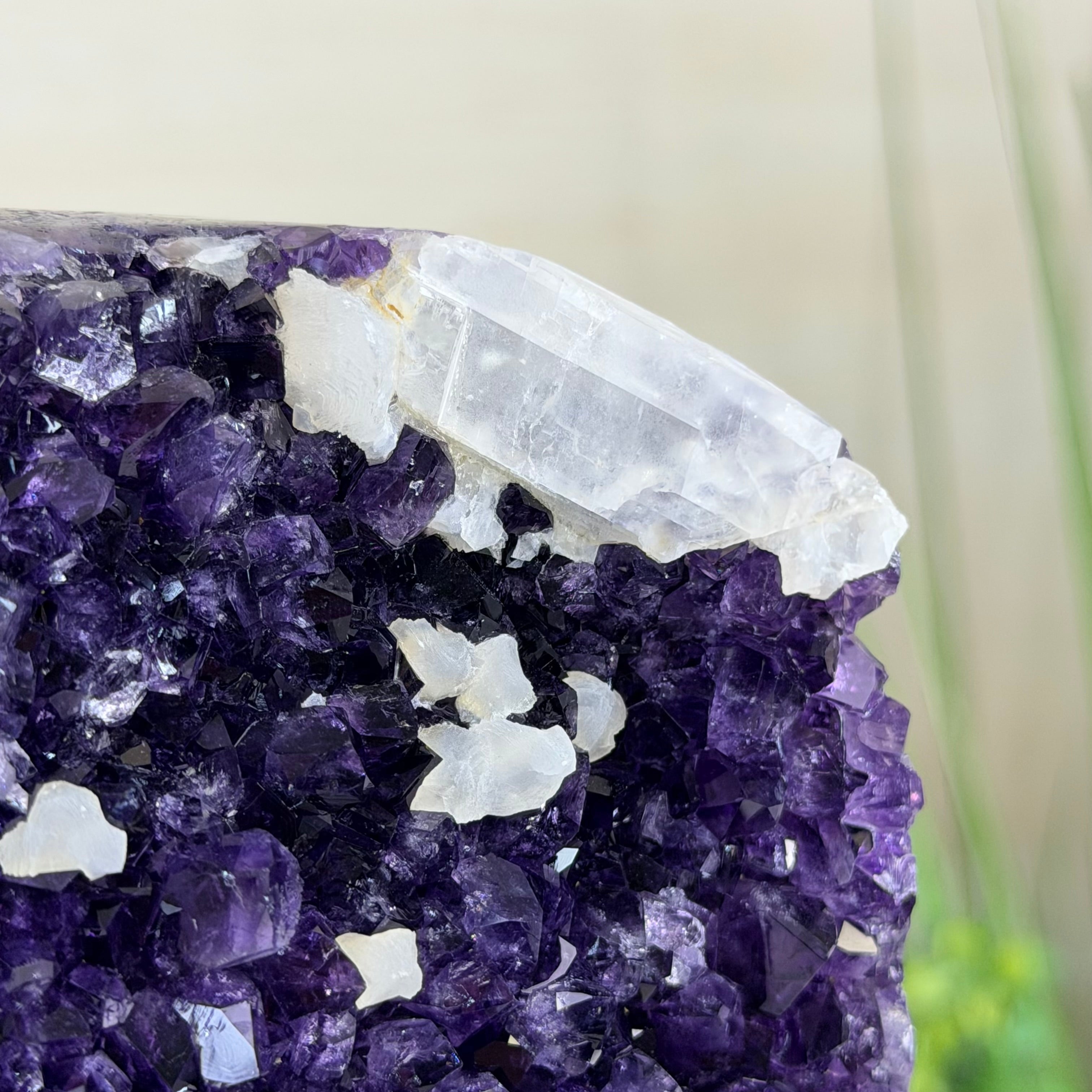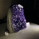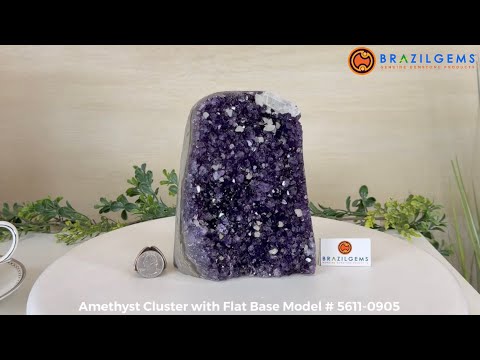 Embrace the natural beauty of this Small Brazilian Extra Plus Quality Amethyst Crystal Cluster with a flat base by Brazil Gems®. This piece has deep purple colors, nicely shaped crystal points and polished edges.
