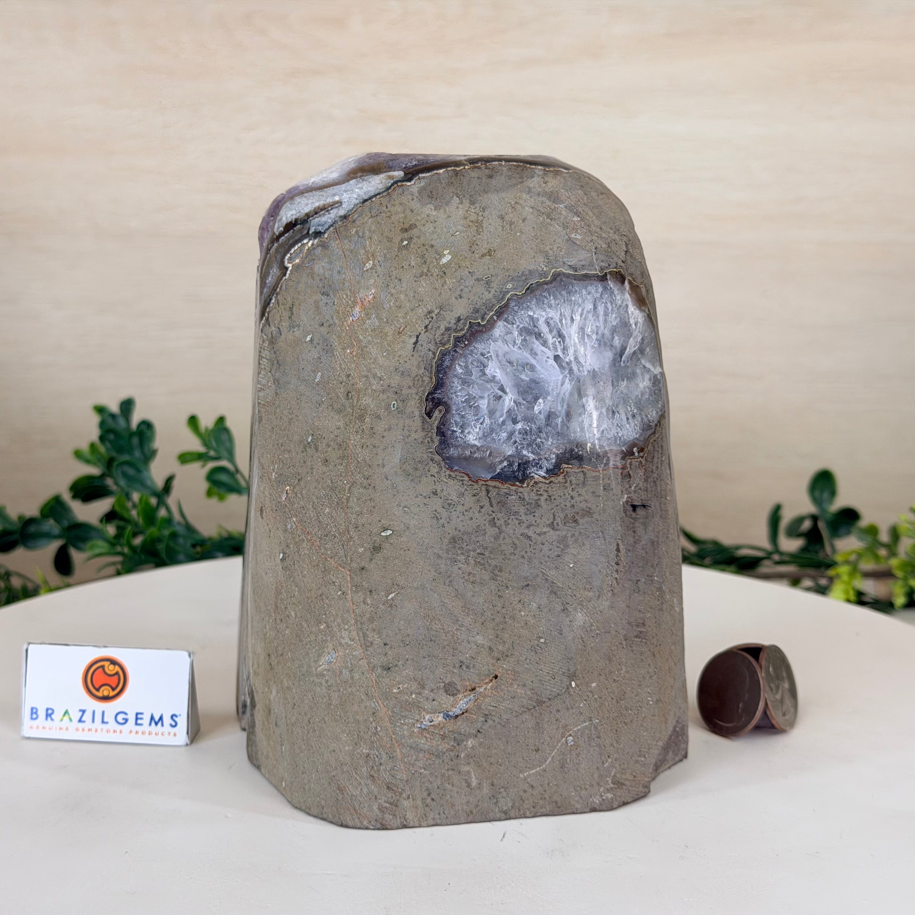Disclaimer: This is a natural gemstone crystal sold by Brazil Gems® as is and as you see it in its images and video. It is the exact one you will receive. It may contain natural imperfections and/or imperfections, broken edges and repairs from the extraction, polishing and prepping processes. In order for it to stand on its own the bottom has been cut flat. At Brazil Gems® we make every effort to get measurements as exact as possible but they are done by human hands and eyes and therefore may have minor discrepancies.