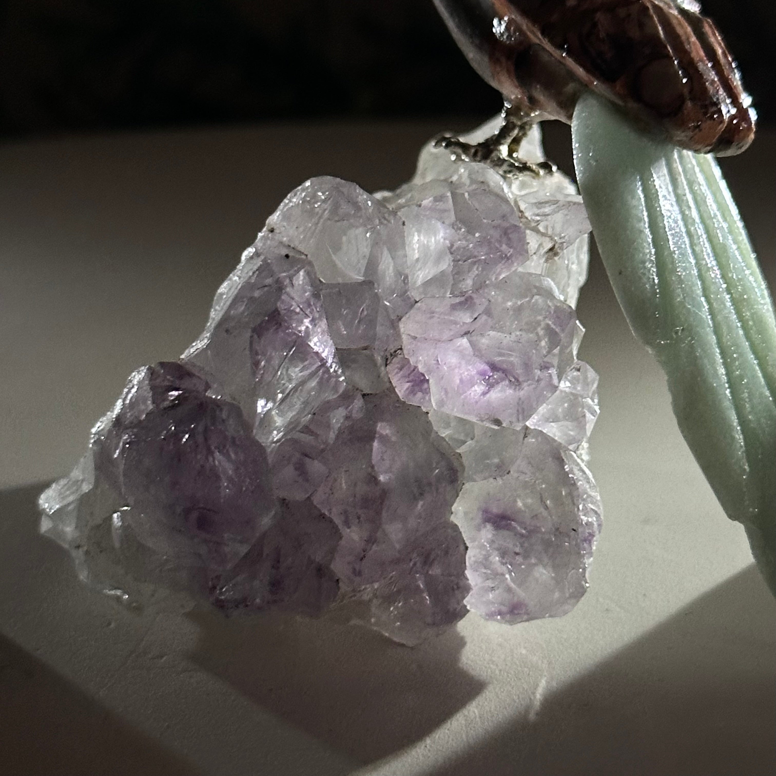 Amethyst can offer a connection to your spirit. Thought to help strengthen your Crown or Third Eye Chakra, the presence of amethyst can offer an aura of protection and healing. Those seeking freedom from unhealthy attachments or addiction may be nourished in the presence of amethyst. If you only have space for one talisman, amethyst is an excellent choice for all-around healing and strength.
