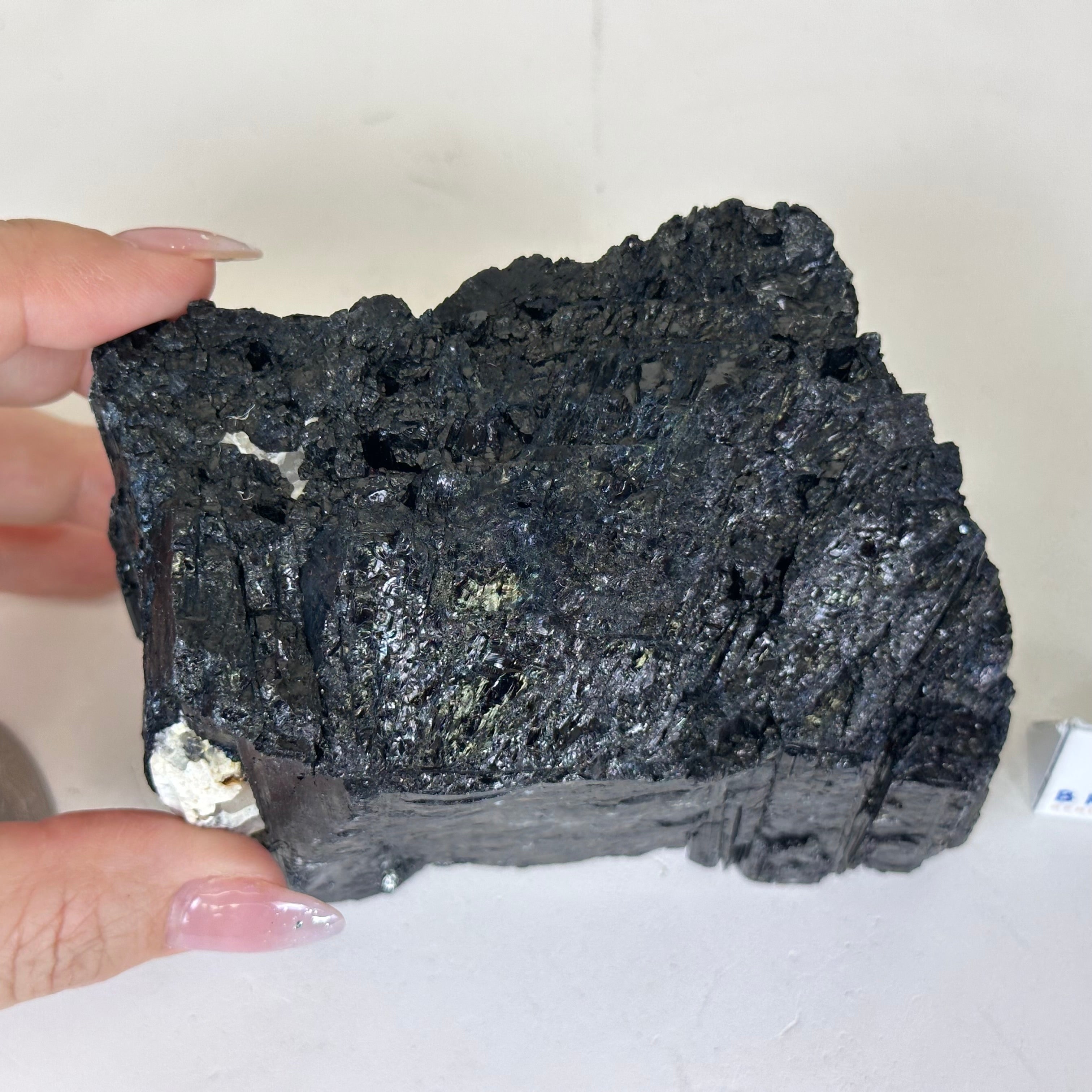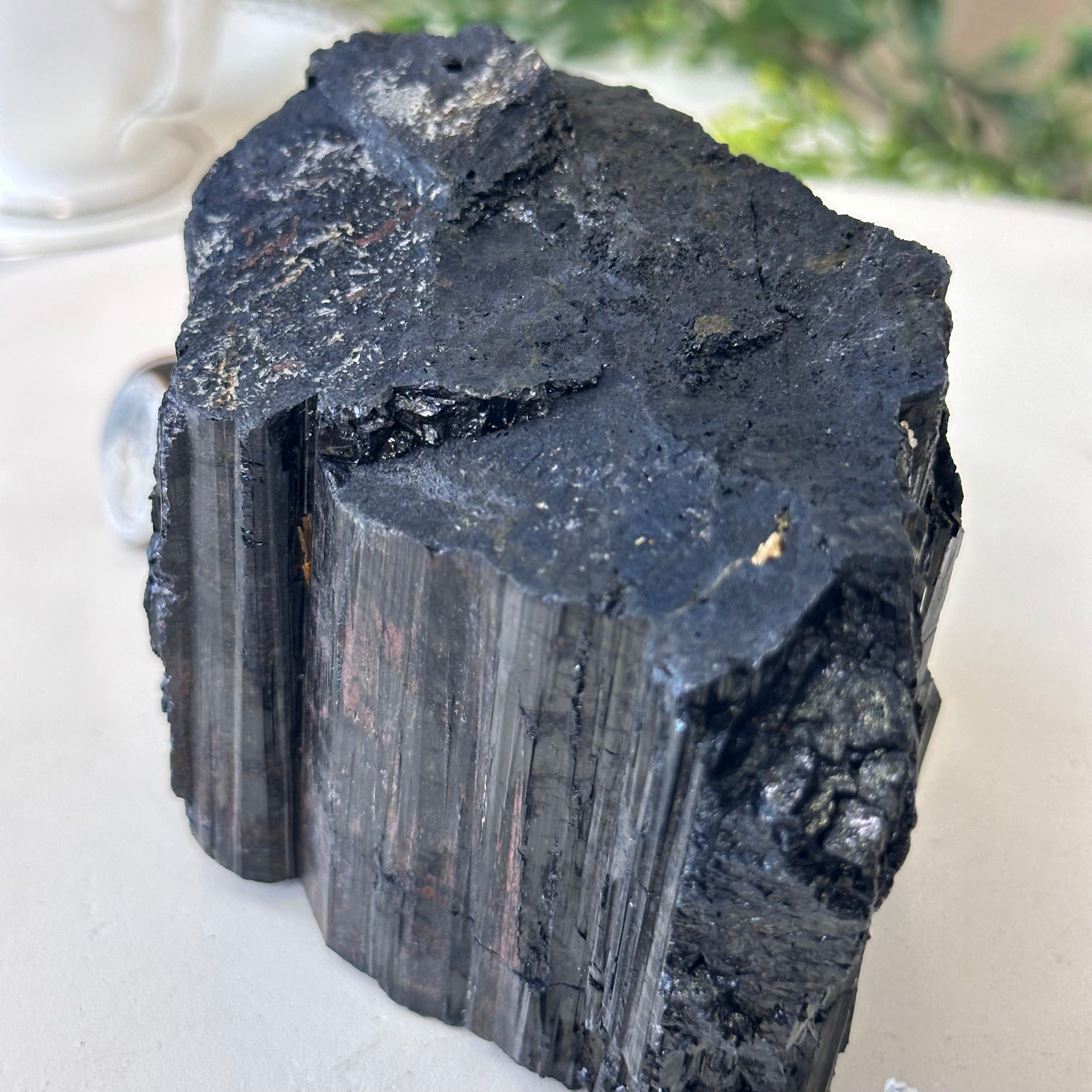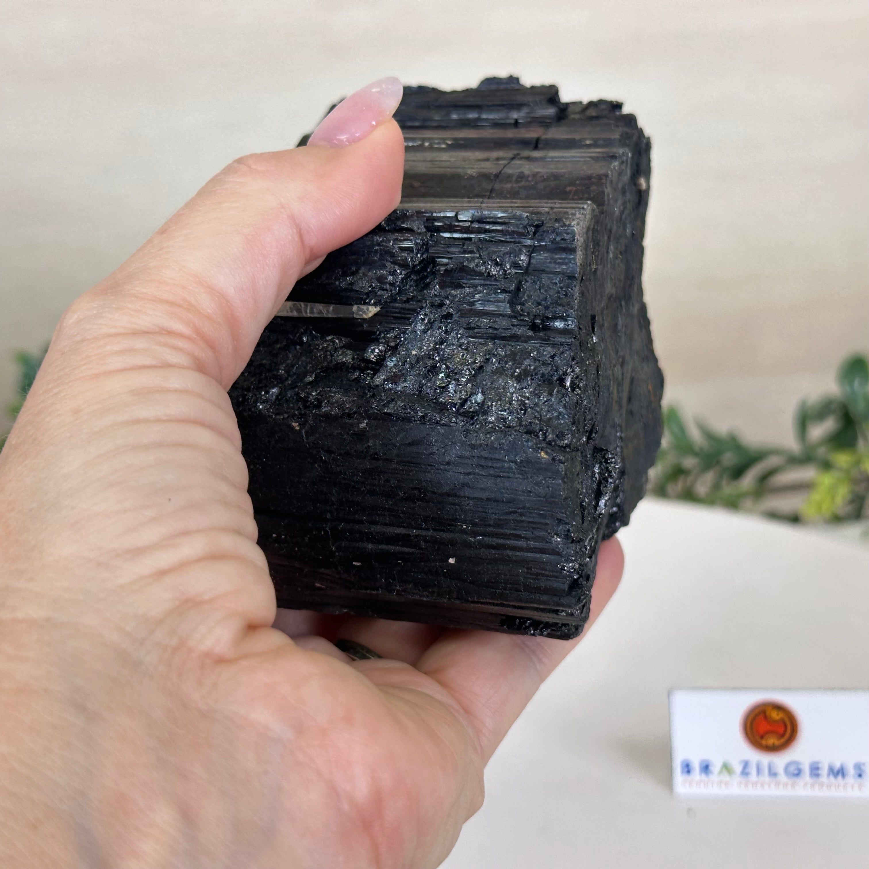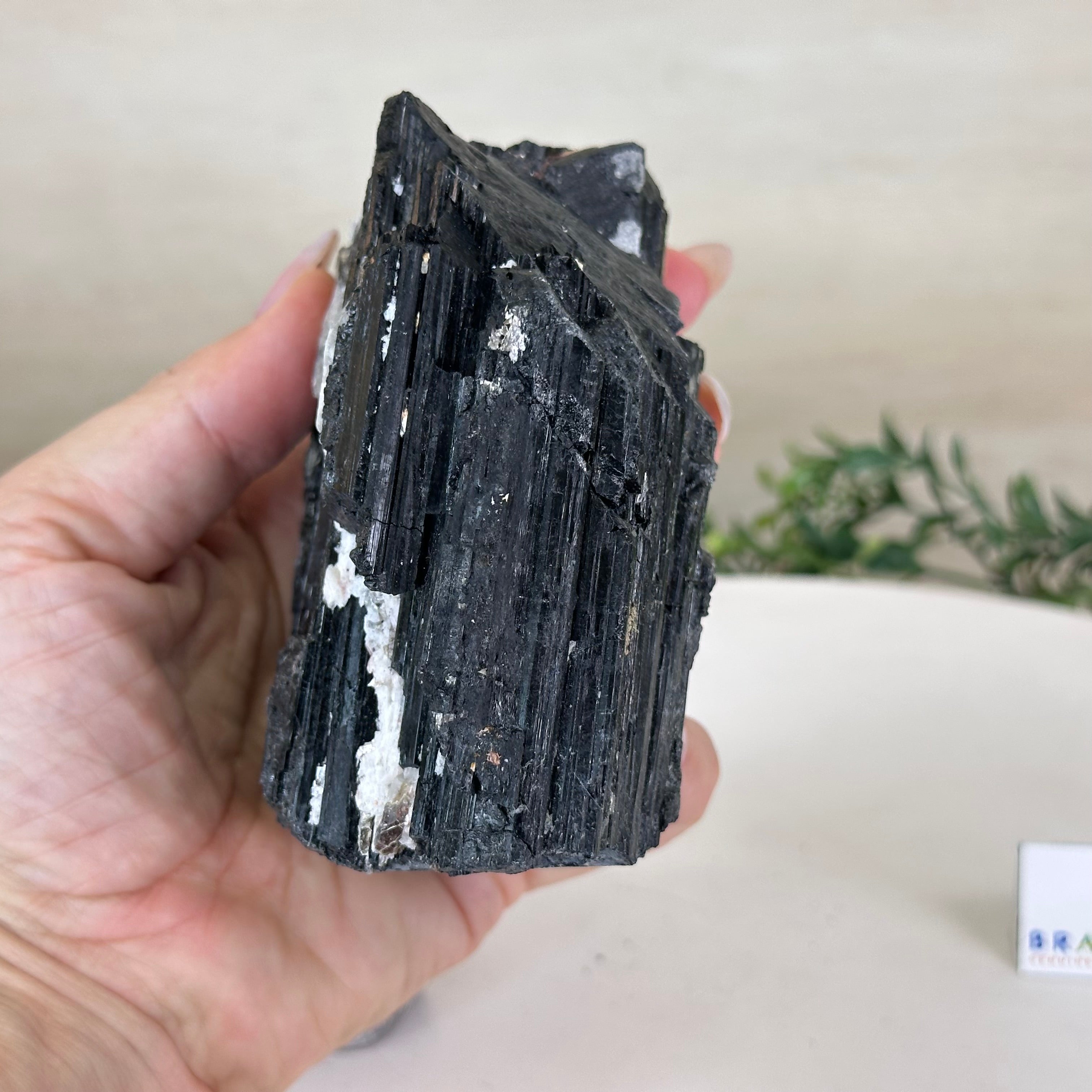 Sourced directly from Brazil, this natural, unpolished stone boasts deep jet-black tones and a rugged texture—celebrated for its protective and purifying qualities. It fuses earthy energy with modern sophistication, making it an ideal statement piece for your home, office, or meditation corner.