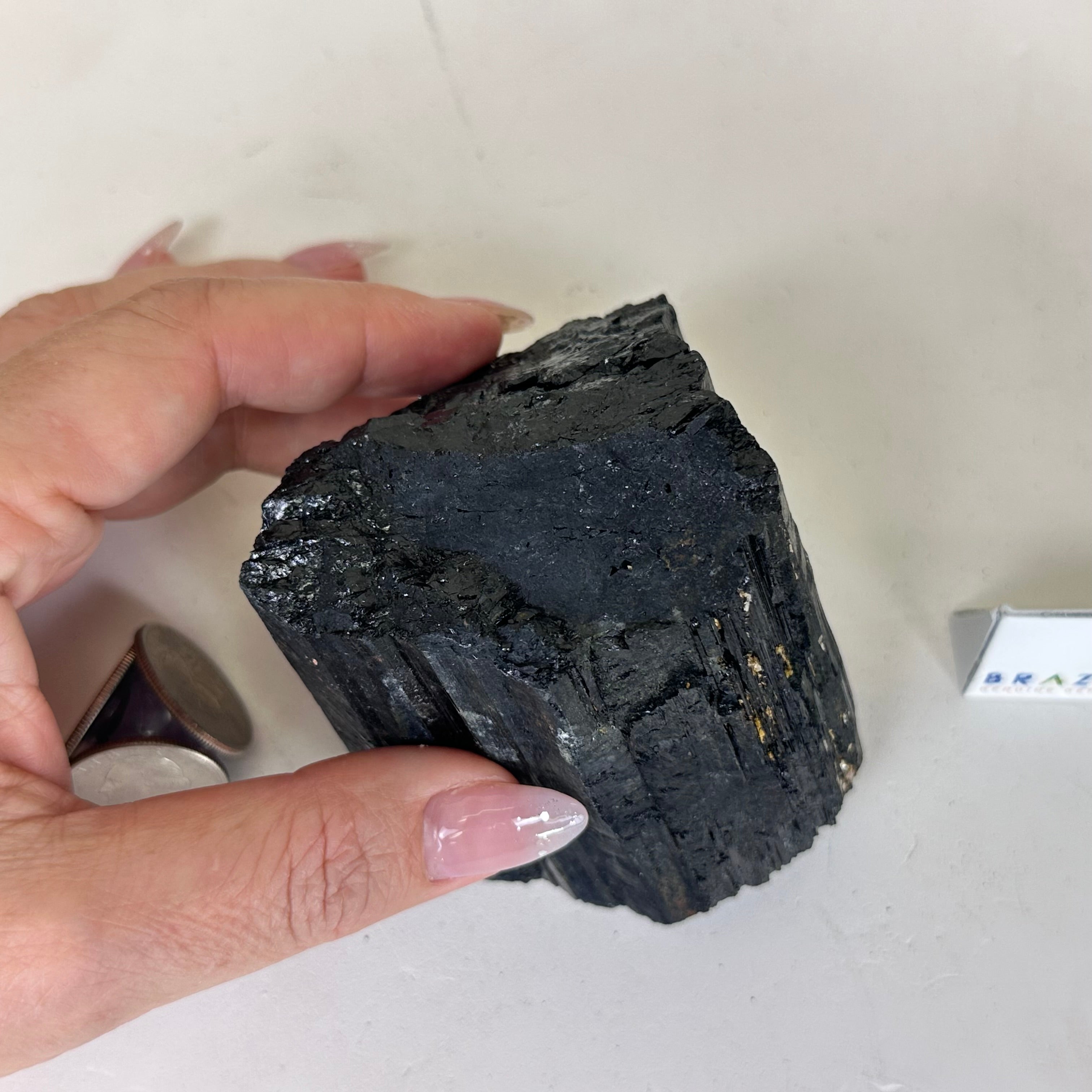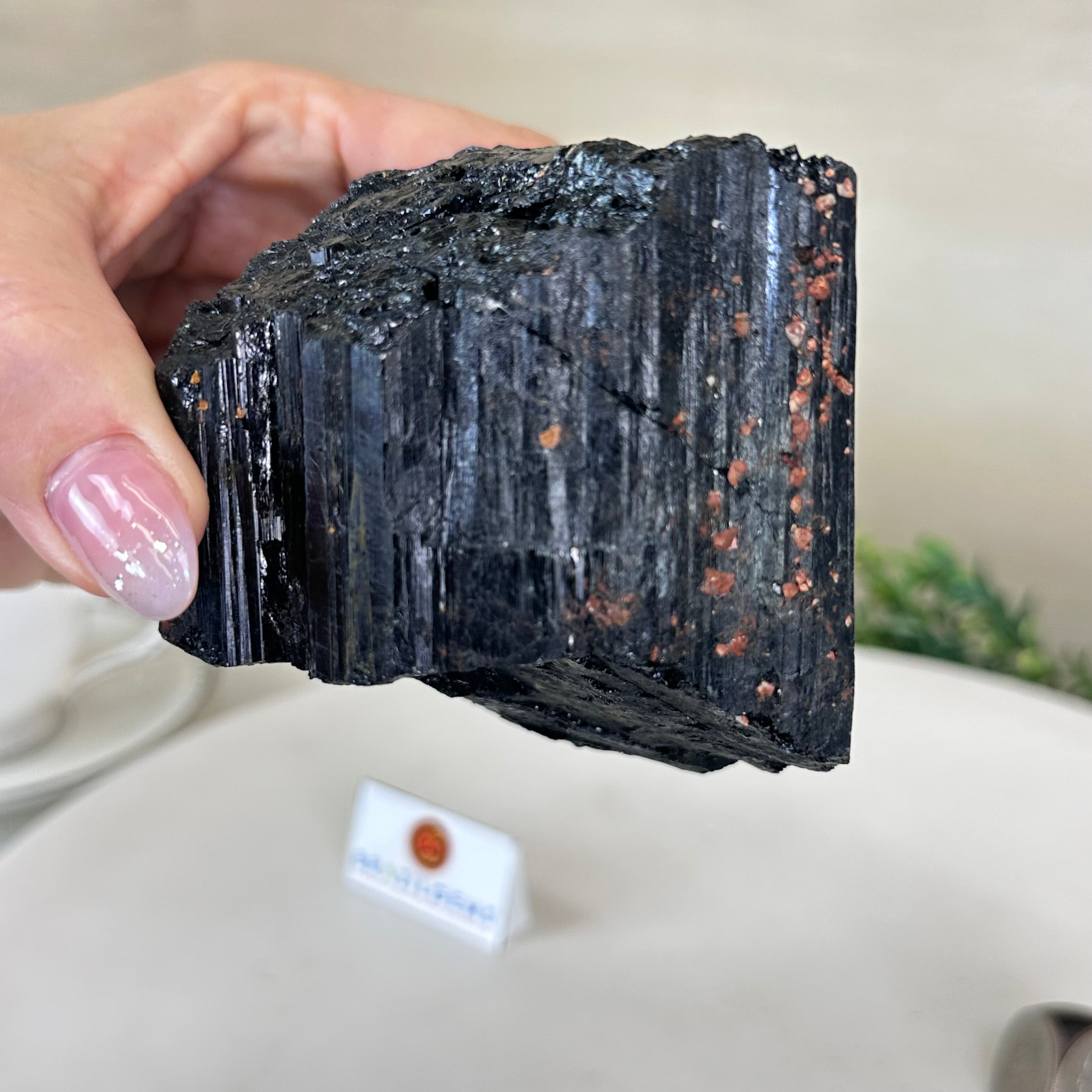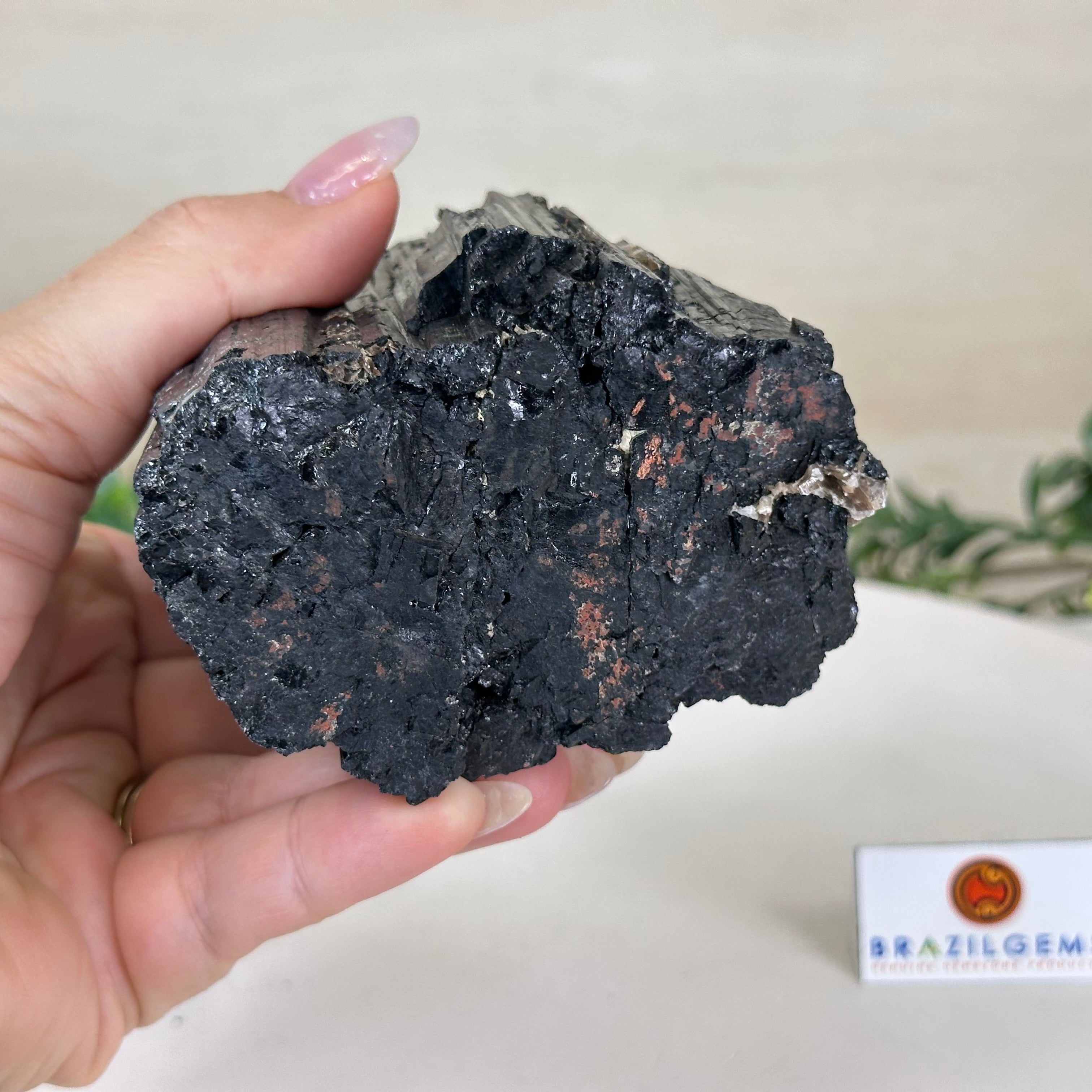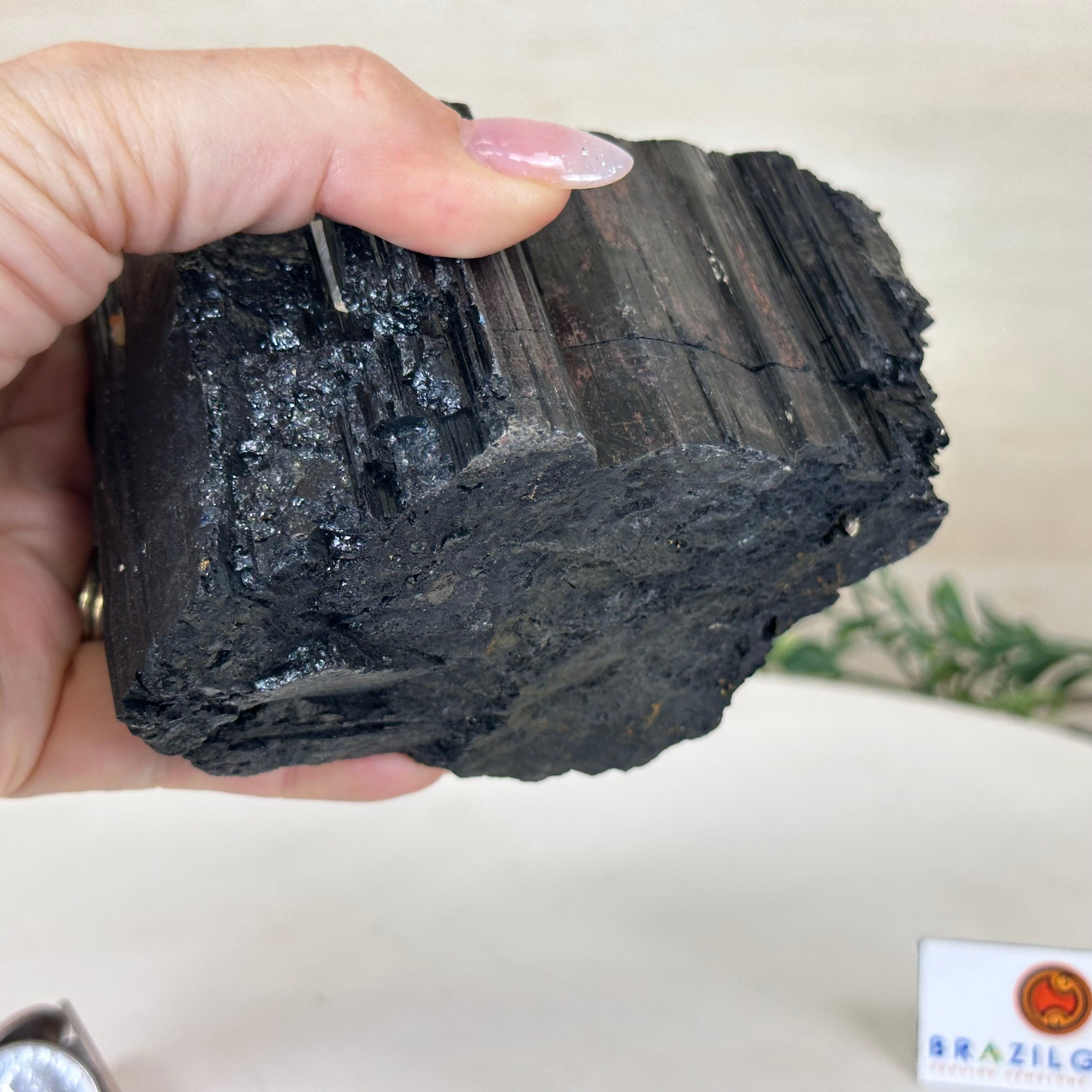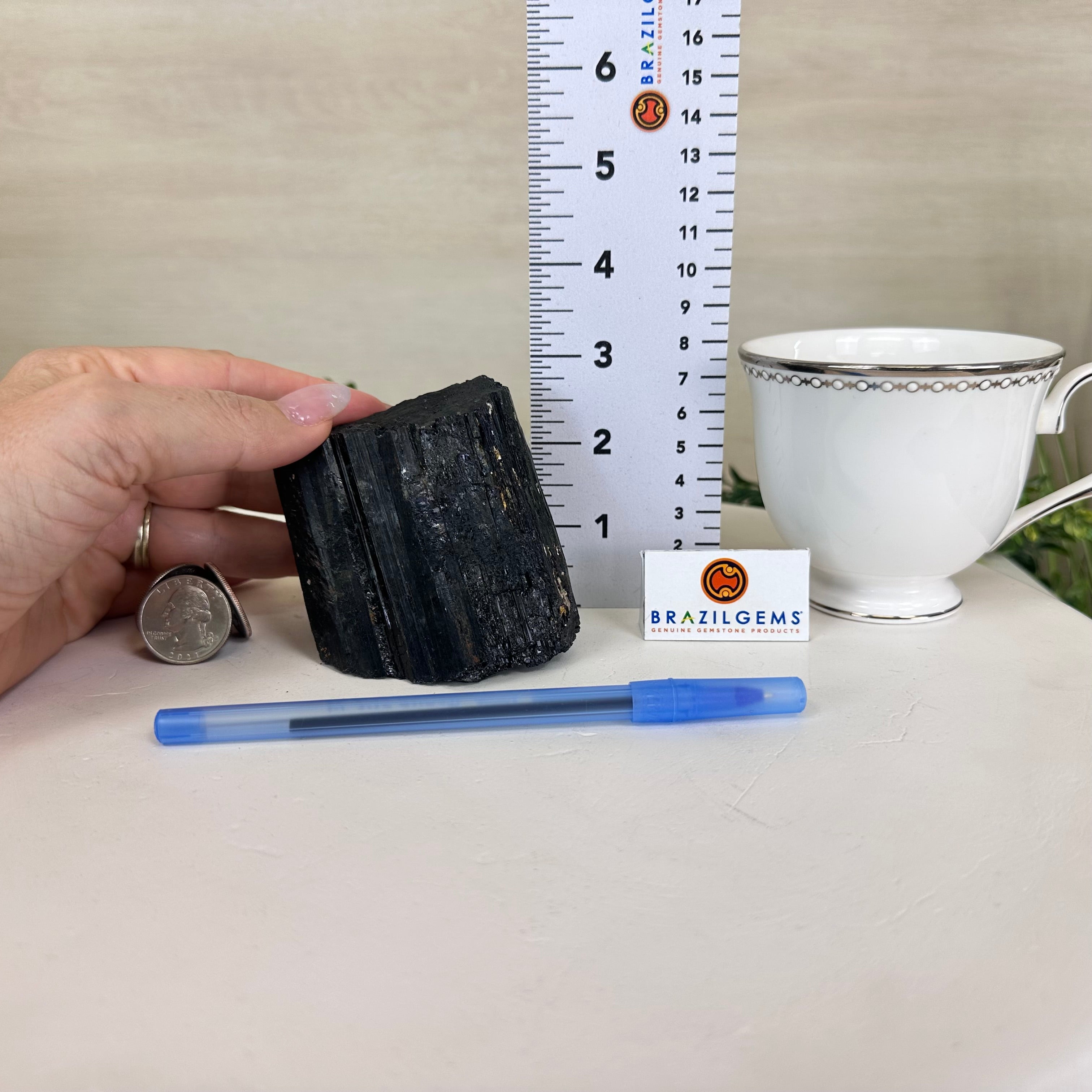 Sourced directly from Brazil, this natural, unpolished stone boasts deep jet-black tones and a rugged texture—celebrated for its protective and purifying qualities. It fuses earthy energy with modern sophistication, making it an ideal statement piece for your home, office, or meditation corner.