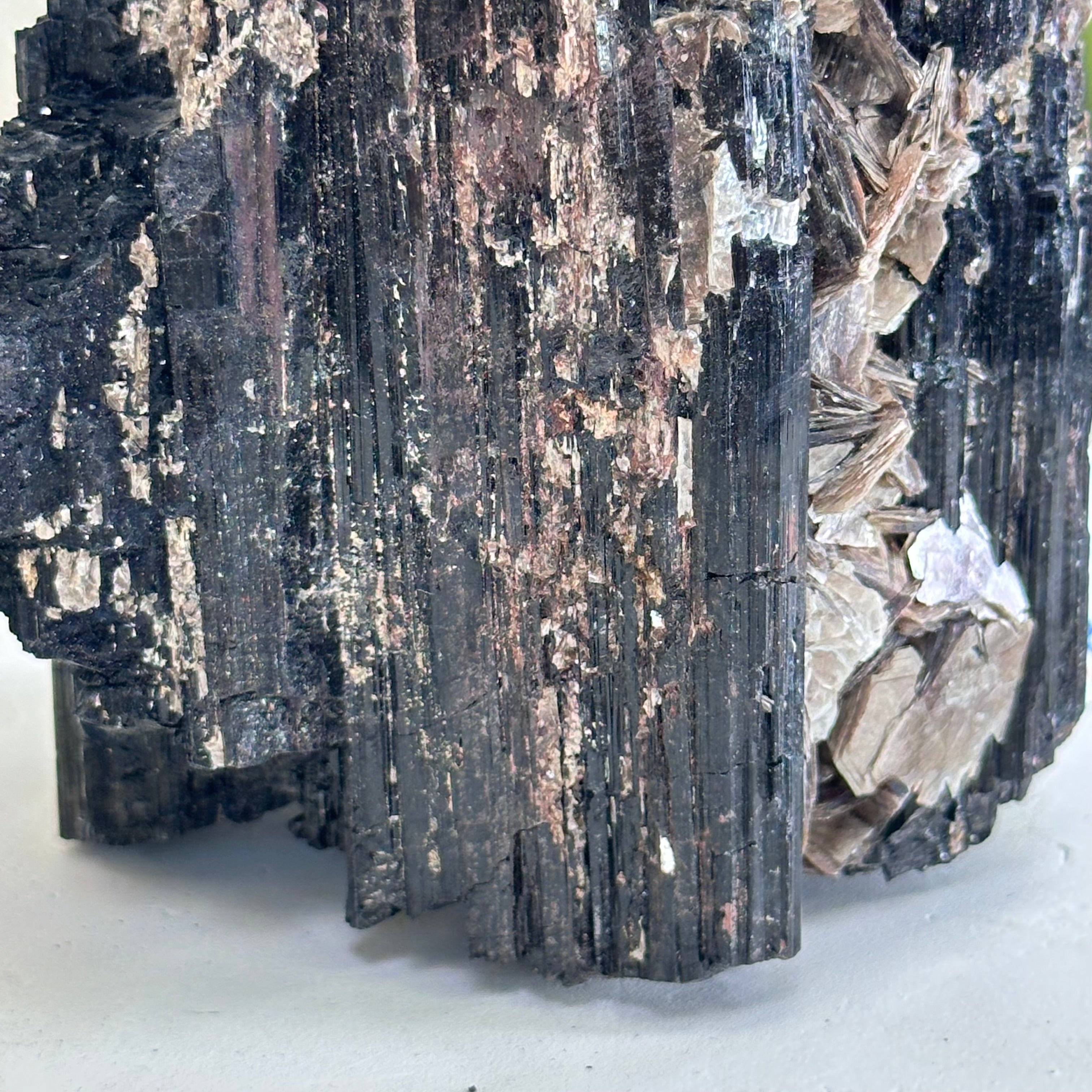 Transform your space with the untamed beauty and grounding power of our Rough Black Tourmaline Clusters, either mounted on a sleek metal stand or as a stand alone piece.