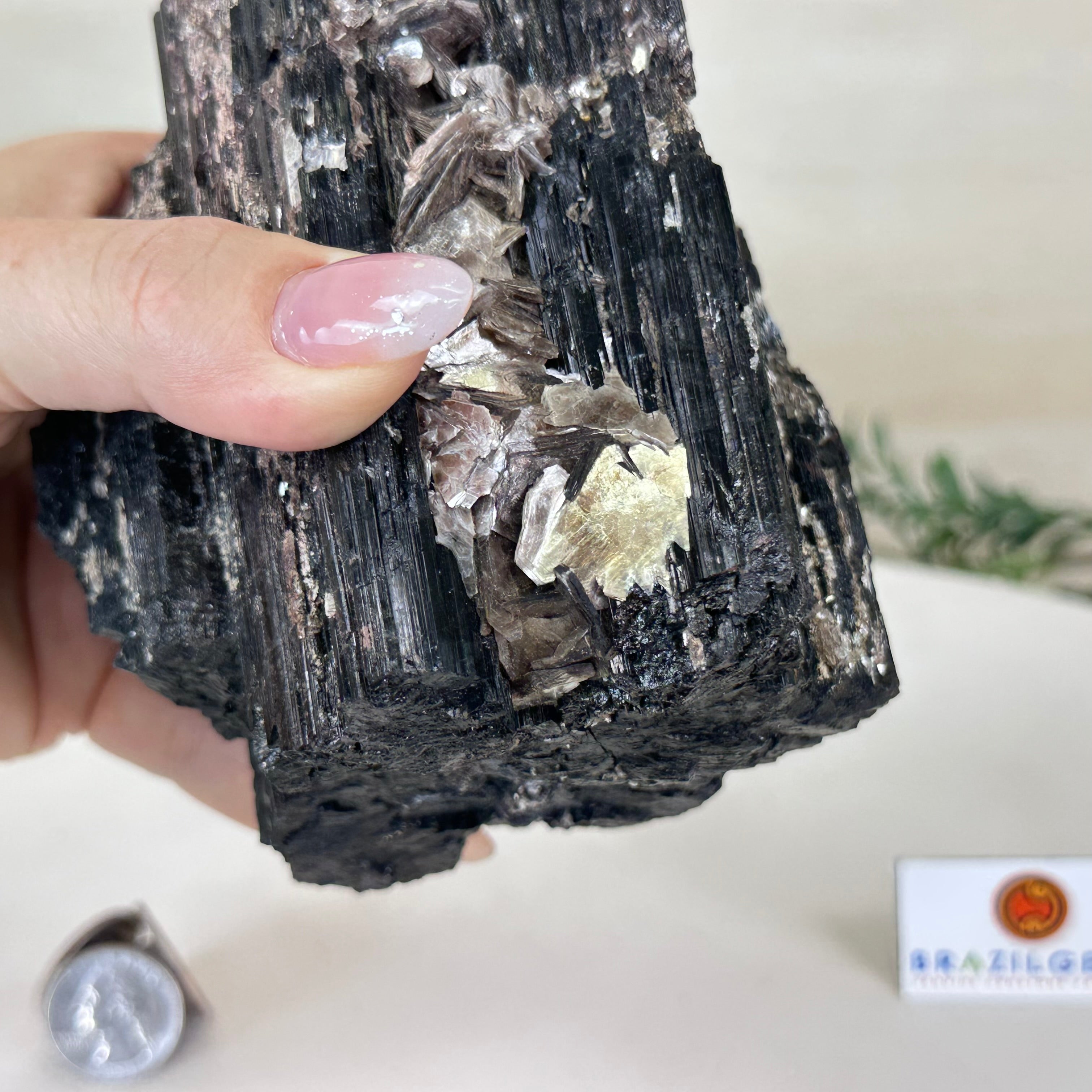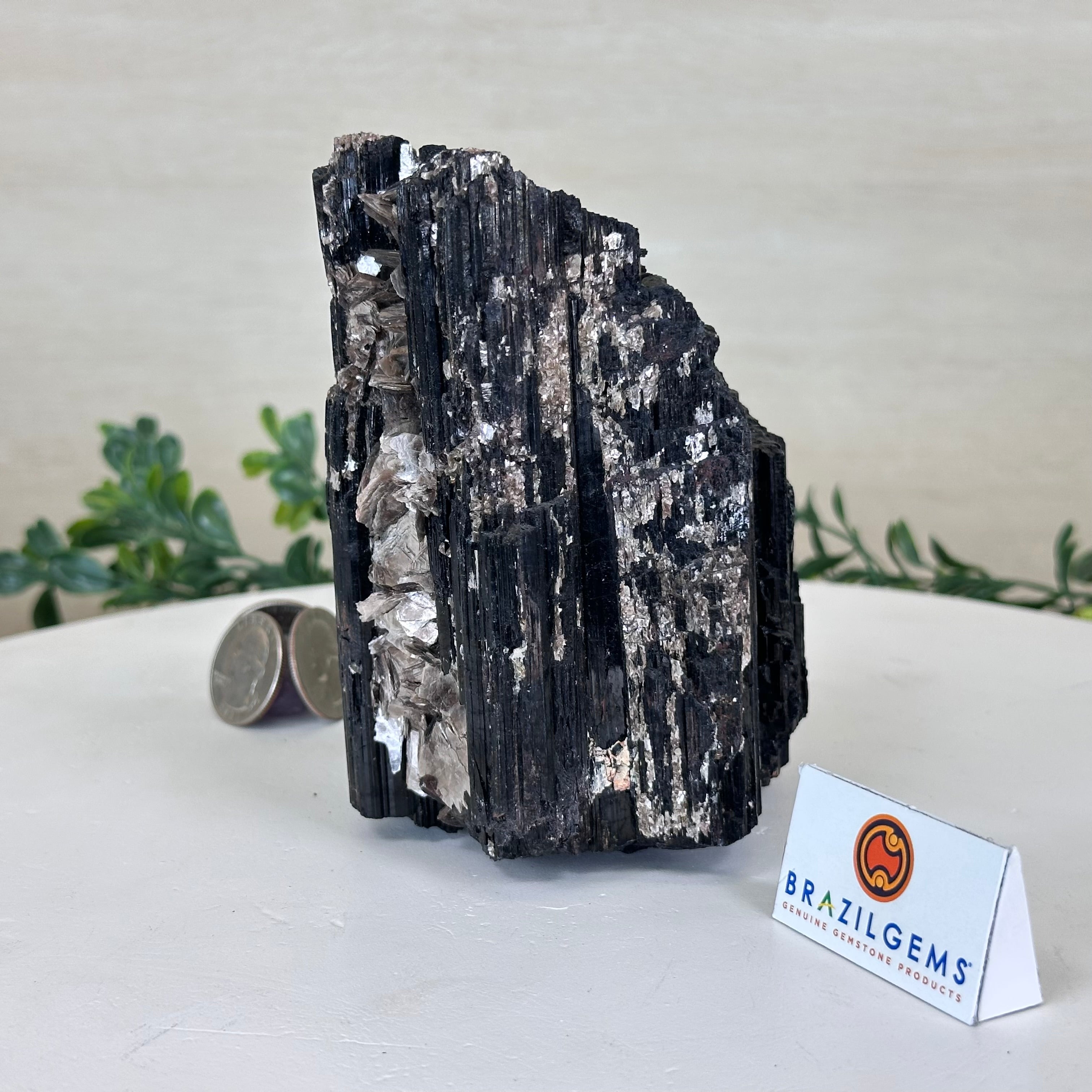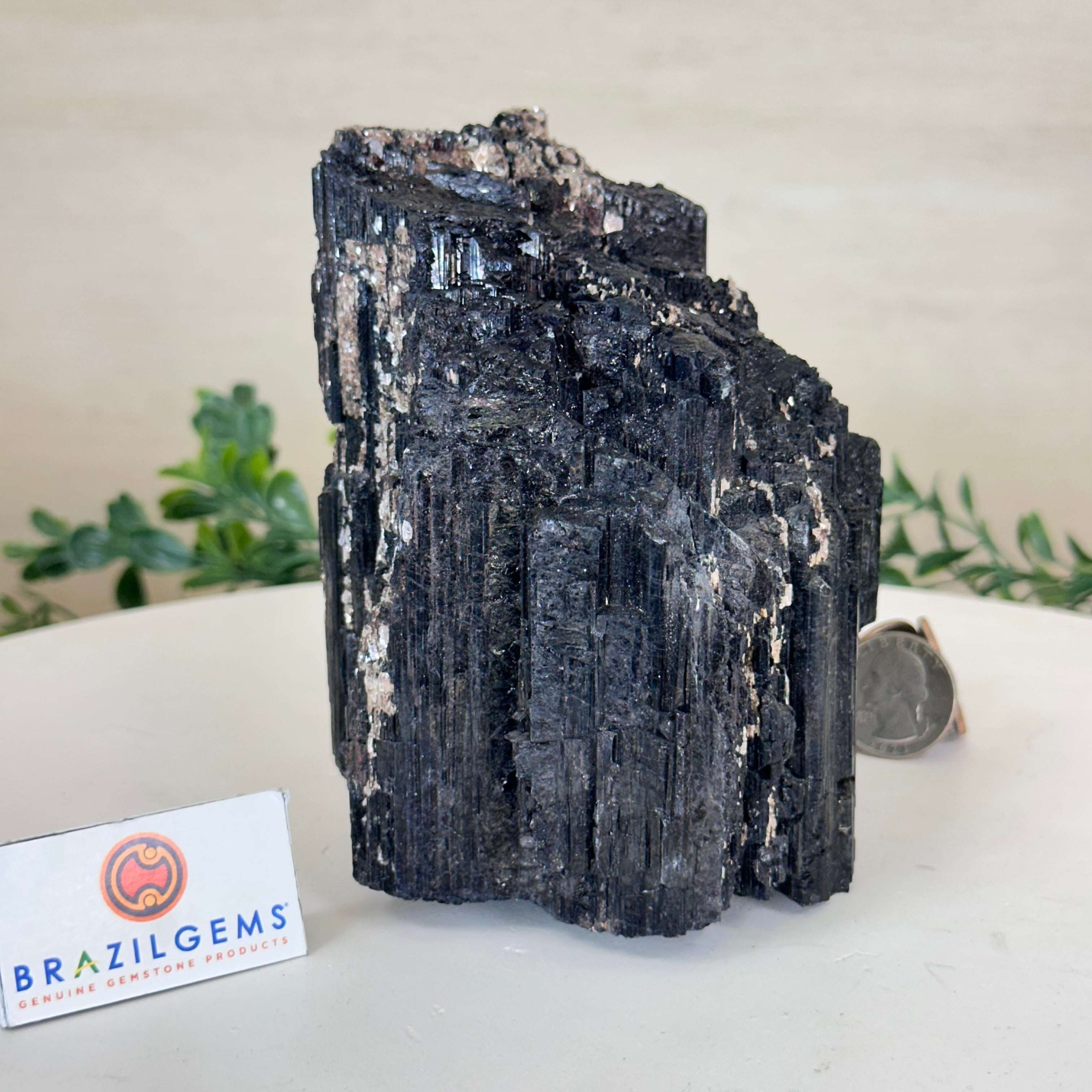 Elevate your space with the raw beauty and grounding energy of this Rough Black Tourmaline Cluster by Brazil Gems®. A unique creation of nature, showcasing the deep, jet-black hues and rugged texture of Black Tourmaline—a stone renowned for its protective and cleansing properties. This piece will be a perfect addition to your home, office, or meditation space.