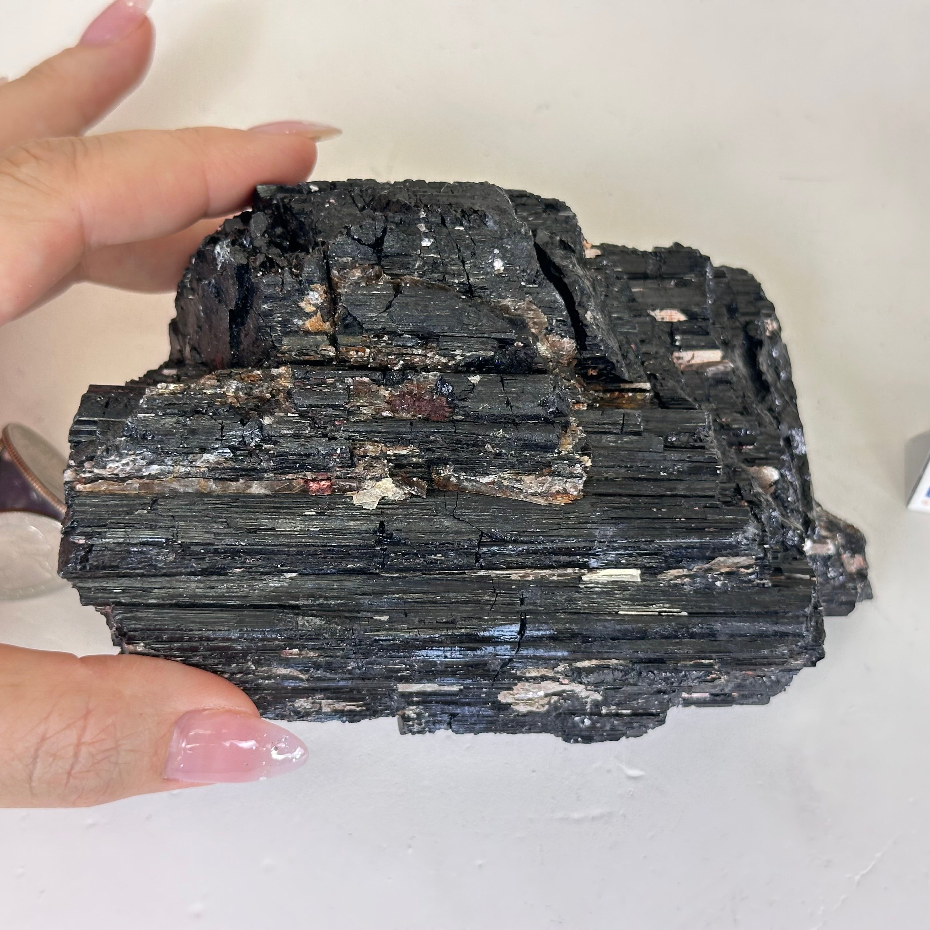 Black Tourmaline Cluster, 3.2 lbs and 3.3" Tall #3302BT-040
