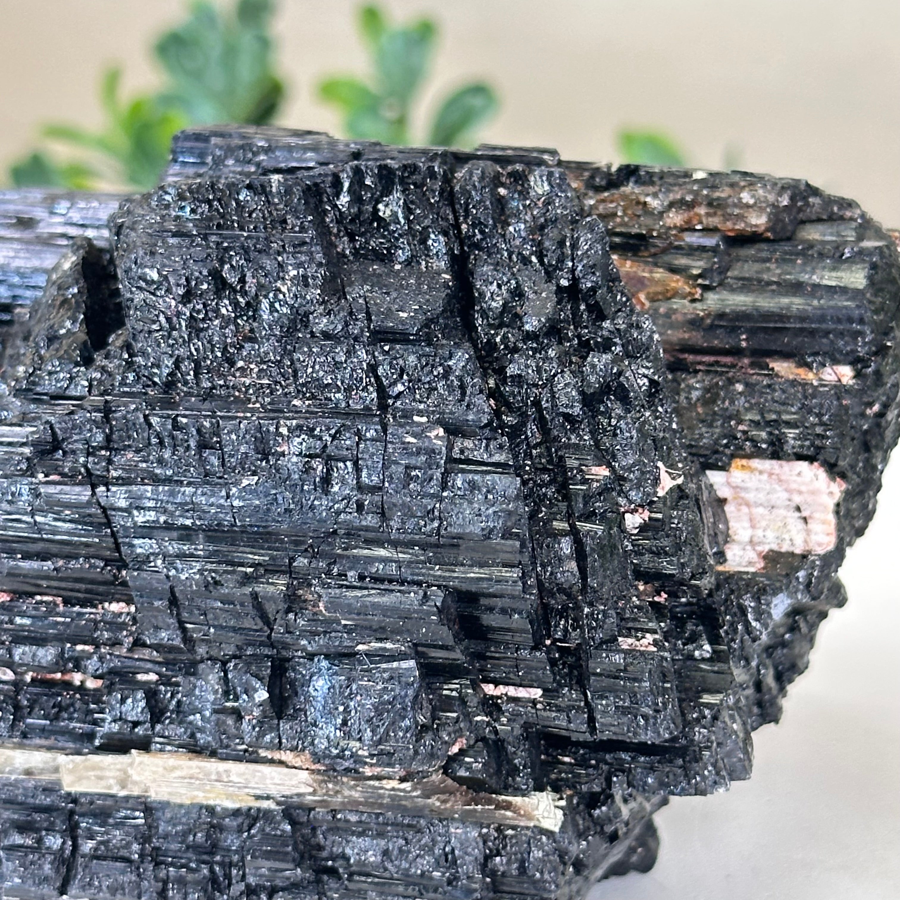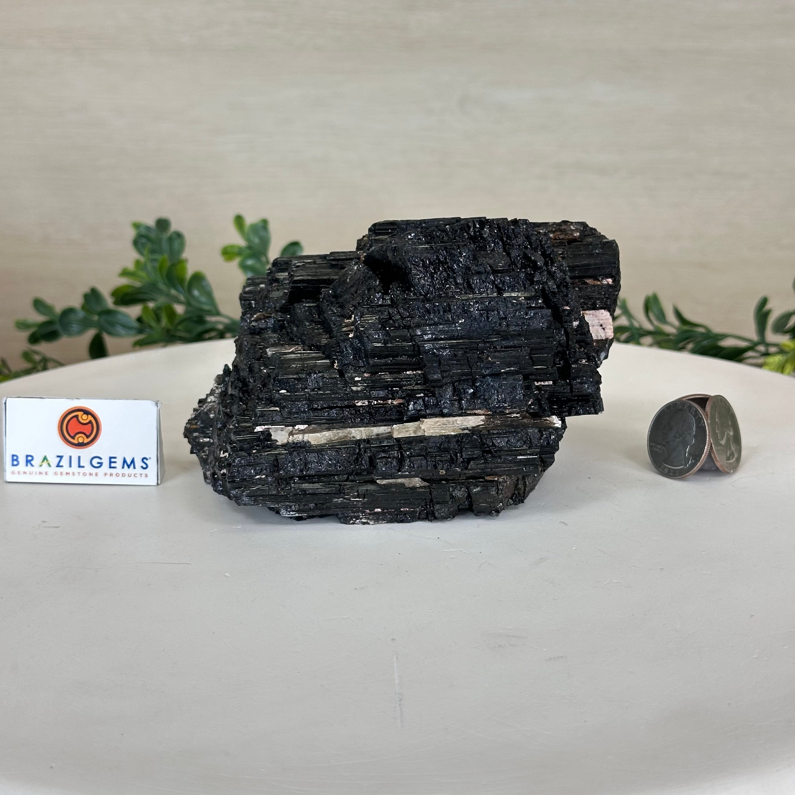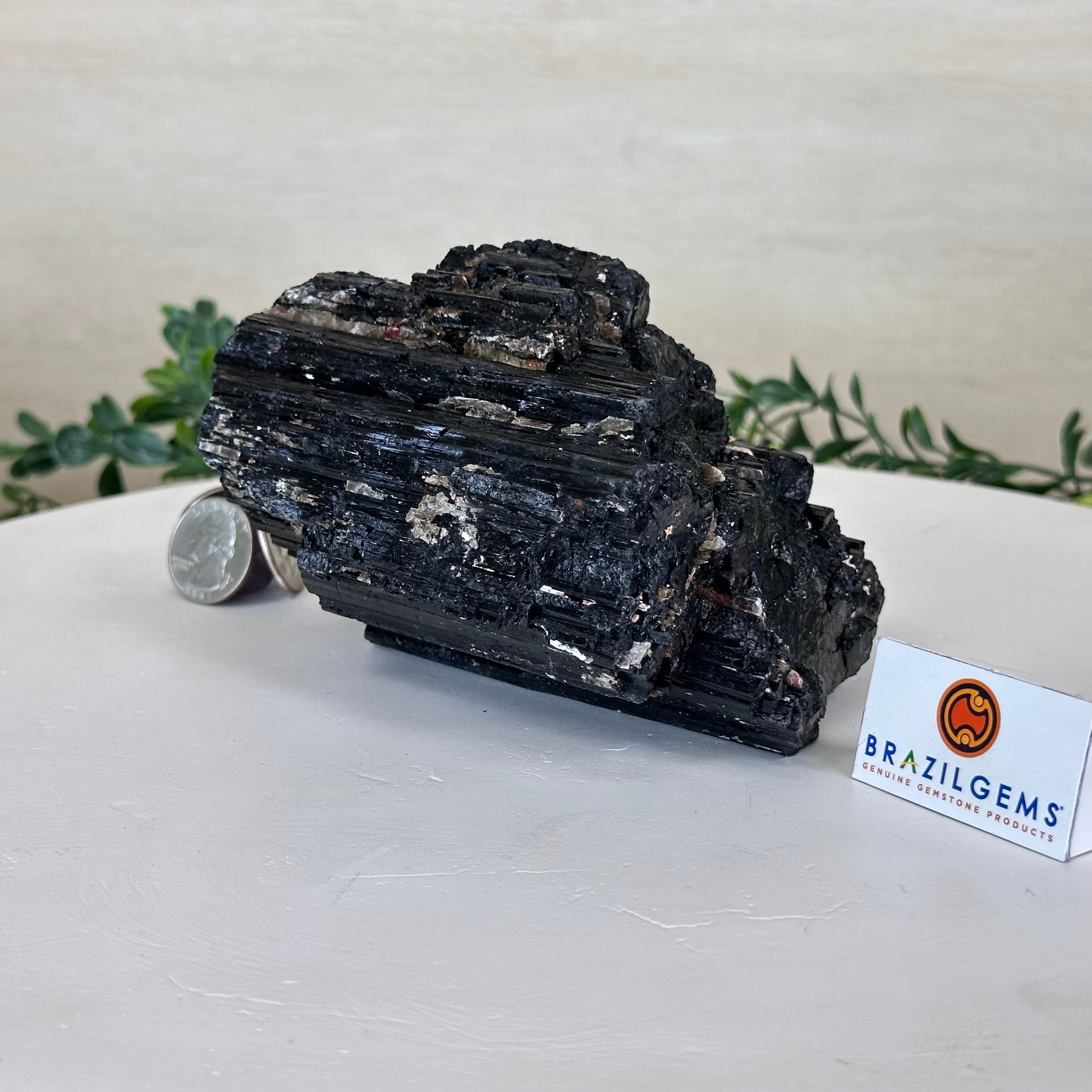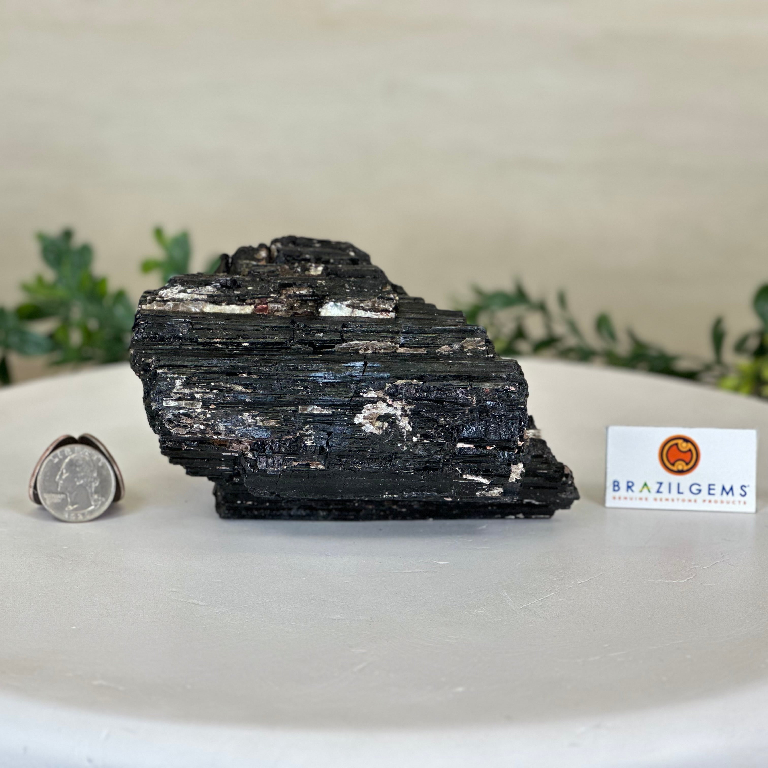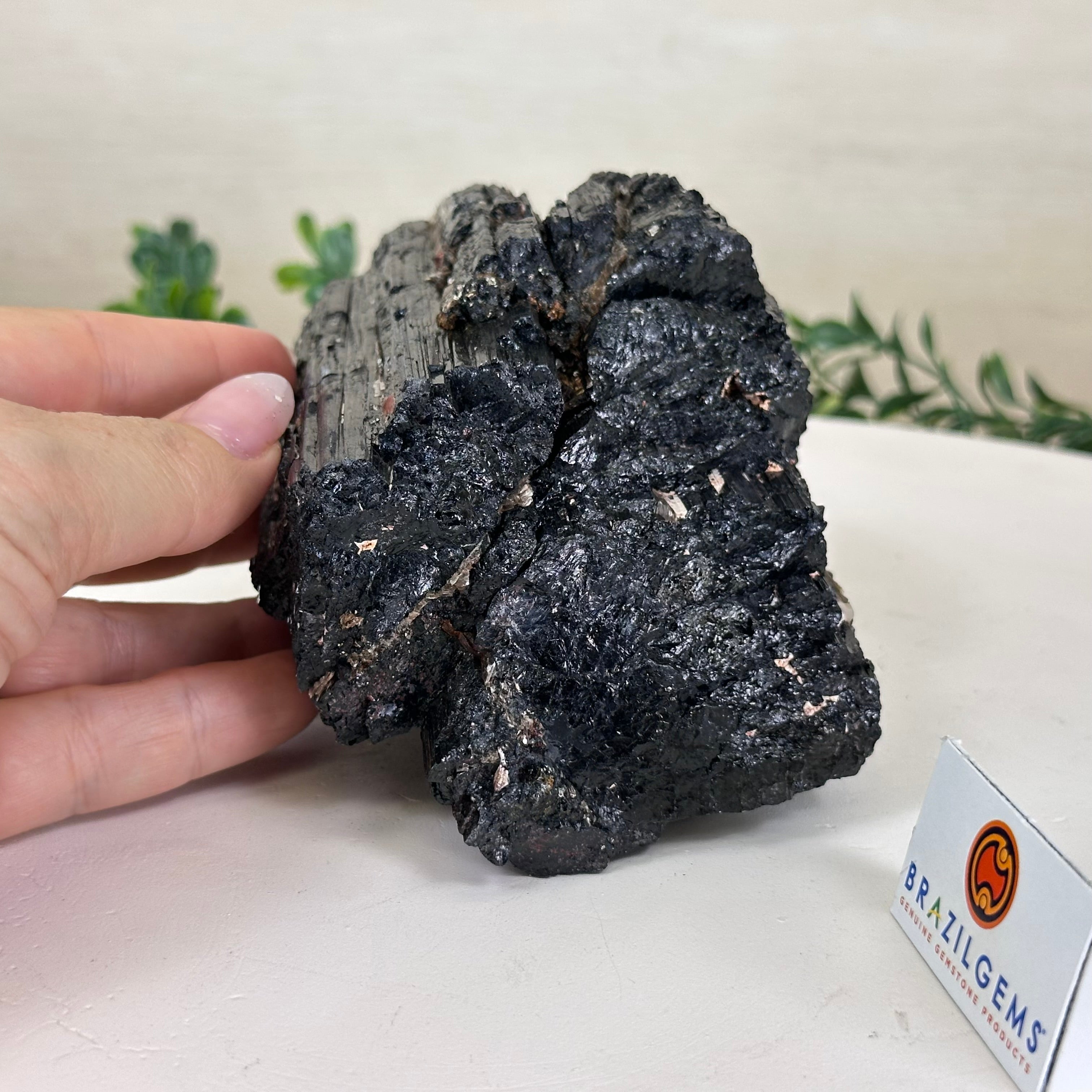 Elevate your space with the raw beauty and grounding energy of this Rough Black Tourmaline Cluster by Brazil Gems®. A unique creation of nature, showcasing the deep, jet-black hues and rugged texture of Black Tourmaline—a stone renowned for its protective and cleansing properties. This piece will be a perfect addition to your home, office, or meditation space.