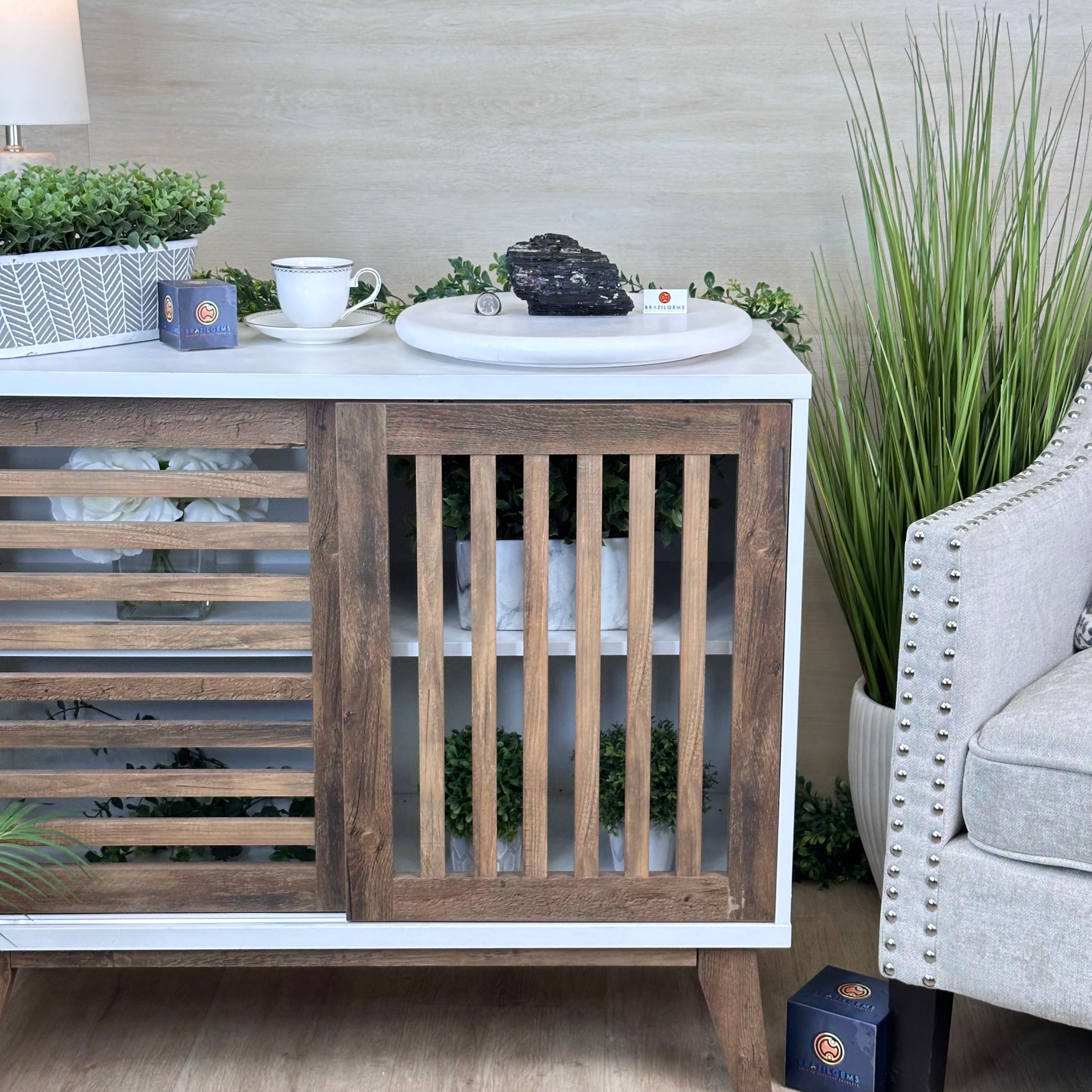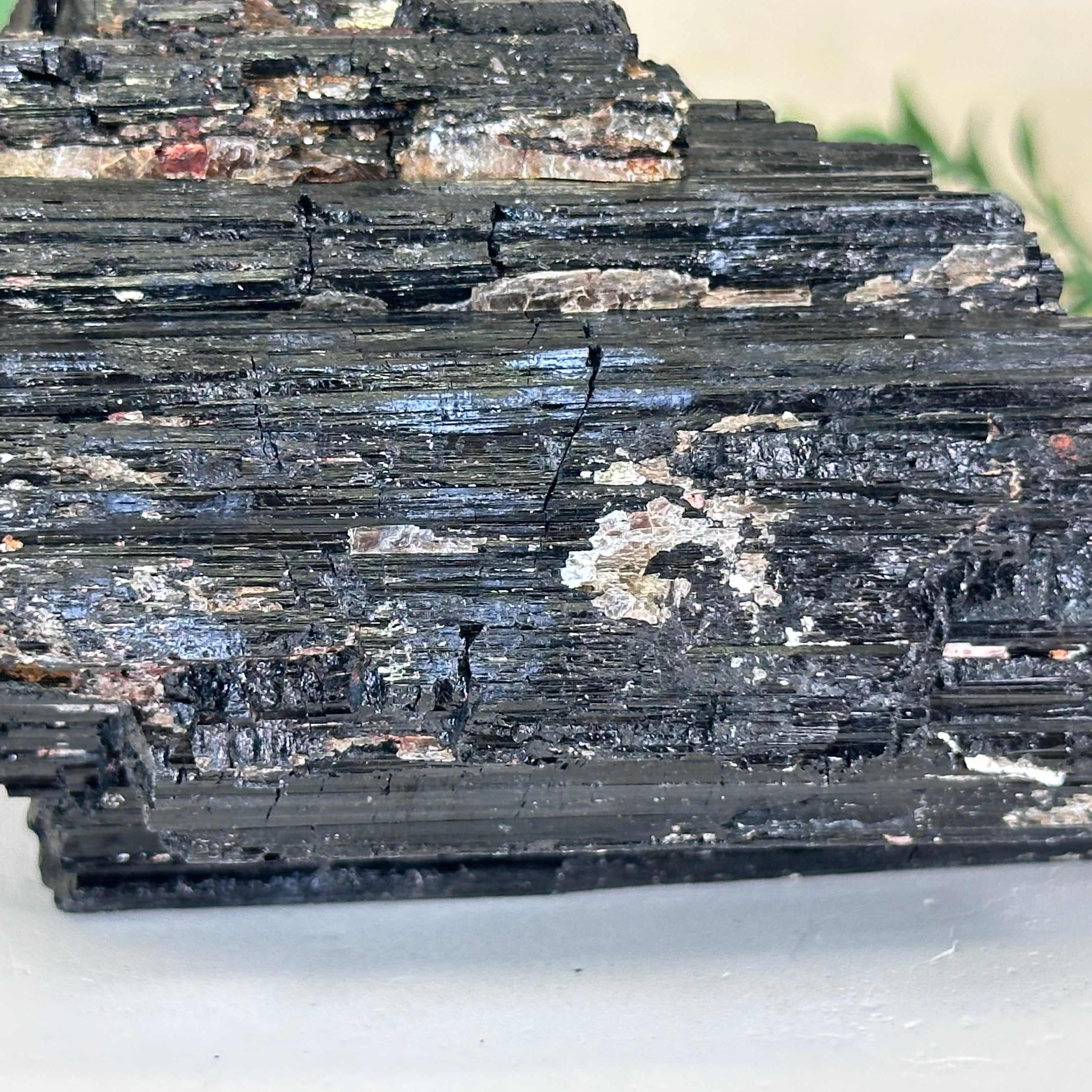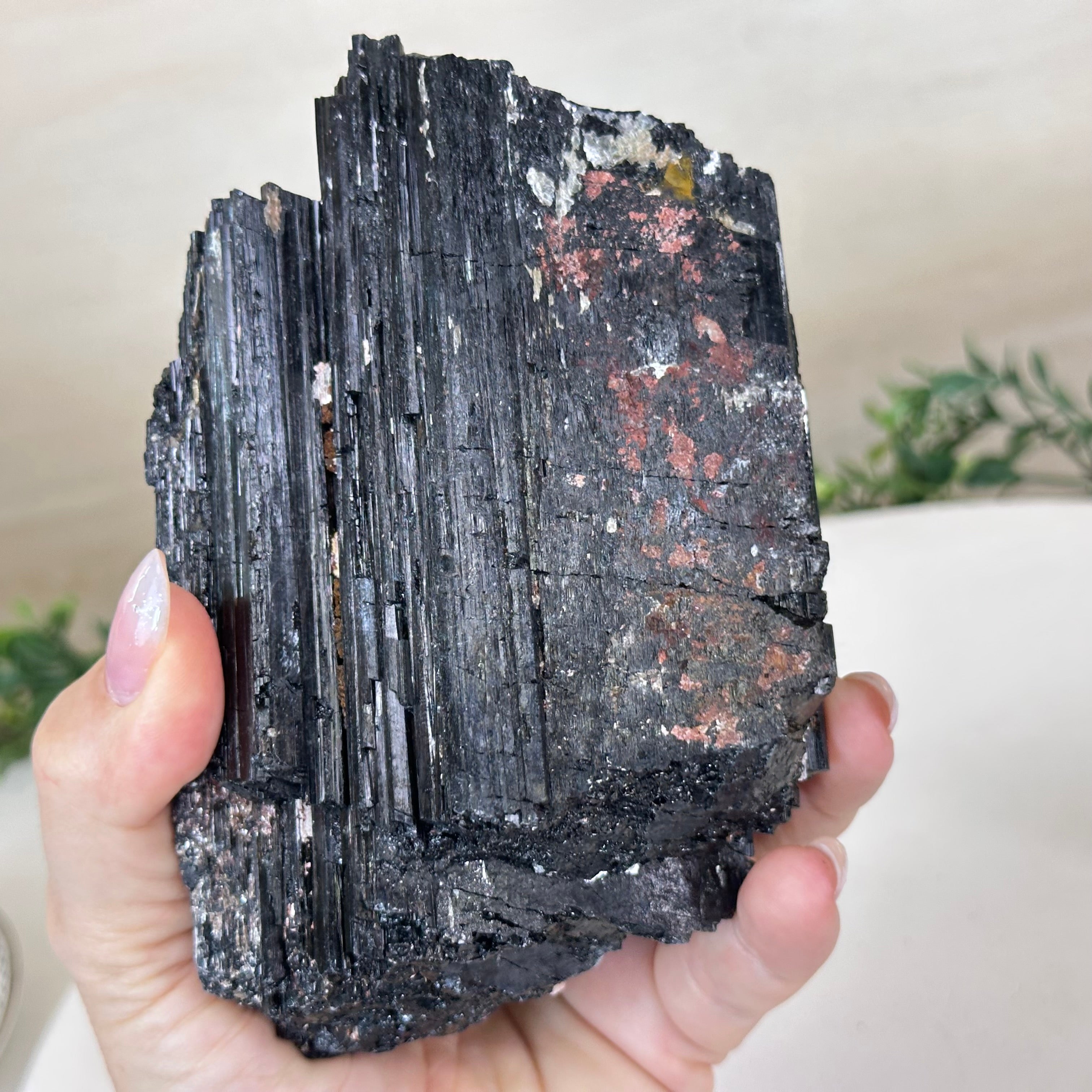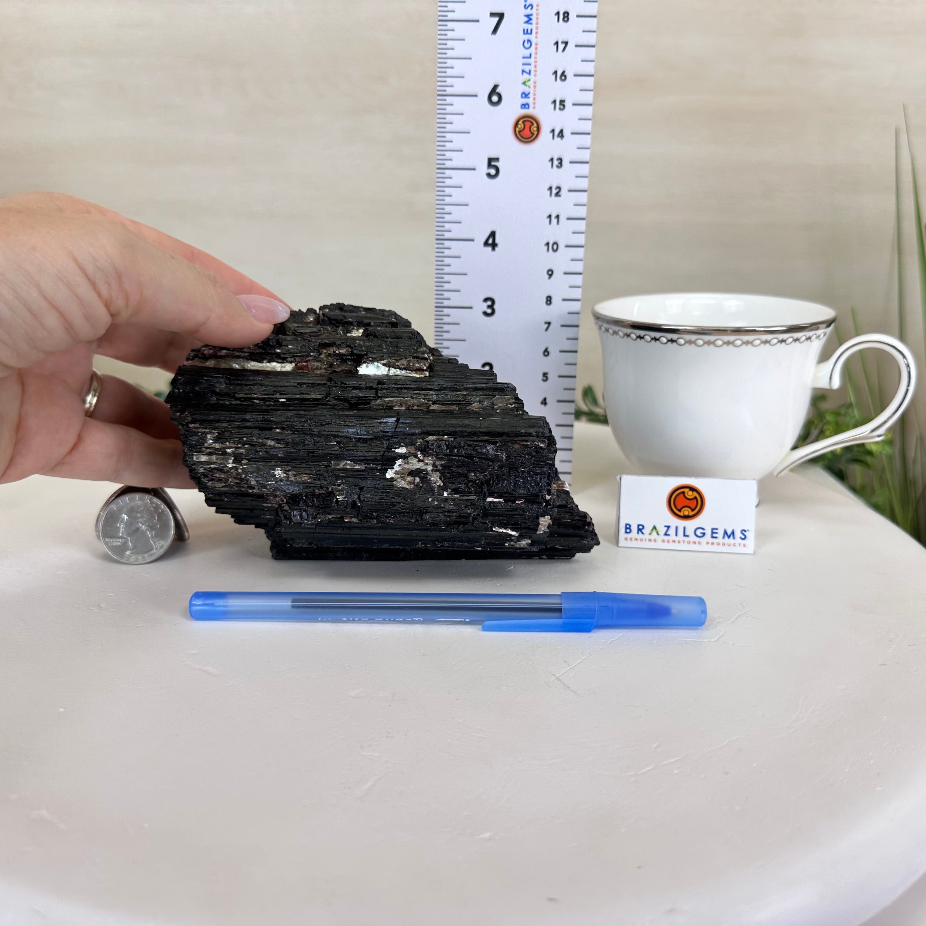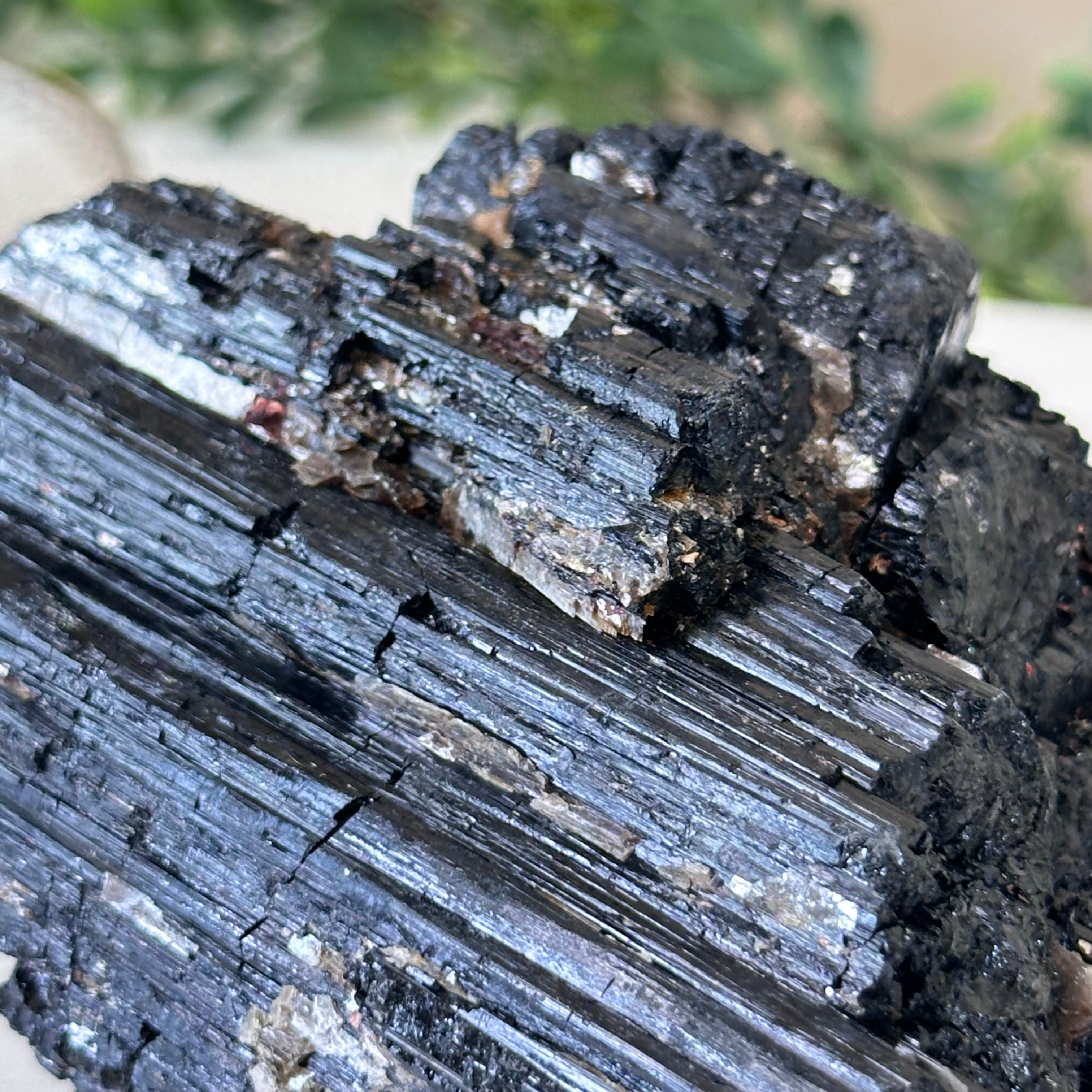 Elevate your space with the raw beauty and grounding energy of this Rough Black Tourmaline Cluster by Brazil Gems®. A unique creation of nature, showcasing the deep, jet-black hues and rugged texture of Black Tourmaline—a stone renowned for its protective and cleansing properties. This piece will be a perfect addition to your home, office, or meditation space.