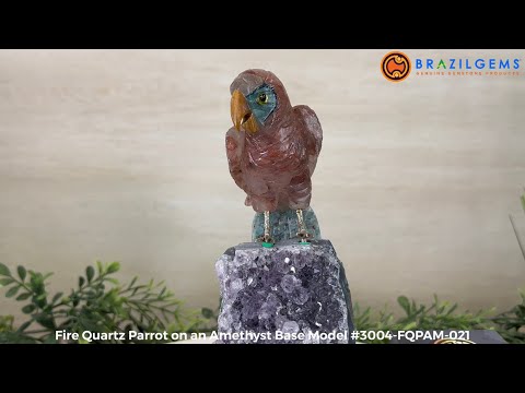 Each intricate detail of the bird is meticulously carved by skilled Brazilian artisans who have mastered the technique that combines the beauty of Brazil's gemstones with their colorful native birds into an amazing art piece. Elevate your space with the timeless charm of our Parrot gemstone bird on an Amethyst base.