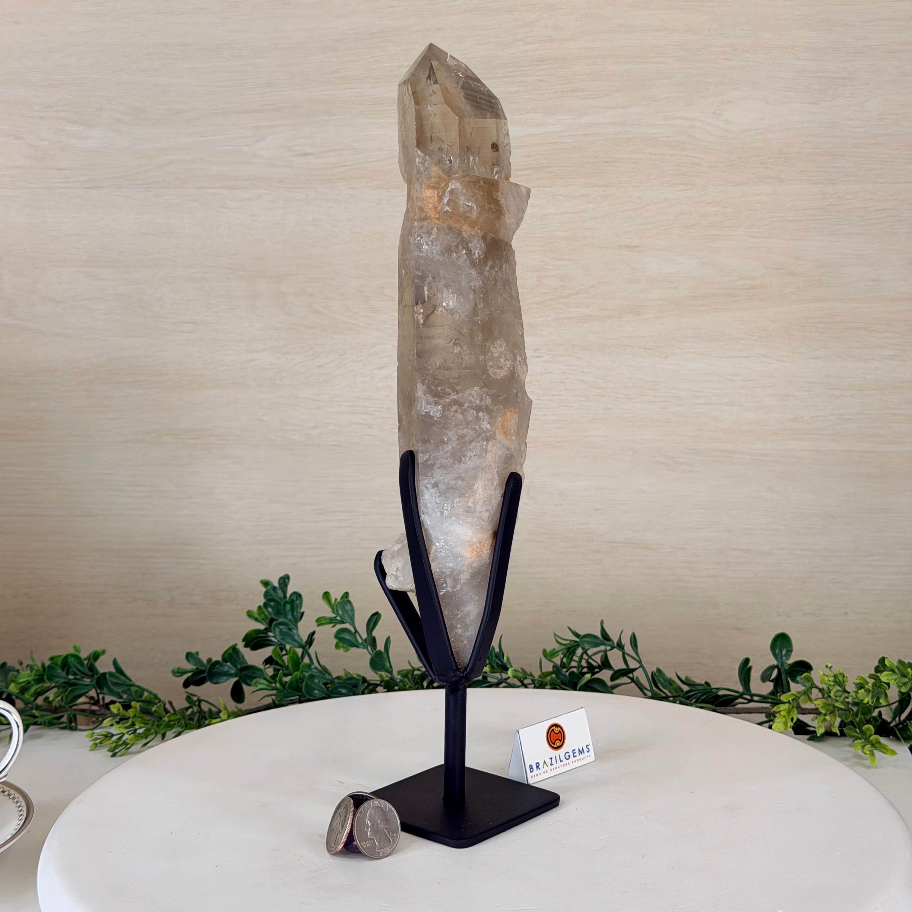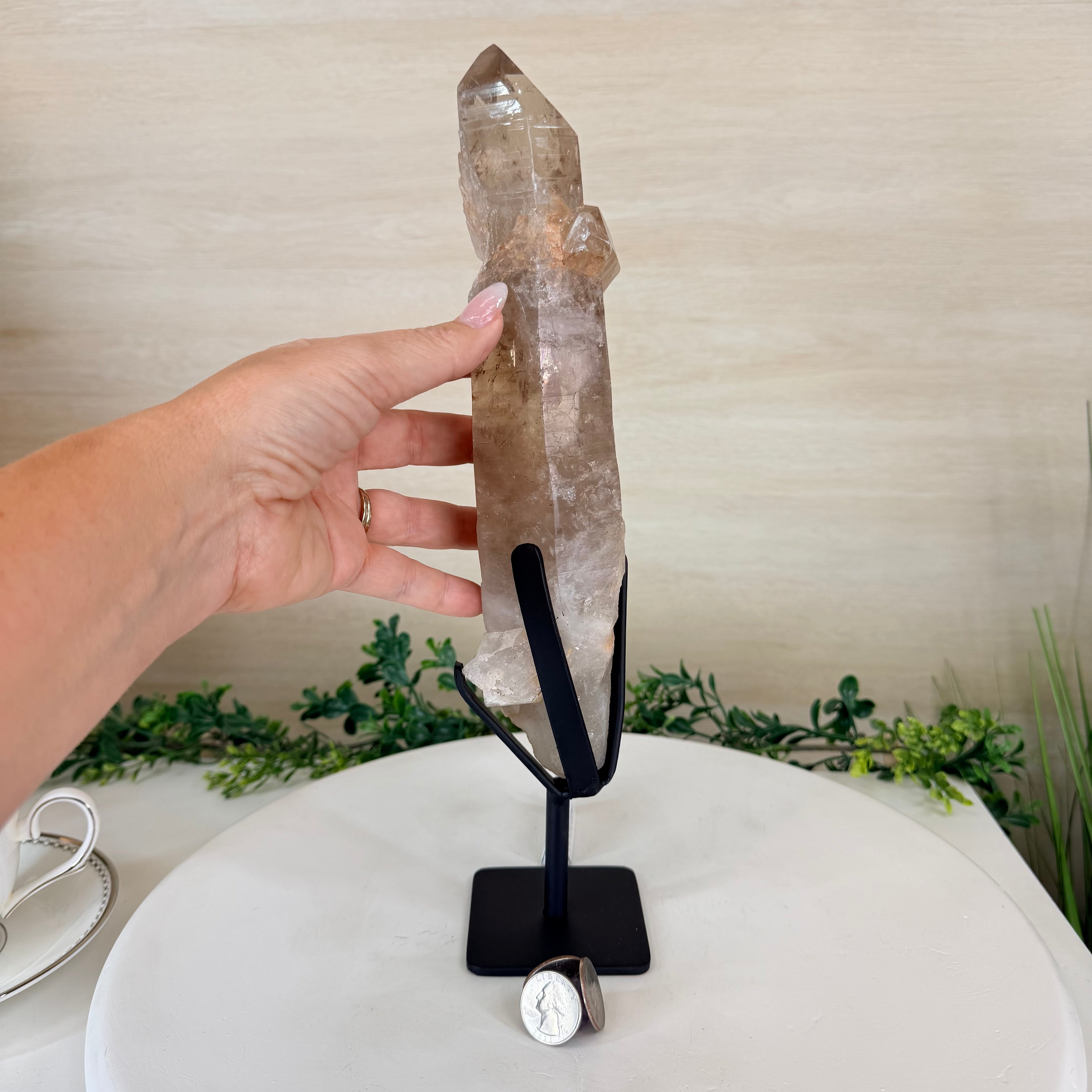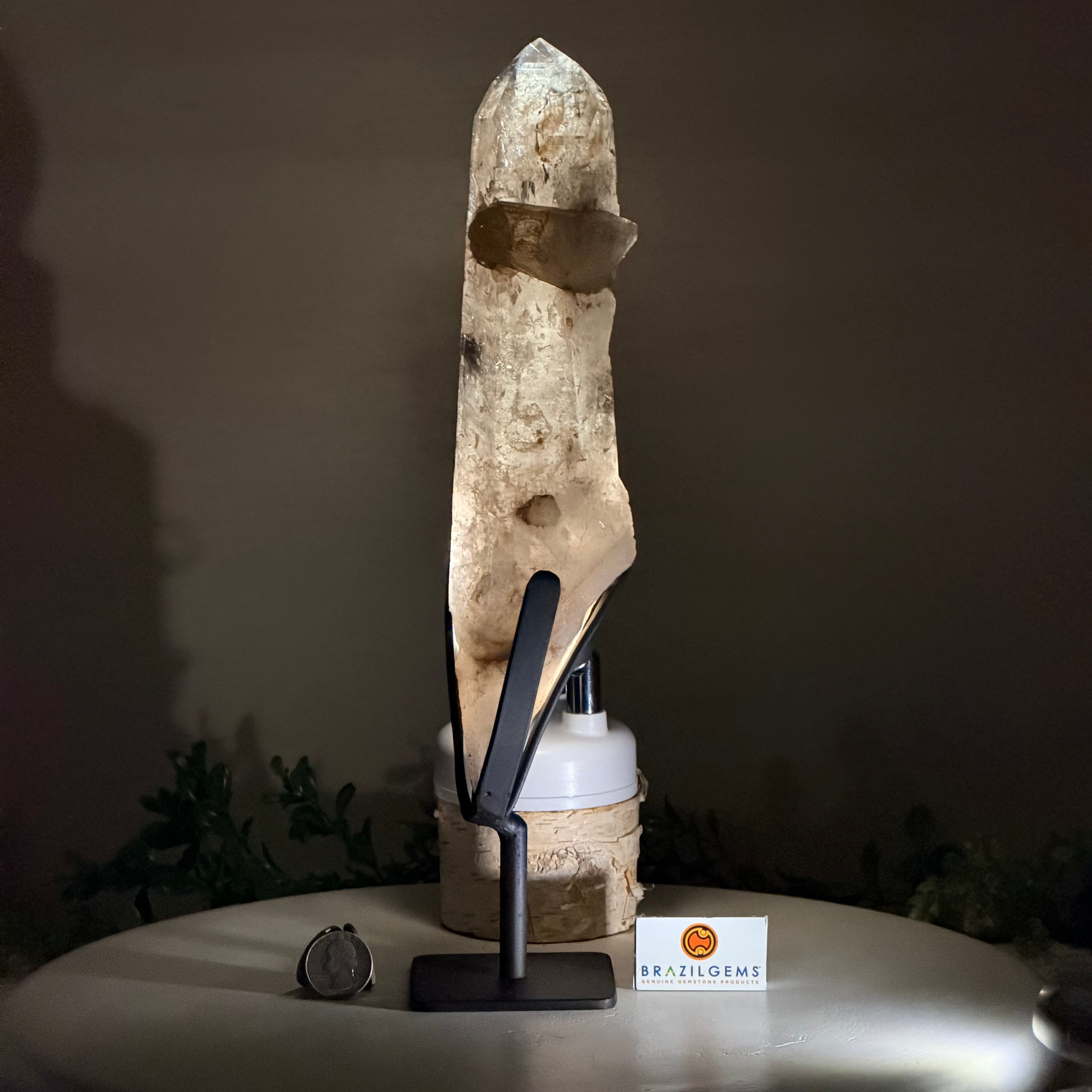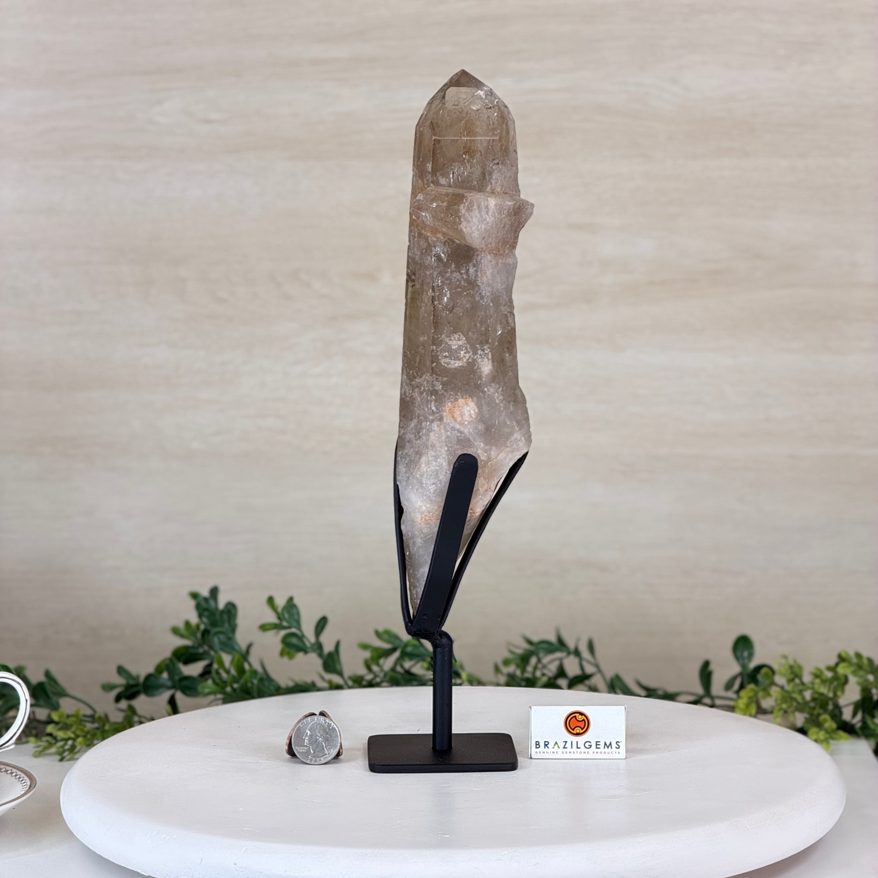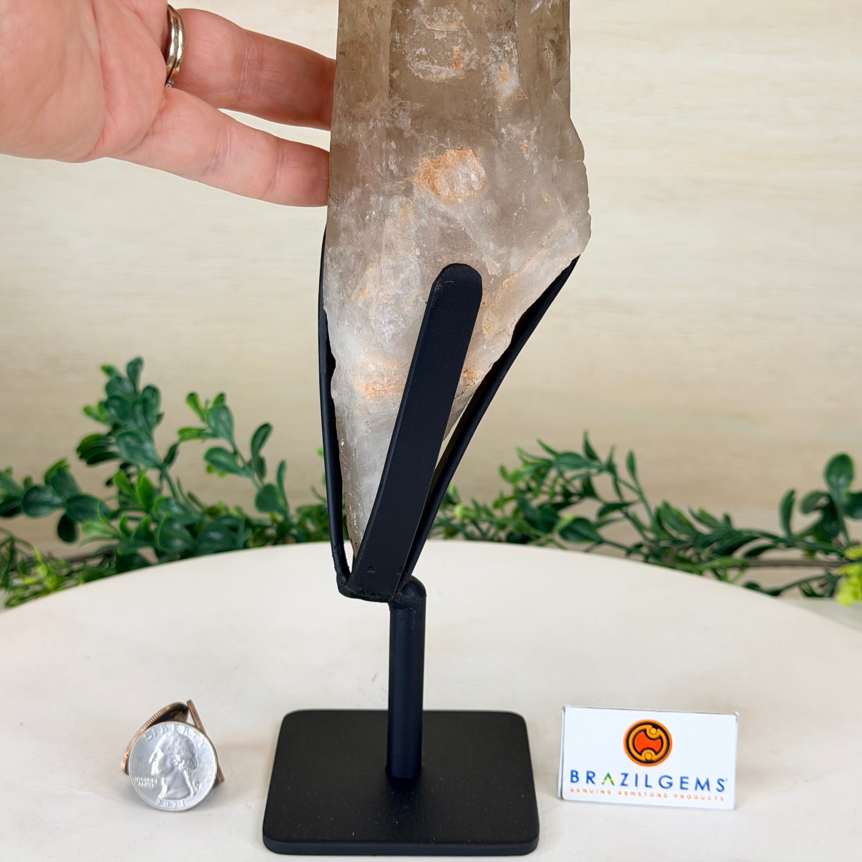 Smoky Quartz Crystal Point on a Metal Stand, 3.1 lbs & 13.2" Tall #3121SQ-002