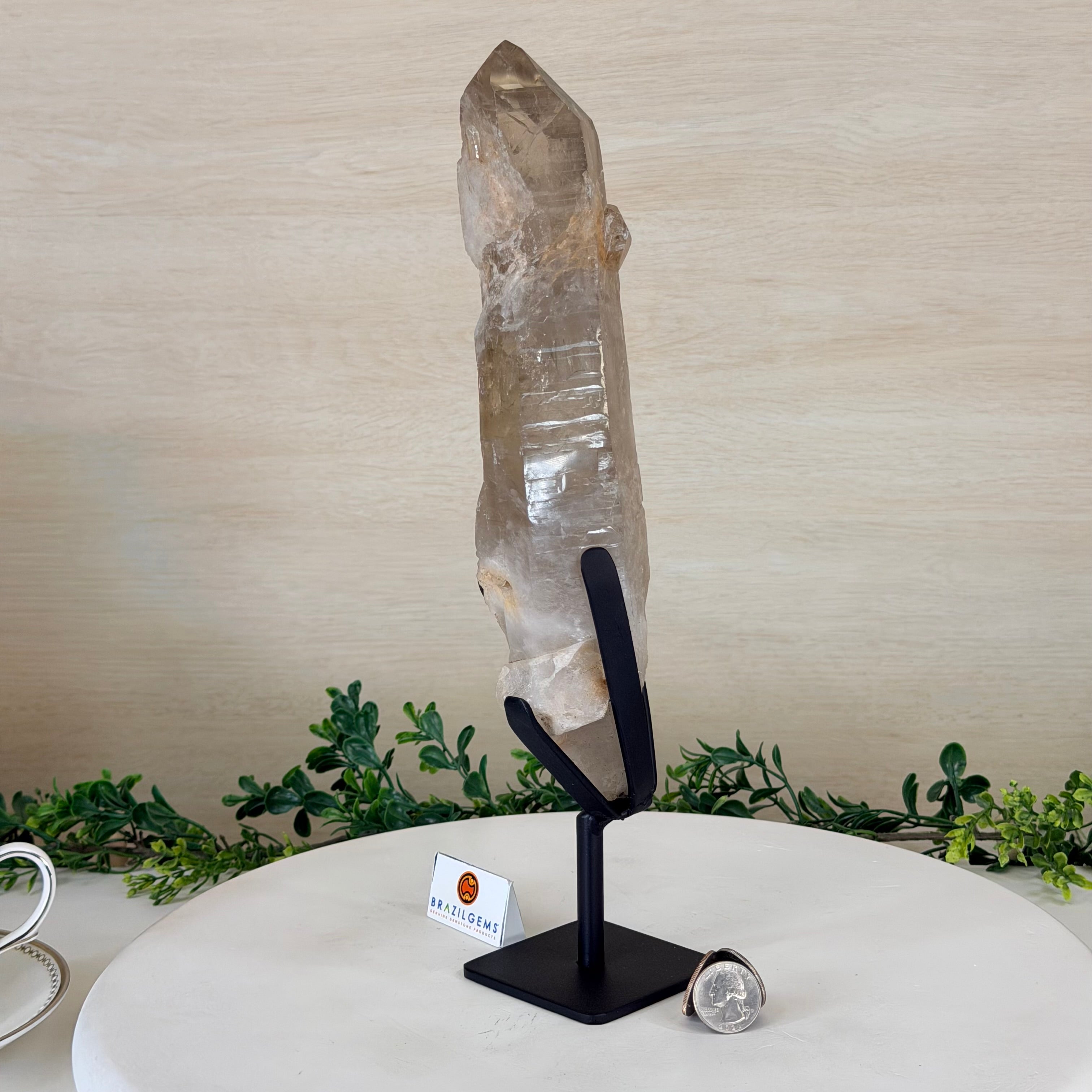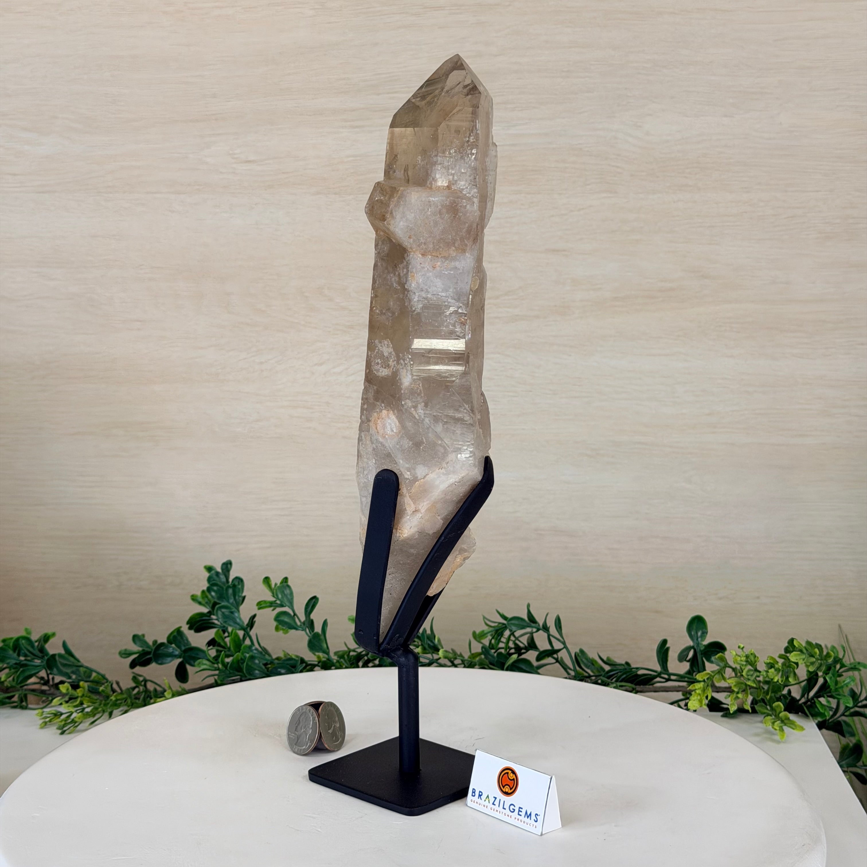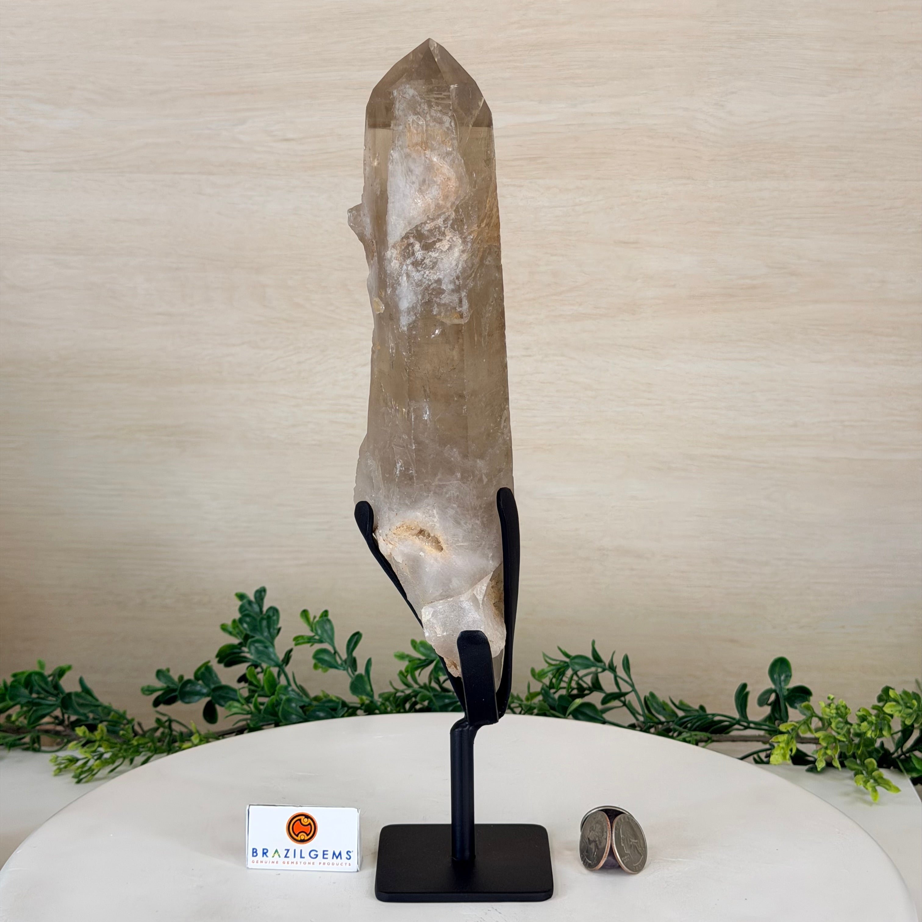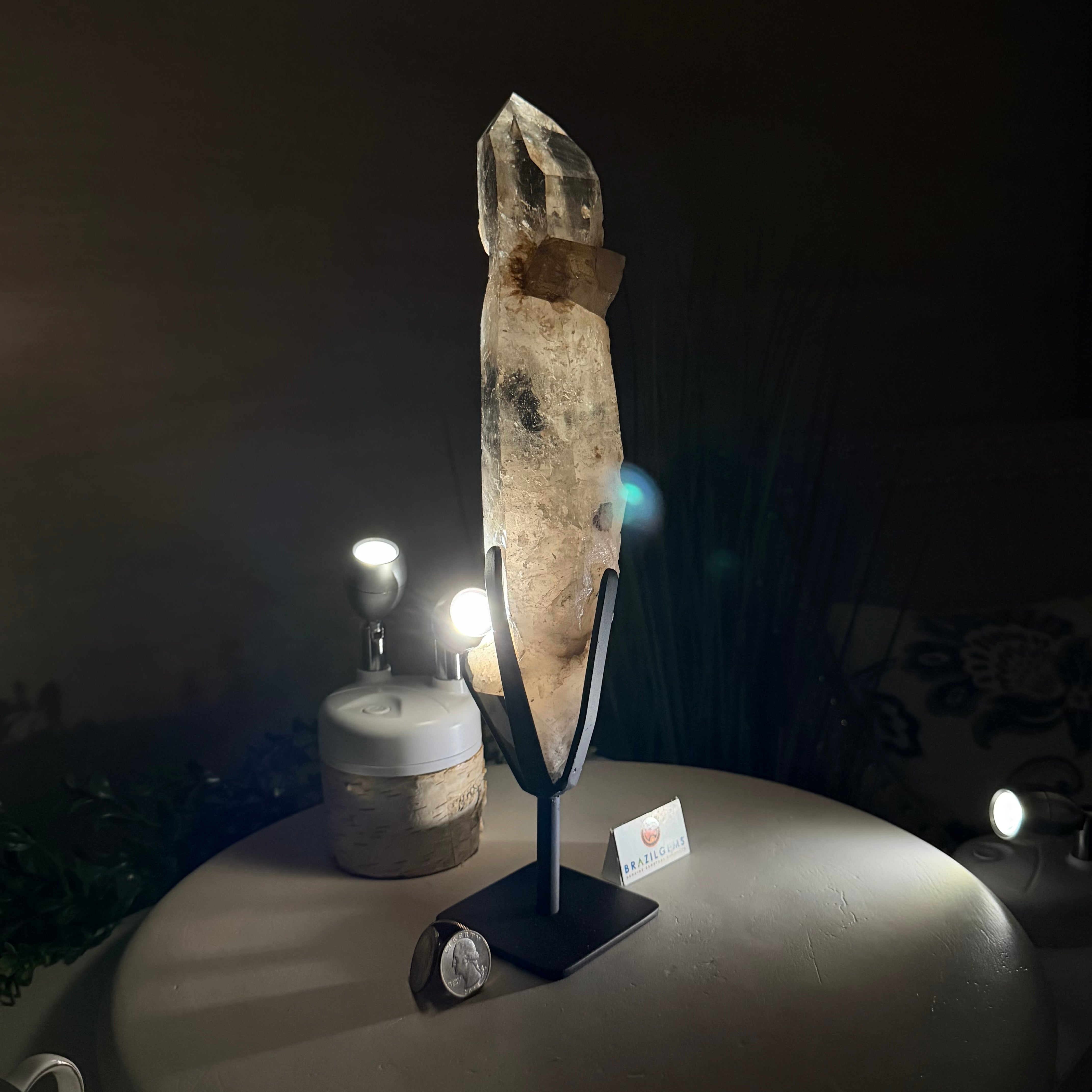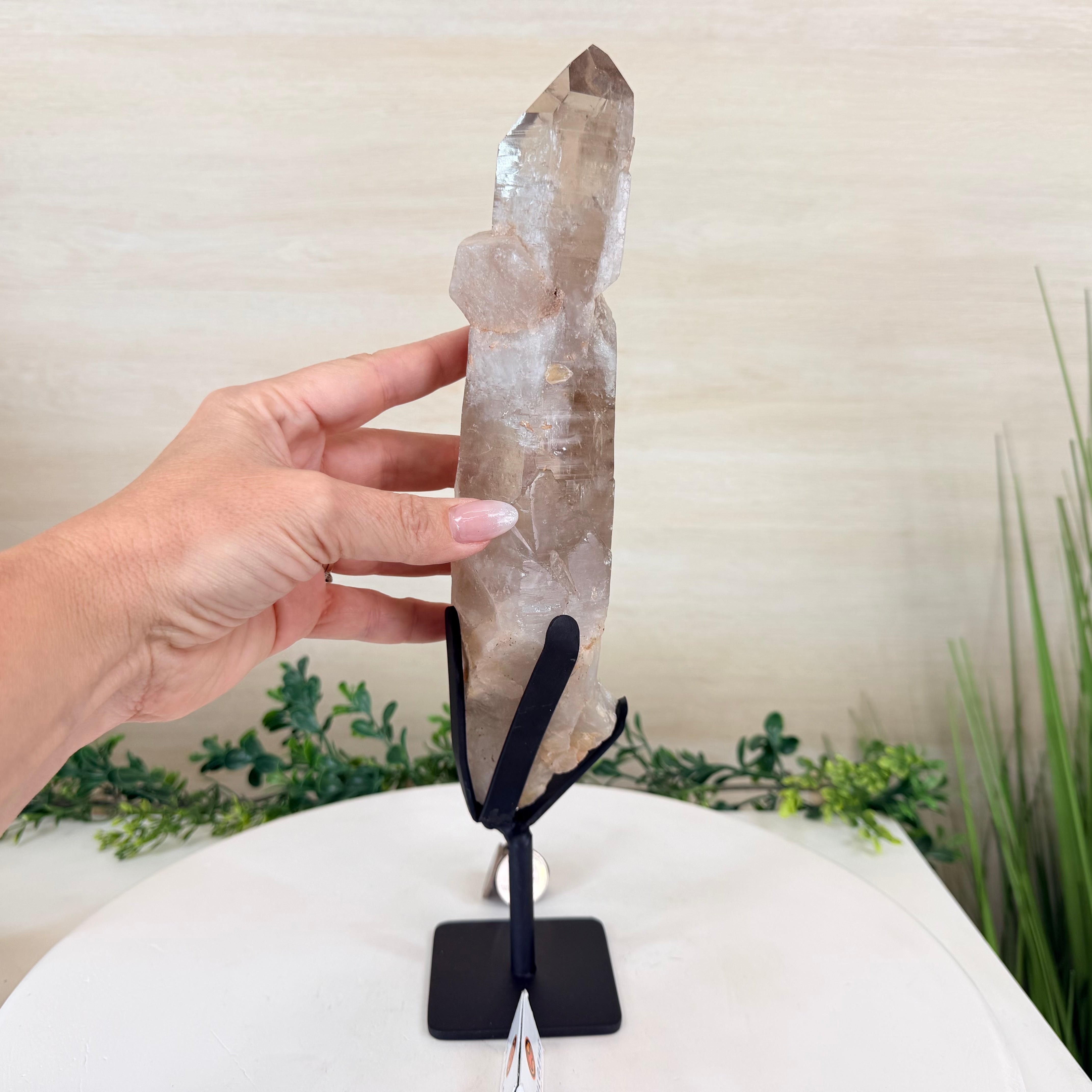 Smoky Quartz Crystal Point on a Metal Stand, 3.1 lbs & 13.2" Tall #3121SQ-002