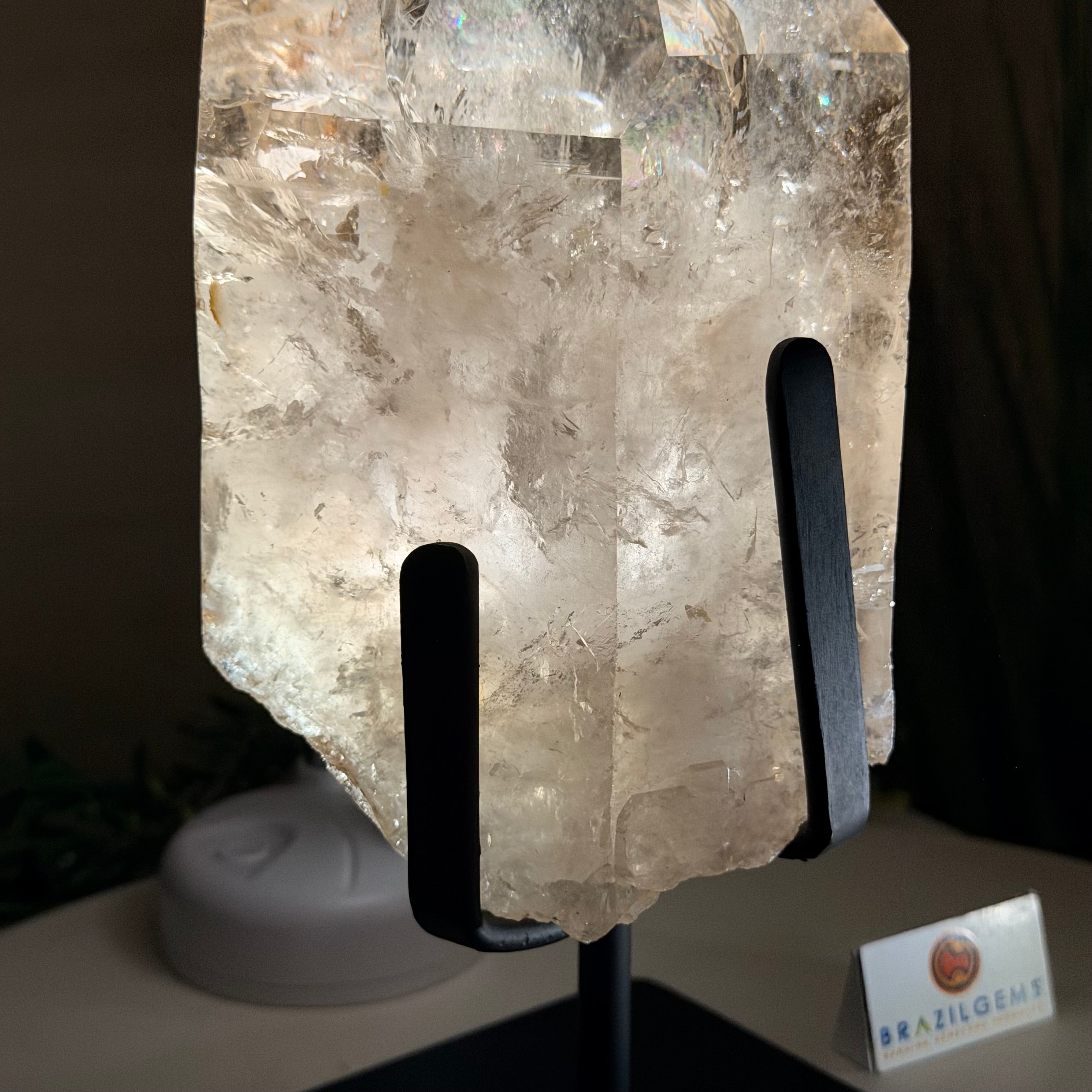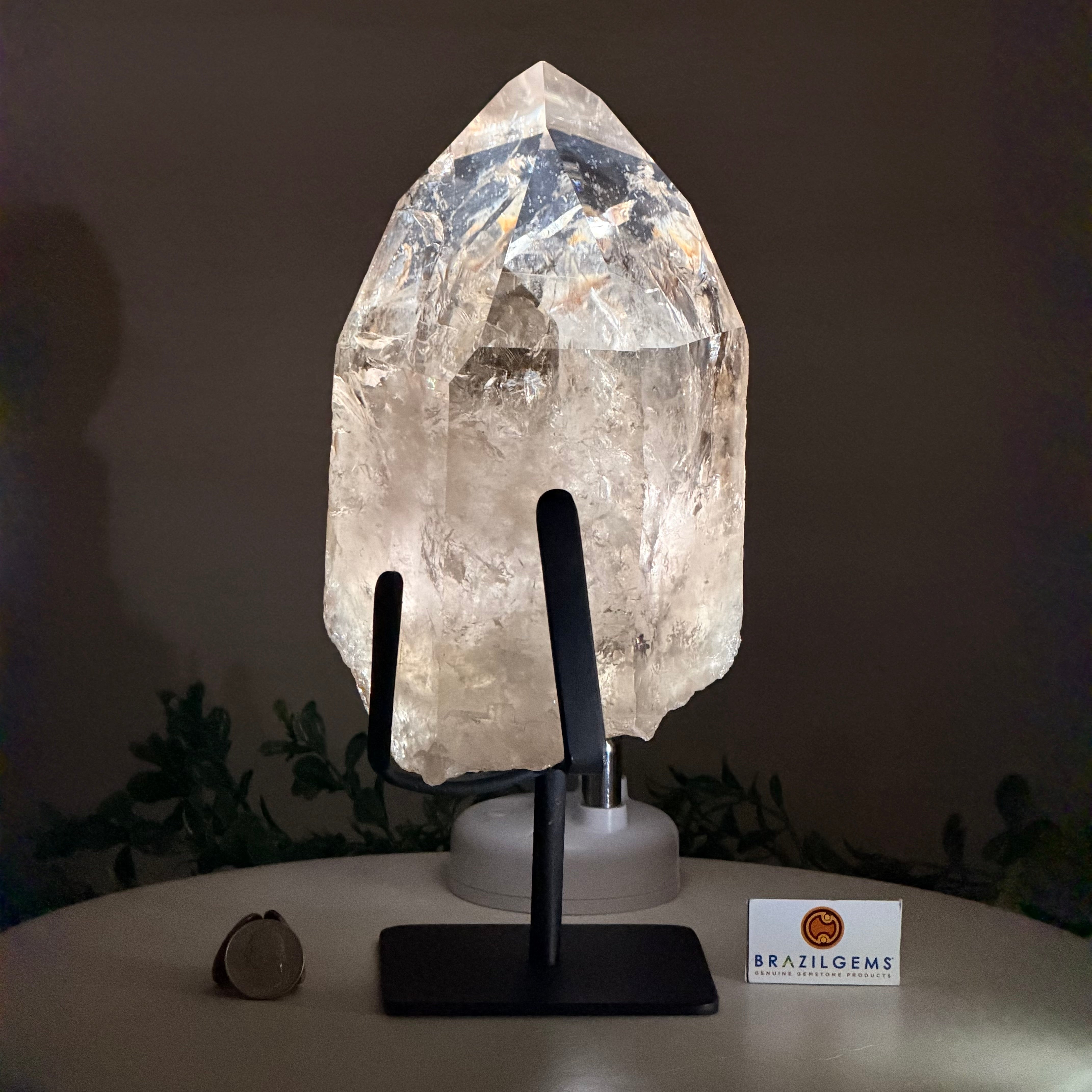 Disclaimer: This is a natural gemstone crystal sold by Brazil Gems® as is and as you see it in its images and video. It is the exact one you will receive. It may contain natural imperfections, repairs and/or broken edges from the extraction, mounting and prepping processes. The metal base is painted black and the gemstone is locked in place. At Brazil Gems® we make every effort to get measurements as exact as possible but they are done by human hands and eyes and therefore may have minor discrepancies.