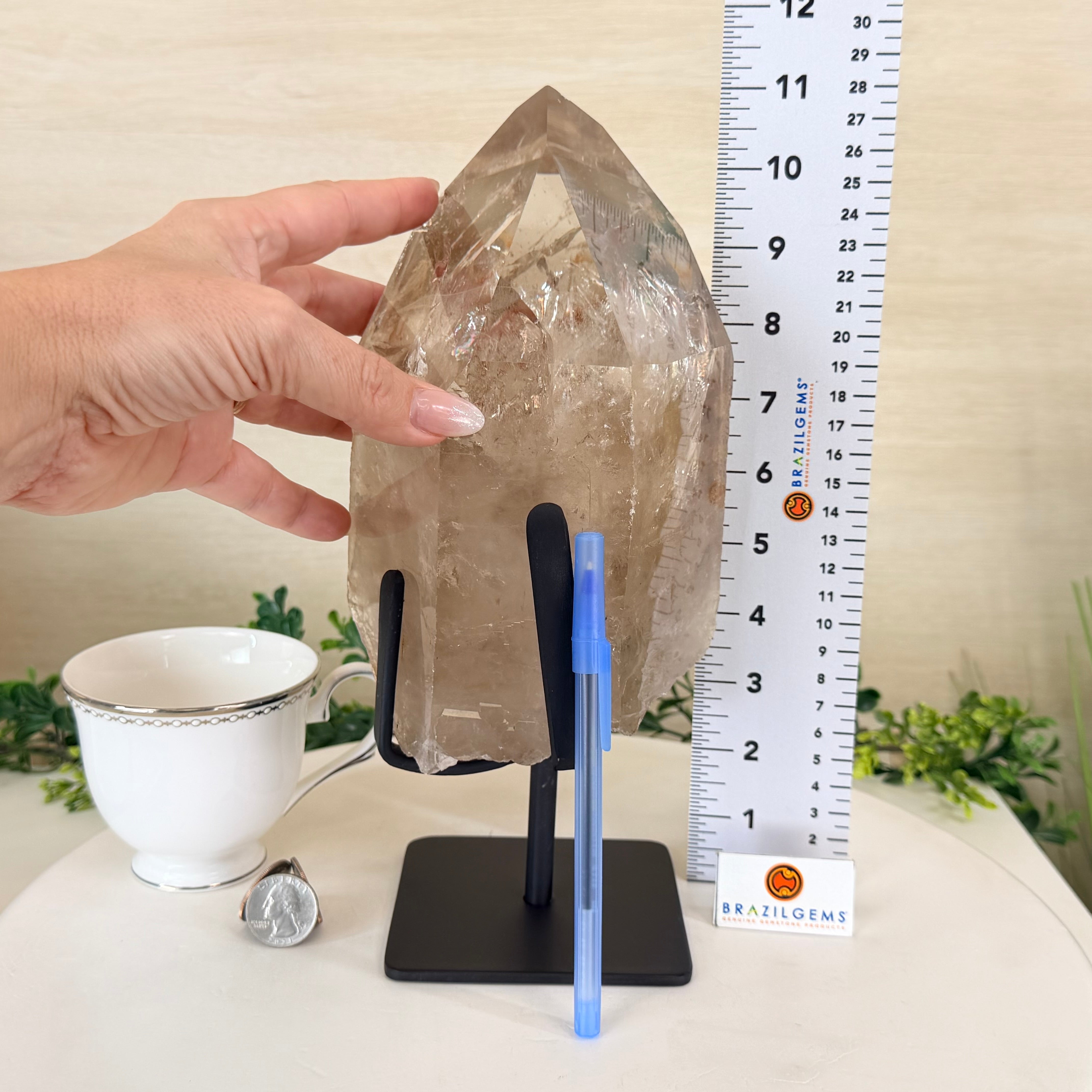Phantom Smoky Quartz Crystal Point on Stand, 9 lbs & 11" Tall #3121SQ-006