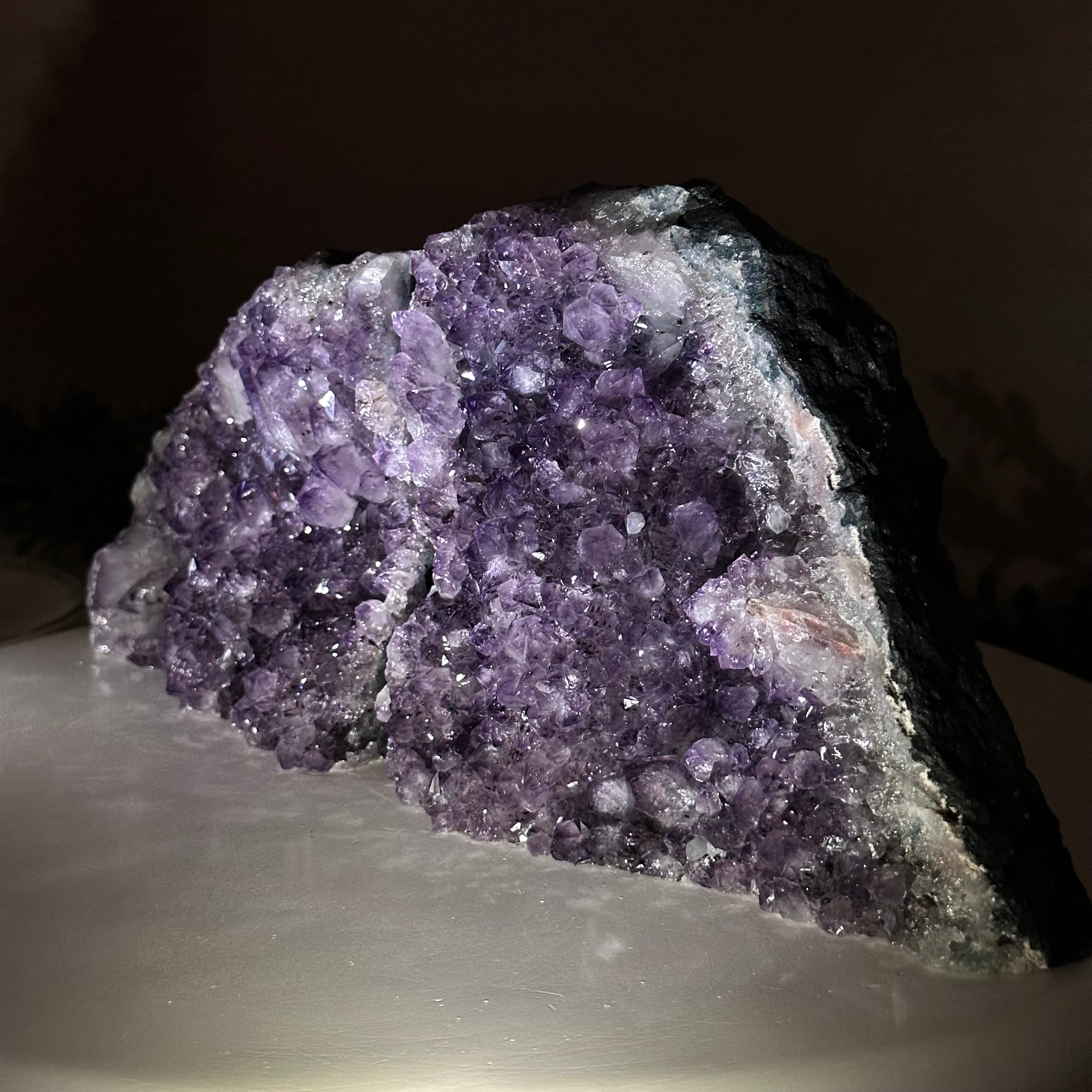 The formation of amethyst is a story of icy beauty crystallizing from a legacy of fire. Basaltic lava can cool with porous cavities that can be 15-feet long. As silica-rich waters run through these cavities, traces of silica leave the seeds of crystalline growth. The water’s iron content gives amethyst its signature purple color. Placement of amethyst in your environment is an invitation to let healing energy and the timelessness of the Earth take your journey to a higher plane. Protect your amethyst stones from direct sunlight to preserve their vibrancy.