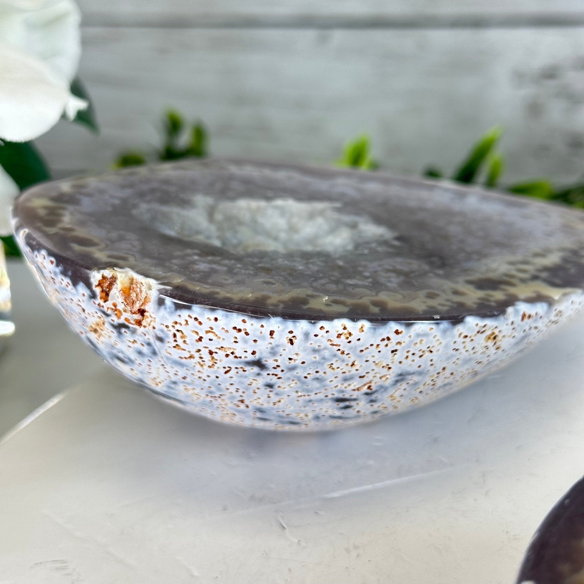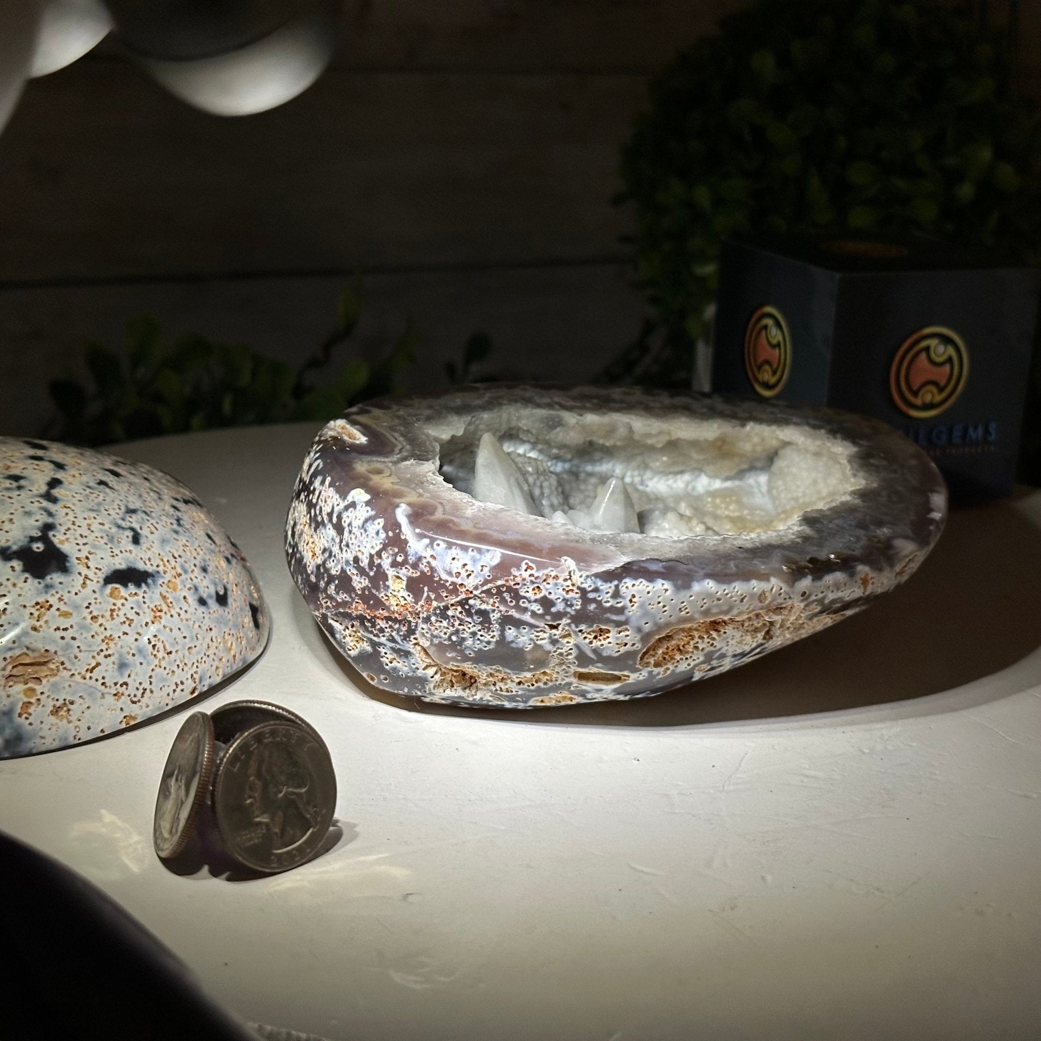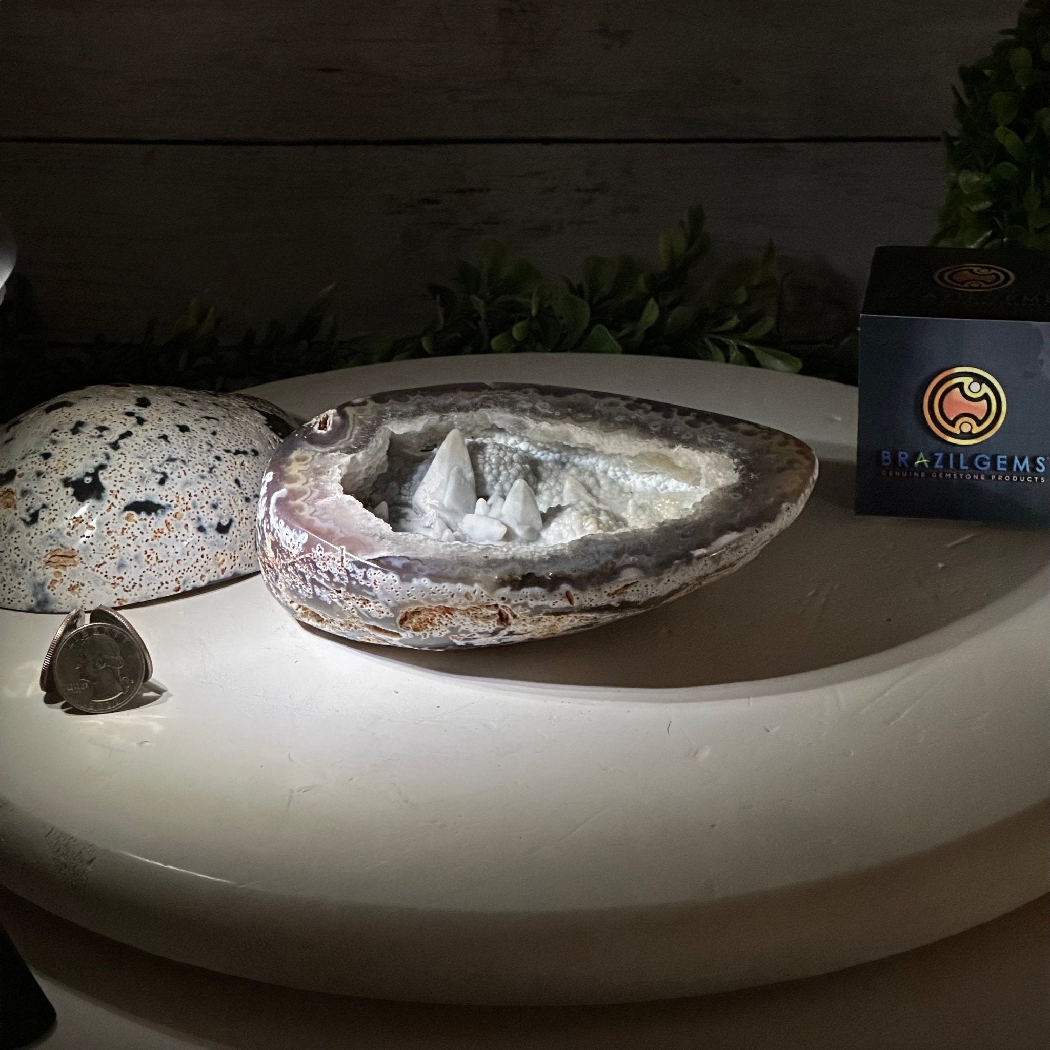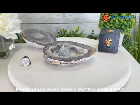 Brazil Gems® brings you this Polished Brazilian Agate Geode "Jewelry Box". It is a whole agate gemstone cut into two pieces with the lid not attached to the geode. The natural outer shell looks as amazing as the crystals inside.