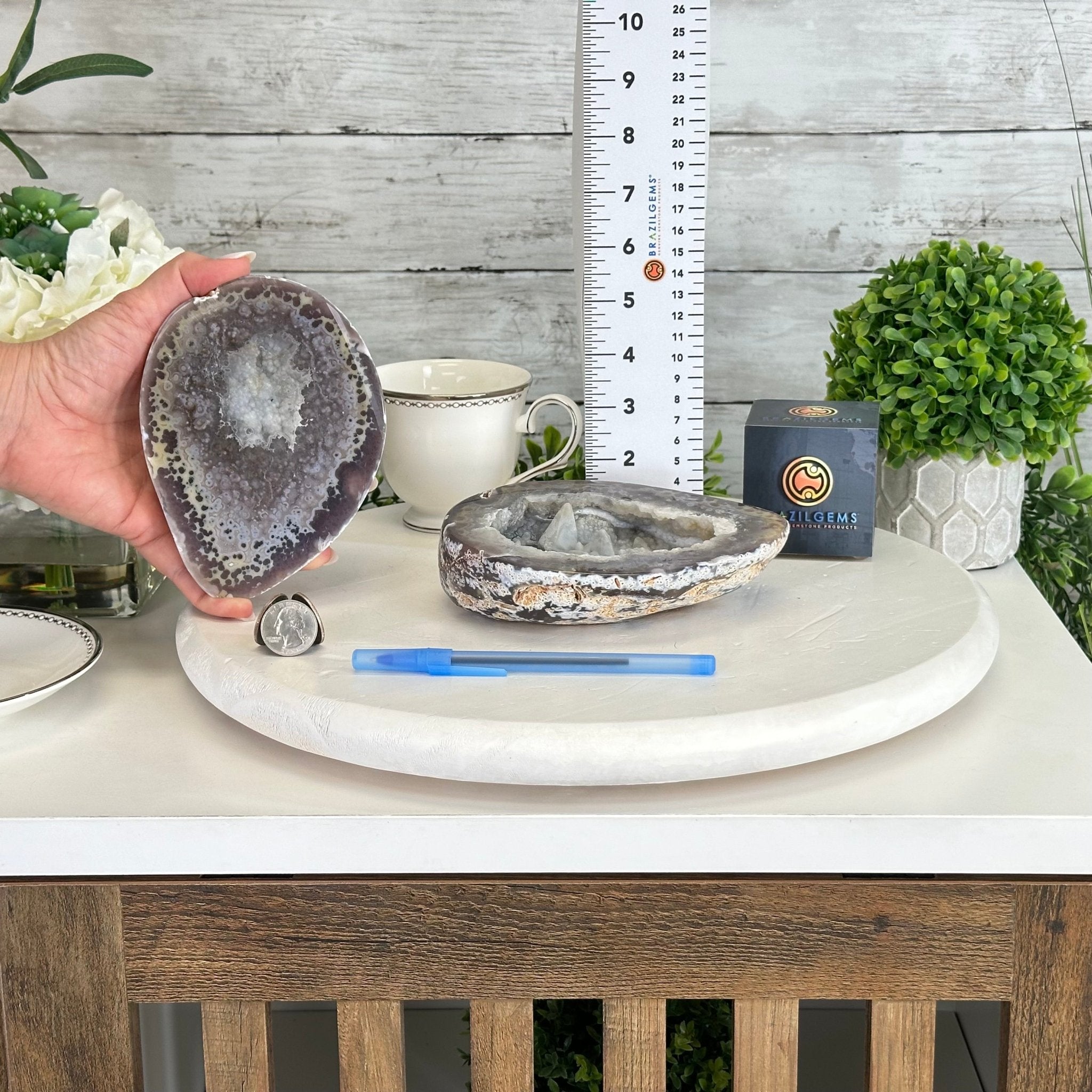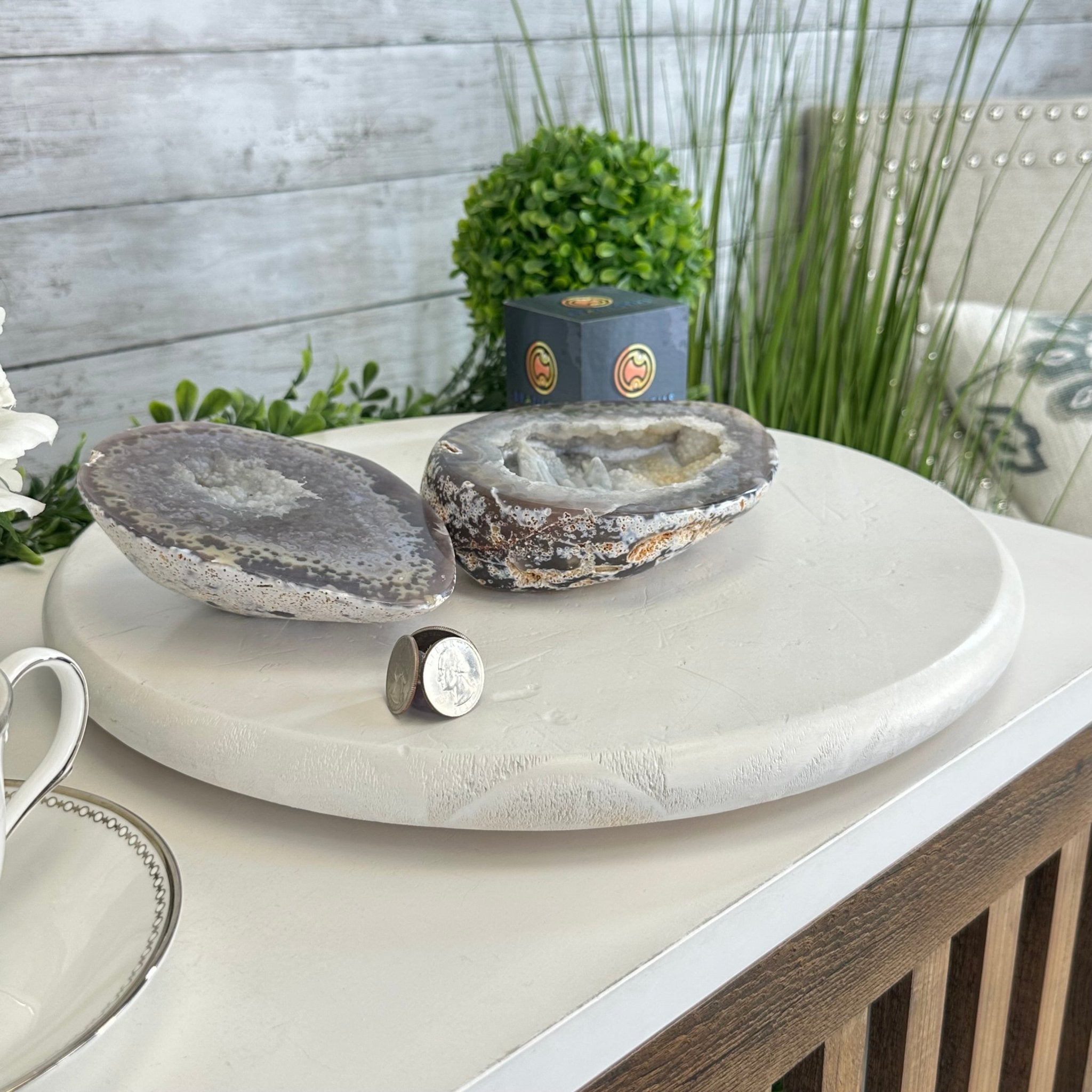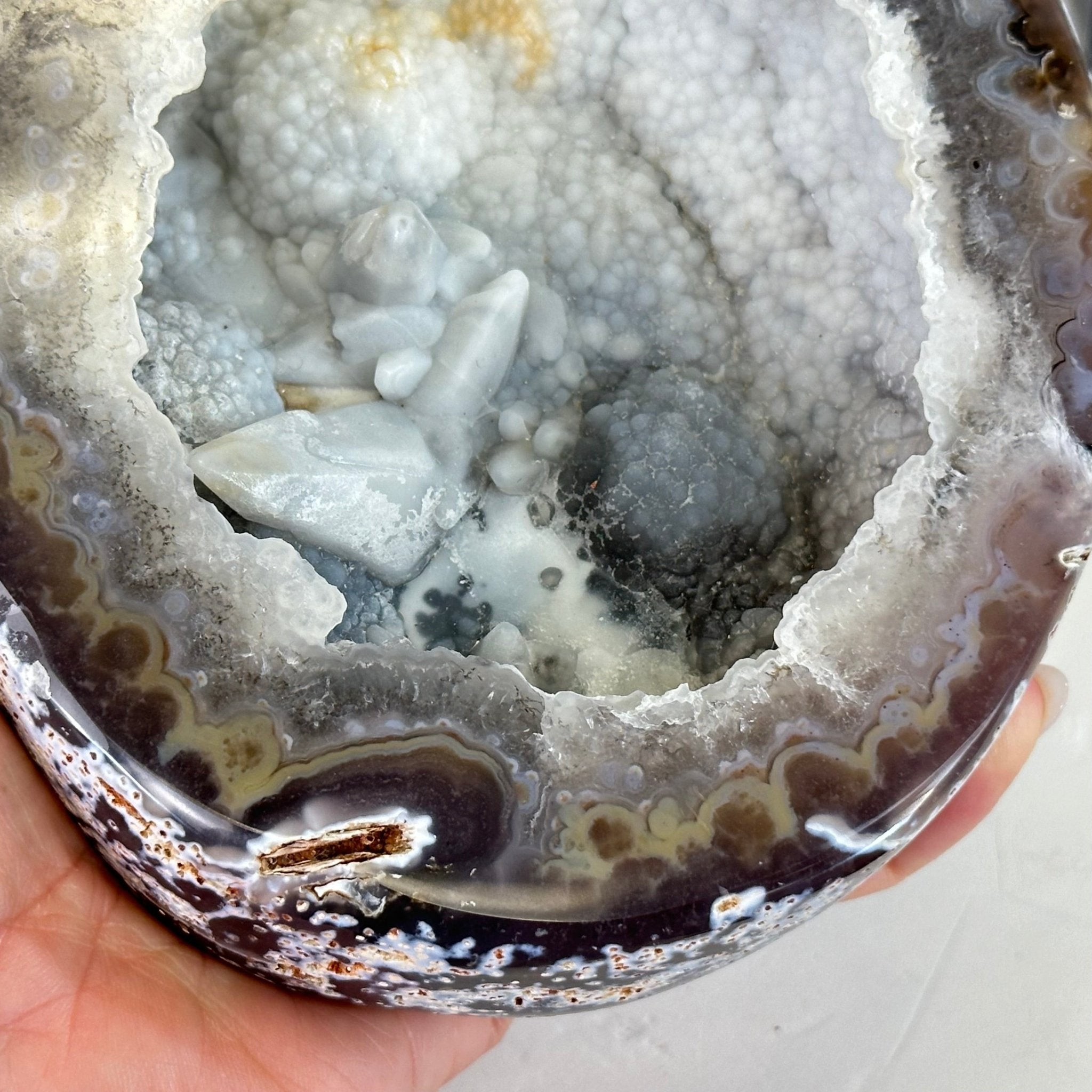 Brazil Gems® brings you this Polished Brazilian Agate Geode "Jewelry Box". It is a whole agate gemstone cut into two pieces with the lid not attached to the geode. The natural outer shell looks as amazing as the crystals inside.