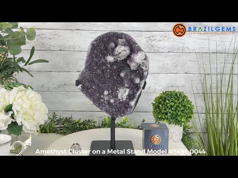 Brazil Gems® brings you this Extra Quality Natural Uruguayan Amethyst Cluster on a black metal base. This gemstone has sparkling and nicely shaped amethyst points with lovely agate bands surrounding.