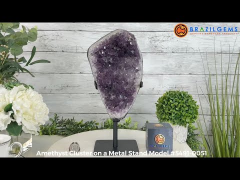 Disclaimer: This is a natural gemstone crystal sold by Brazil Gems® as is and as you see it in its images and video. It is the exact piece you will receive. It may contain natural imperfections as well as imperfections, repairs, scratches and/or broken edges from the extraction, polishing, mounting and prepping processes. The metal stand has been hand welded to fit this exact piece and then painted black. The crystal piece cannot be removed from its metal stand. At Brazil Gems®, we make every effort to get measurements as exact as possible but they are done by human hands and eyes and therefore may have minor discrepancies.