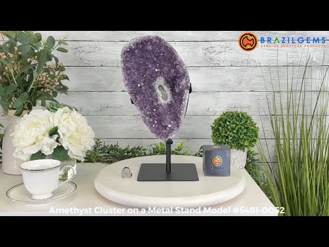Disclaimer: This is a natural gemstone crystal sold by Brazil Gems® as is and as you see it in its images and video. It is the exact piece you will receive. It may contain natural imperfections as well as imperfections, repairs, scratches and/or broken edges from the extraction, polishing, mounting and prepping processes. The metal stand has been hand welded to fit this exact piece and then painted black. The crystal piece cannot be removed from its metal stand. At Brazil Gems®, we make every effort to get measurements as exact as possible but they are done by human hands and eyes and therefore may have minor discrepancies.