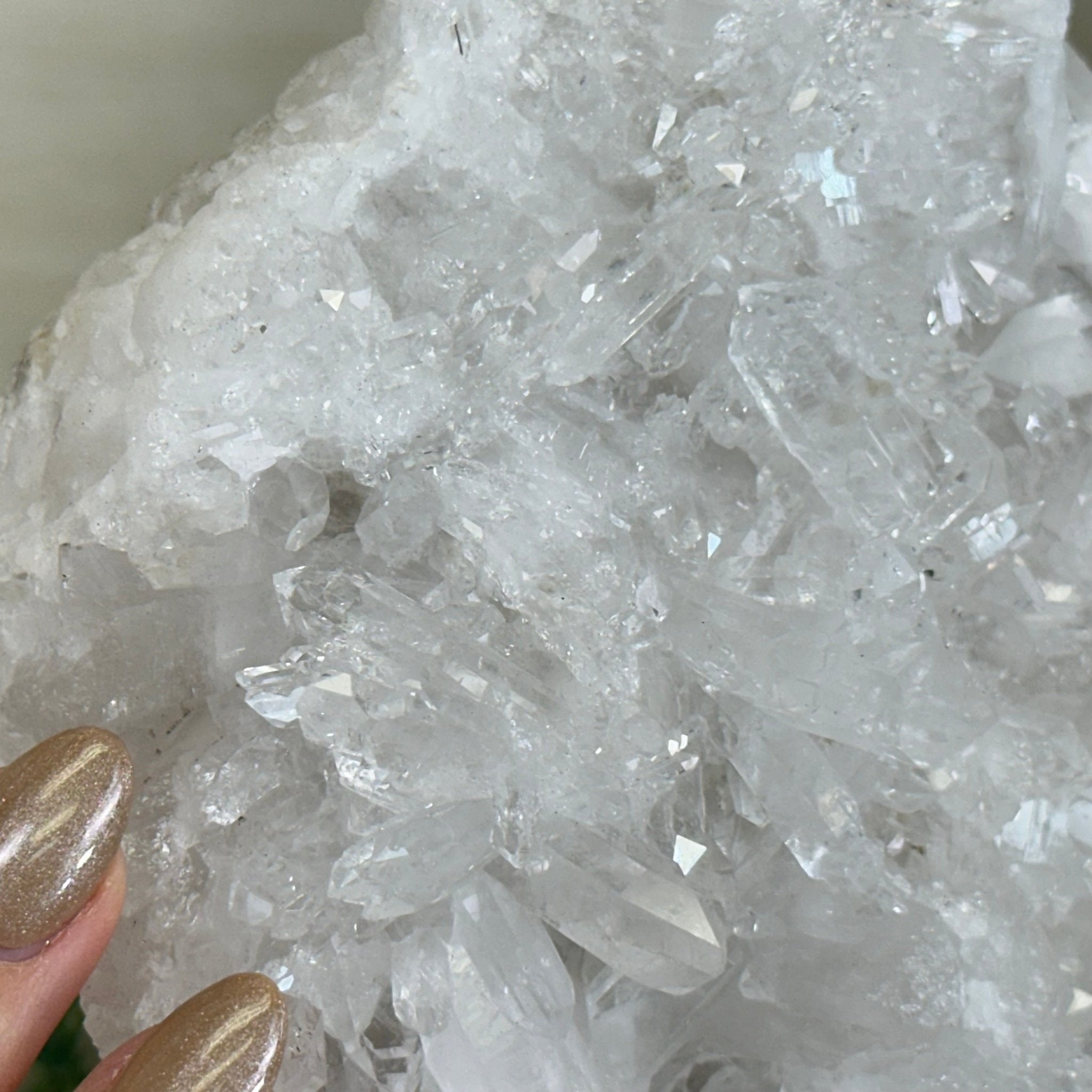 Chakra Associations: Clear Quartz is primarily associated with the Crown Chakra. The crown chakra, or Sahasrara, is located at the top of the head and is the center of spiritual connection, enlightenment, and higher consciousness. Clear Quartz's amplifying and purifying properties help to open, align, and balance the crown chakra, enhancing spiritual awareness, clarity of thought, and connection to universal energy. It is also known for its ability to harmonize all the chakras, making it a versatile and powerful crystal for overall energetic balance and healing.