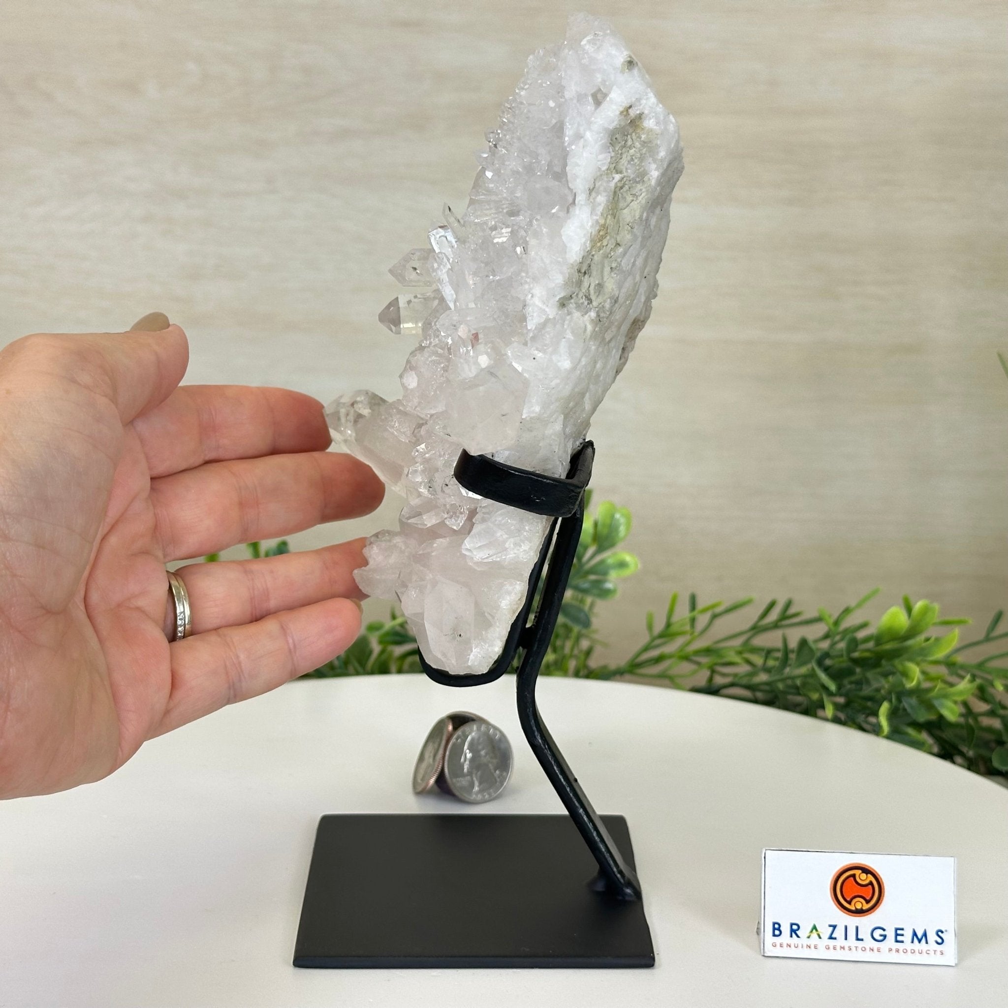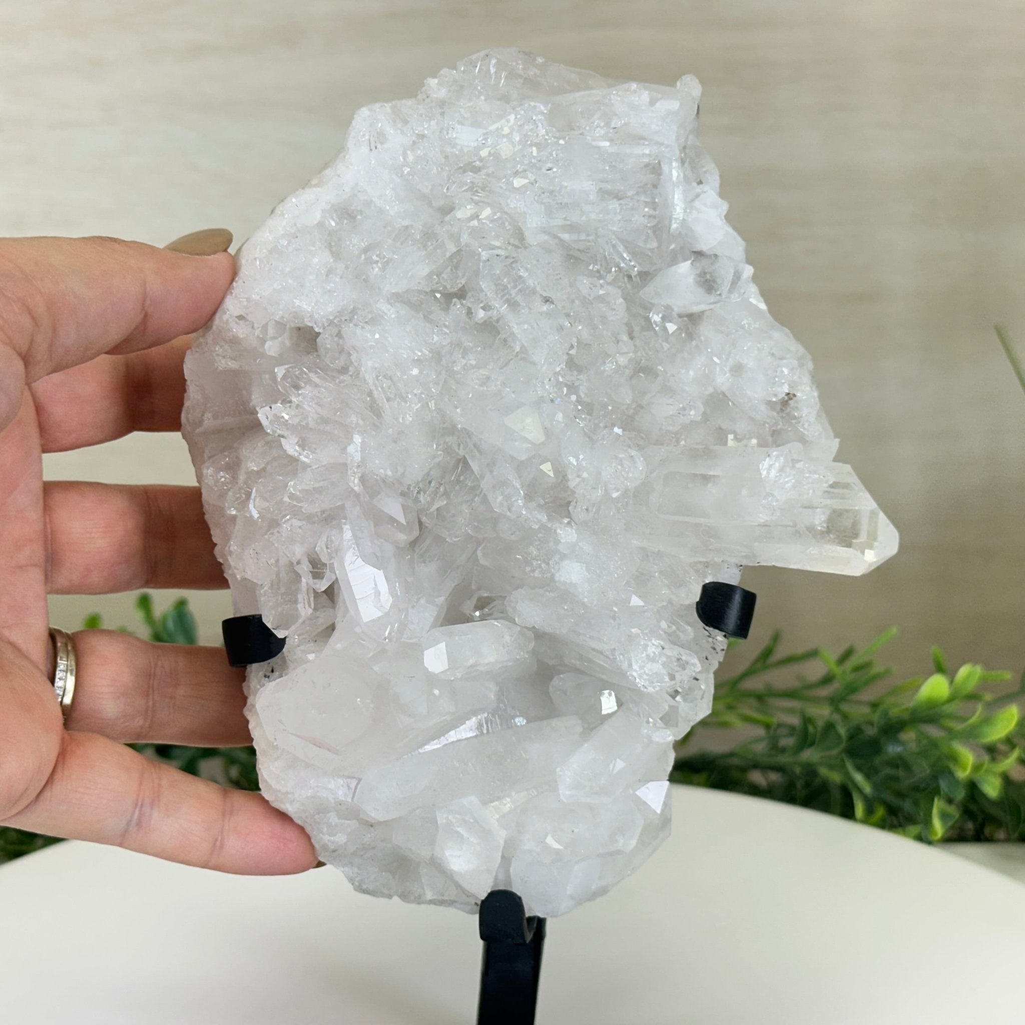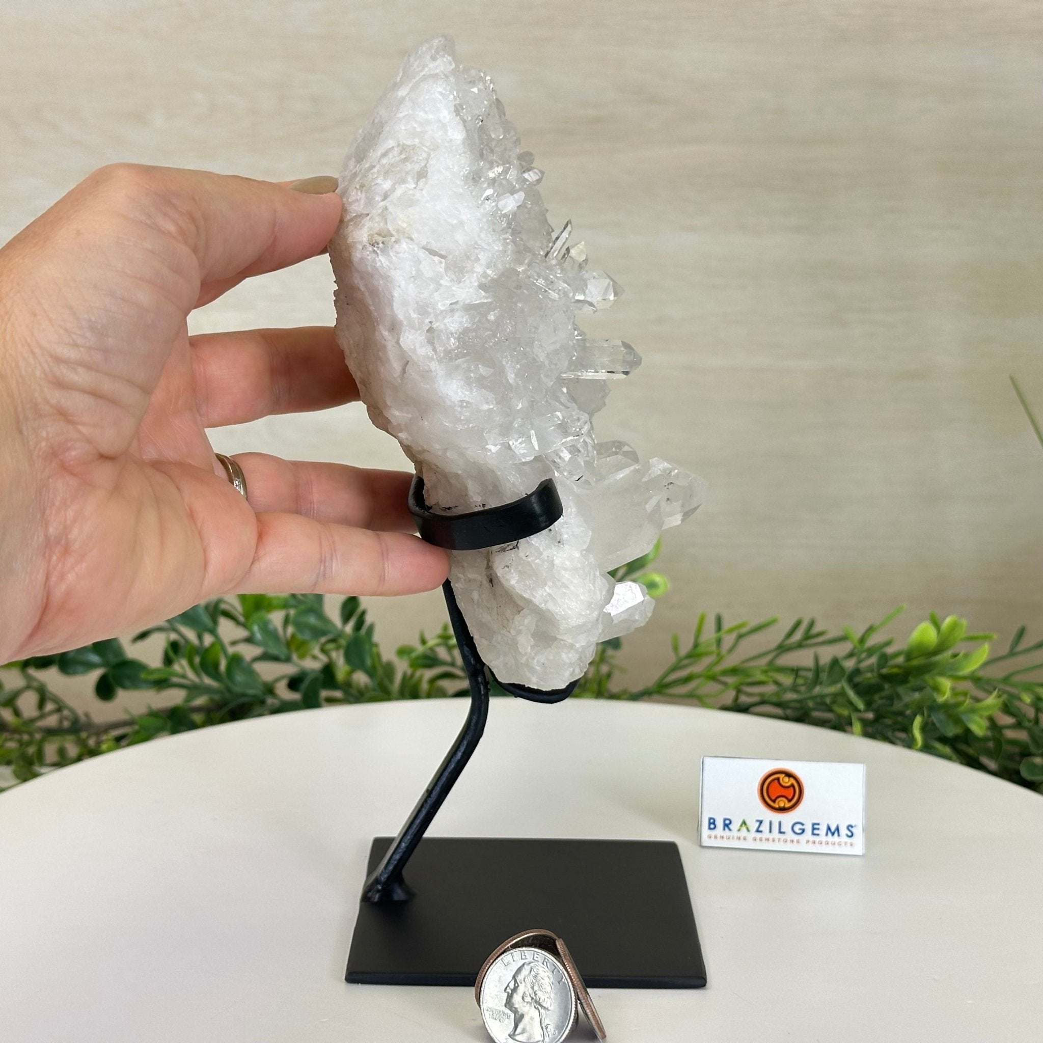 Super Quality Clear Quartz Cluster, Metal Stand, 3.1 lbs & 8.8" Tall #5495-0082