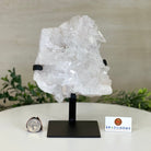 A testament to nature's sublime artistry, this extraordinary Brazilian Super Quality Clear Quartz Cluster by Brazil Gems® will boost your crystal collection to new heights. Elevated upon an elegant metal foundation, its commanding presence and radiant crystalline formations instantly captivate the observer's gaze. Each transparent facet reveals an intricate tableau of geological phenomena—a silent narrative of Earth's patient craftsmanship over countless millennia.
