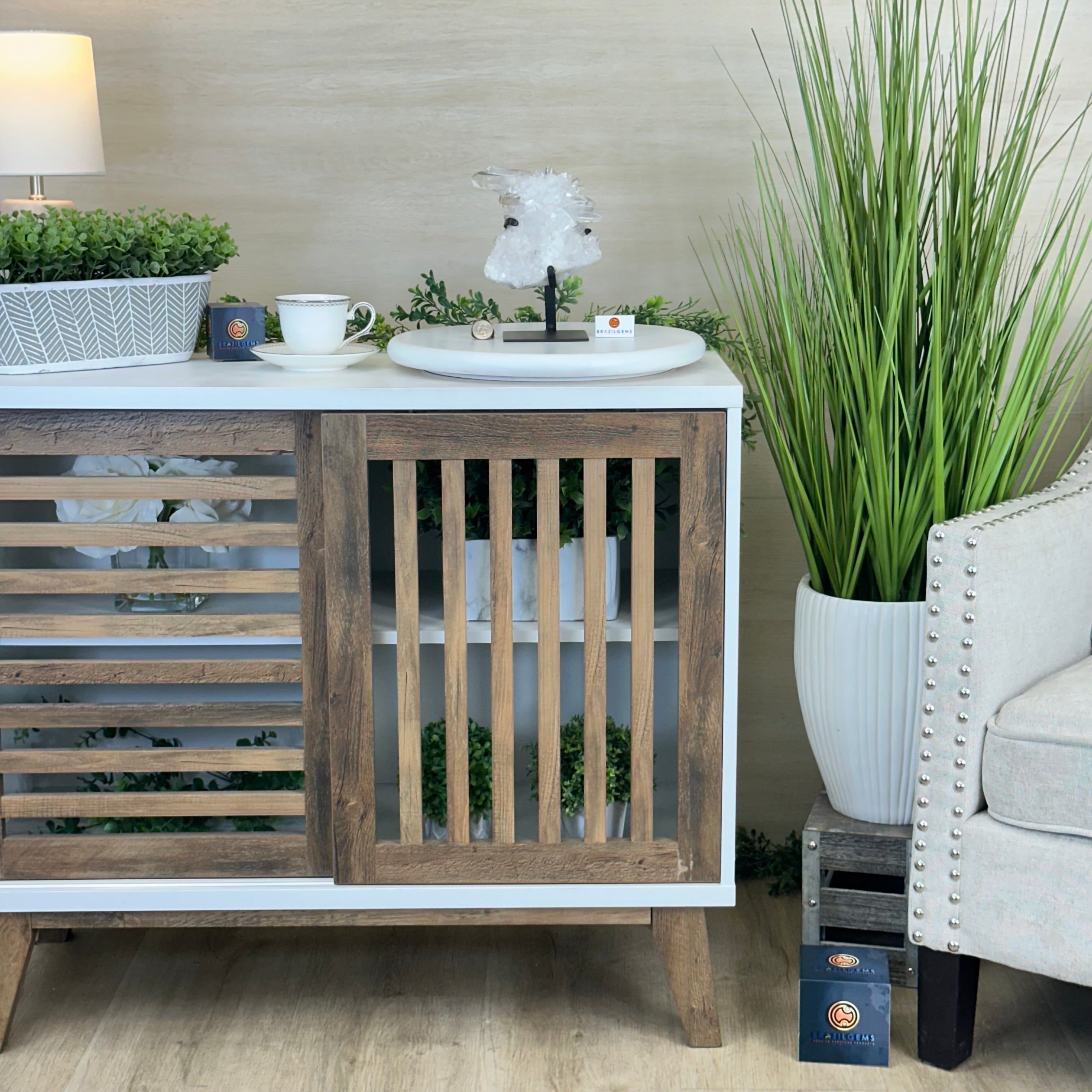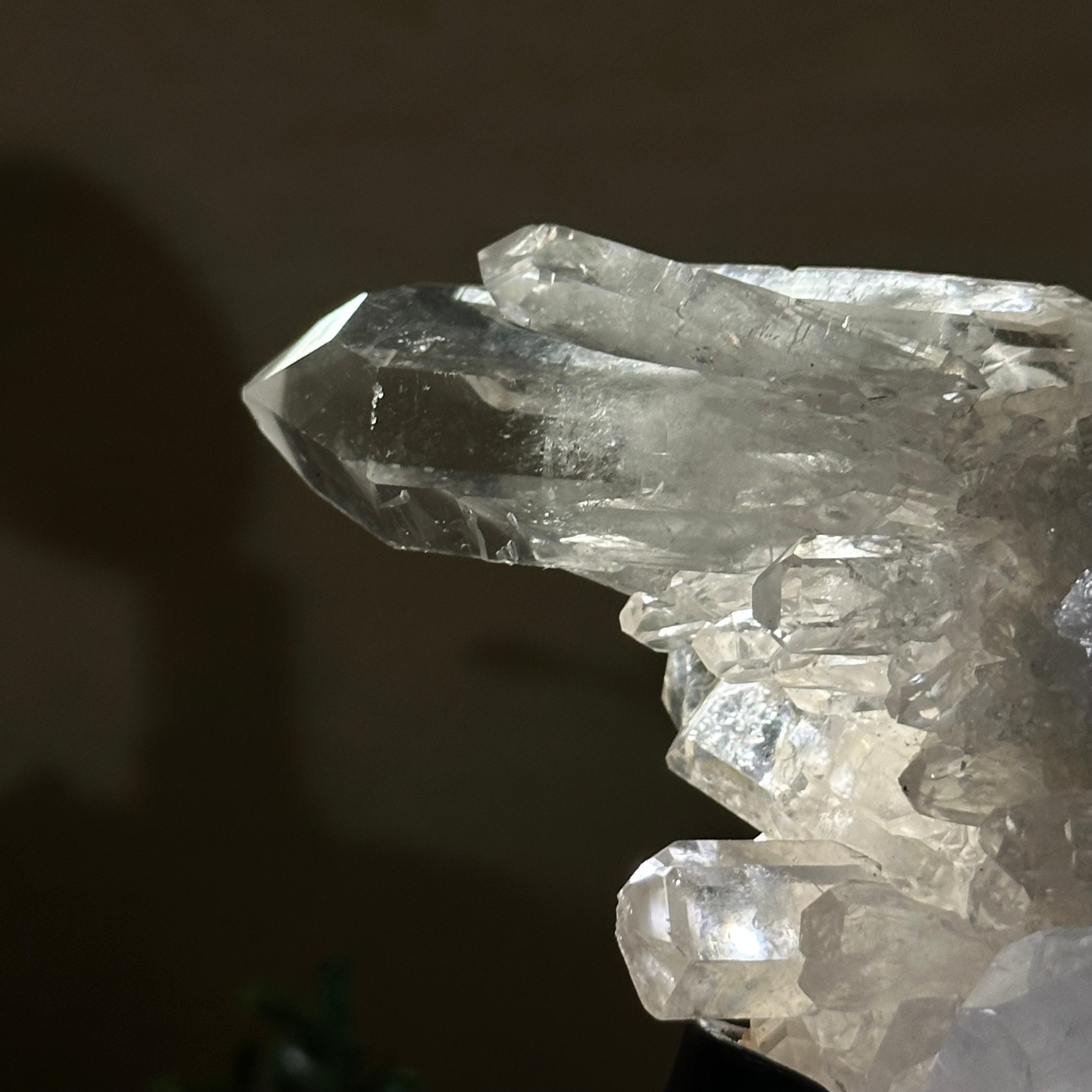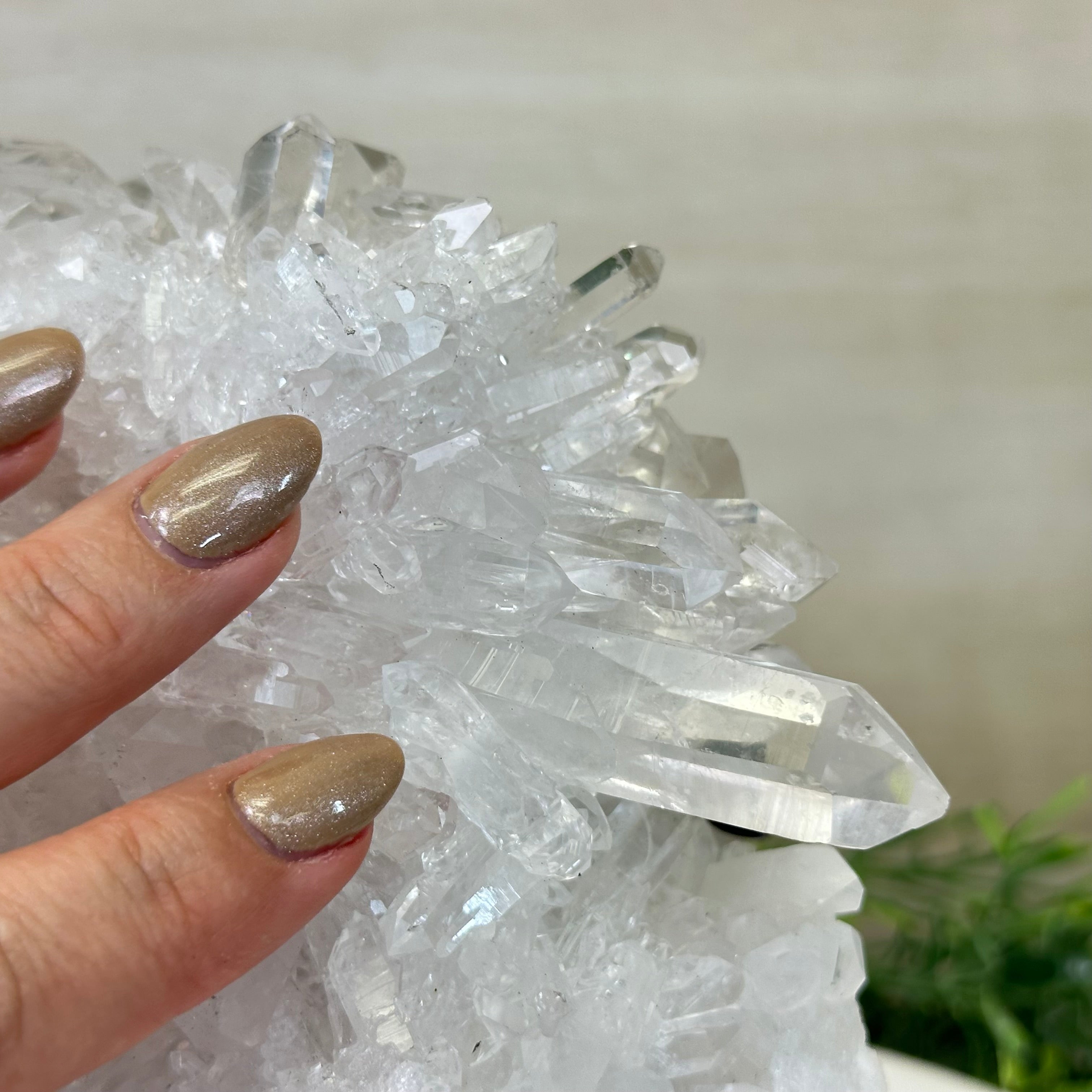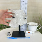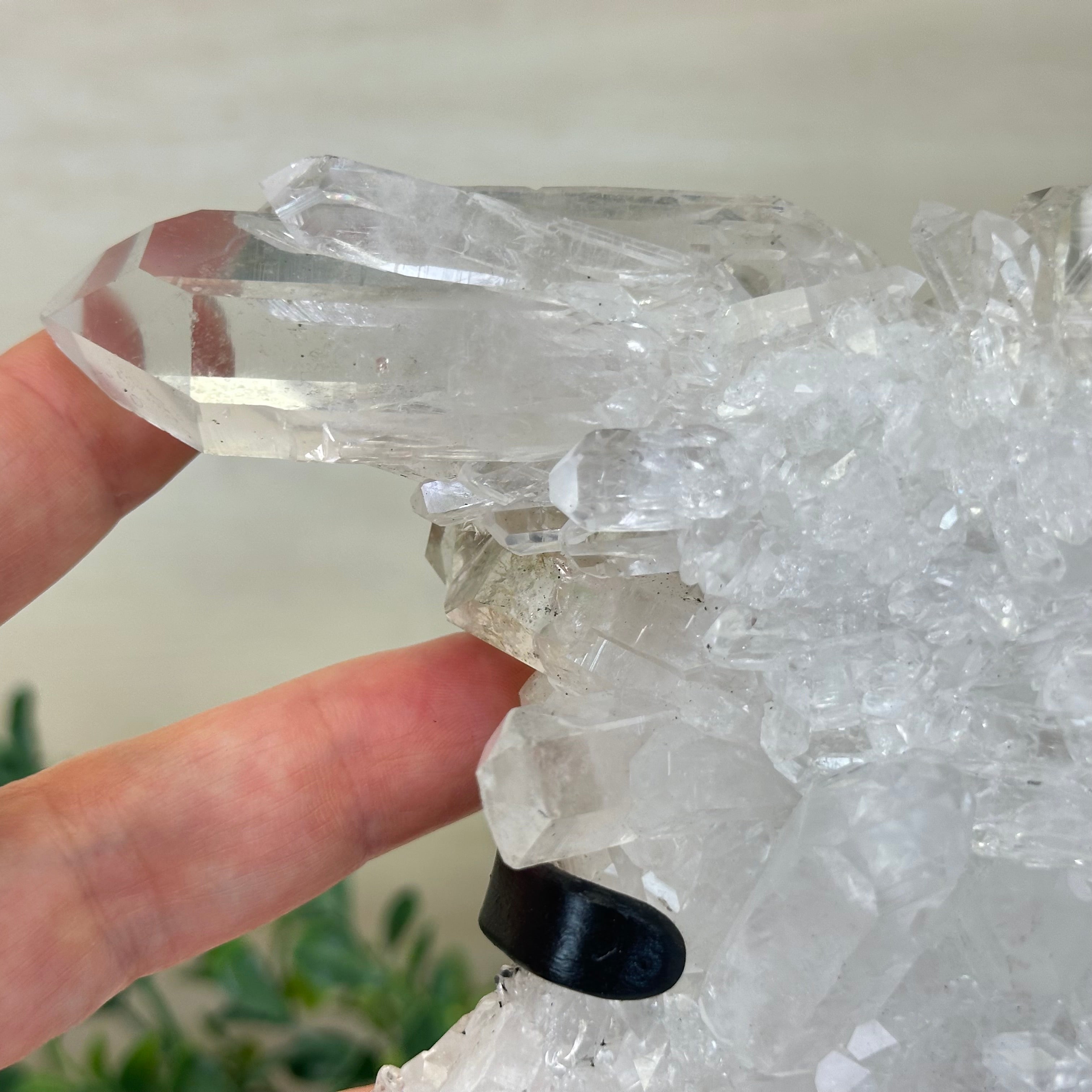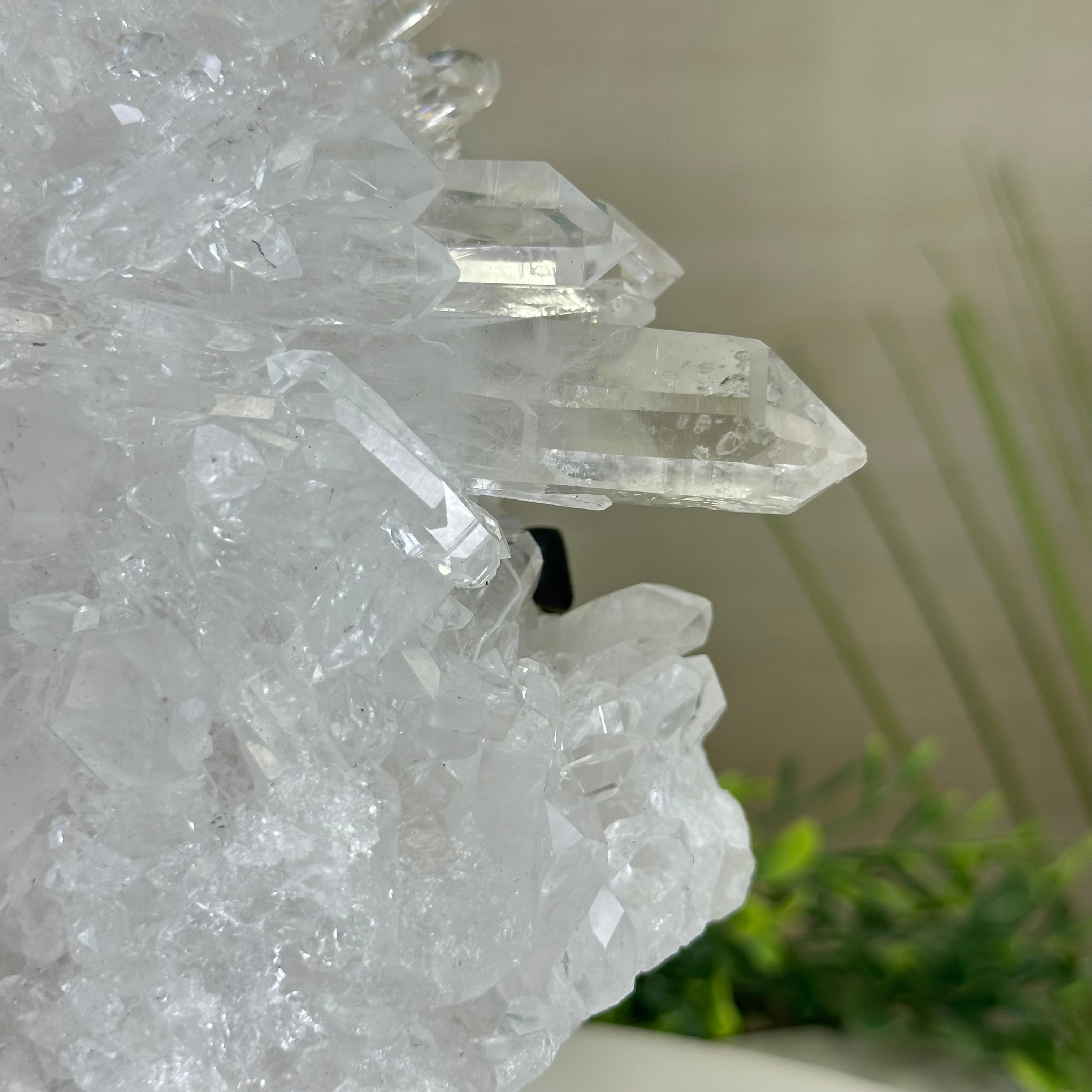 A testament to nature's sublime artistry, this extraordinary Brazilian Super Quality Clear Quartz Cluster by Brazil Gems® will boost your crystal collection to new heights. Elevated upon an elegant metal foundation, its commanding presence and radiant crystalline formations instantly captivate the observer's gaze. Each transparent facet reveals an intricate tableau of geological phenomena—a silent narrative of Earth's patient craftsmanship over countless millennia.