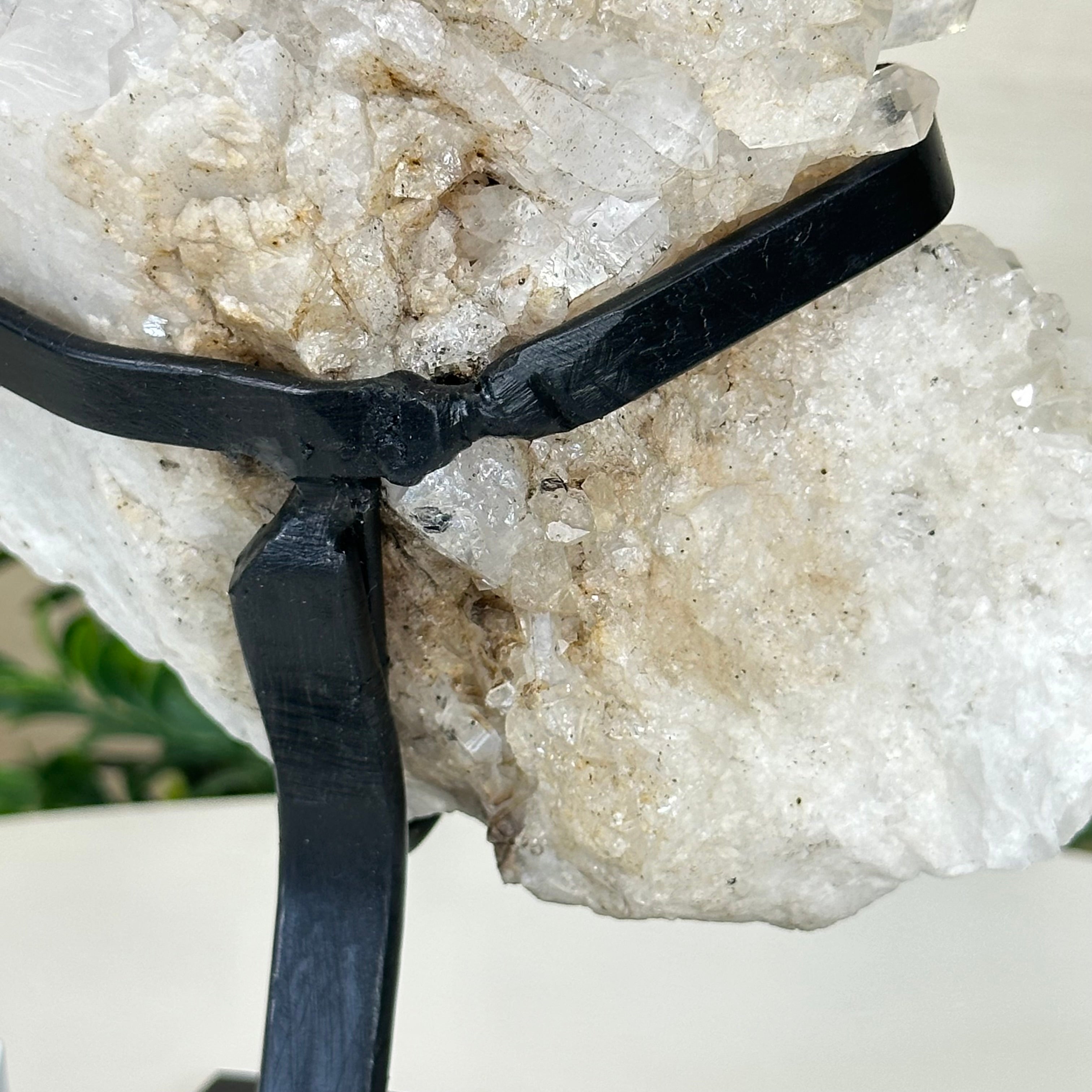 Disclaimer: This is a natural gemstone crystal sold by Brazil Gems® as is and as you see it in its images and video. It is the exact piece you will receive. It may contain natural imperfections as well as imperfections, repairs, scratches and/or broken edges from the extraction, polishing, mounting and prepping processes. The metal stand has been hand welded to fit this exact piece and then painted black. The crystal piece cannot be removed from its metal stand. At Brazil Gems®, we make every effort to get measurements as exact as possible but they are done by human hands and eyes and therefore may have minor discrepancies.