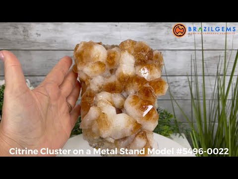 Brazilian Citrine Crystal Cluster, metal base, 9.3 lbs & 10.5" Tall Model #5496-0022 by Brazil Gems