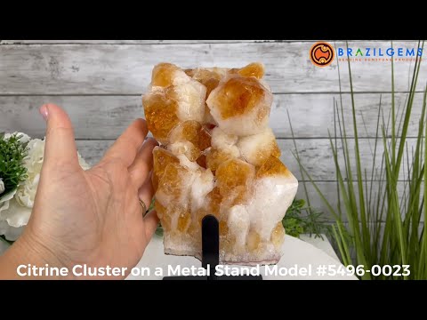 Disclaimer: This is a natural gemstone crystal sold by Brazil Gems® as is and as you see it in its images and video. It is the exact piece you will receive. It may contain natural imperfections as well as imperfections, repairs (including a clear glue to stabilize loose crystal points), scratches and/or broken edges from the extraction, polishing, mounting and prepping processes. The metal stand has been hand welded to fit this exact piece and then painted black. The crystal piece cannot be removed from its metal stand. At Brazil Gems®, we make every effort to get measurements as exact as possible but they are done by human hands and eyes and therefore may have minor discrepancies. As is the case for the majority of Citrine on the market from Brazil, this Citrine has been heated in a kiln to give it its beautiful amber color.