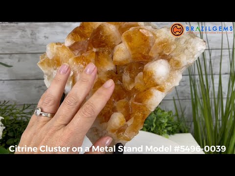 Disclaimer: This is a natural gemstone crystal sold by Brazil Gems® as is and as you see it in its images and video. It is the exact piece you will receive. It may contain natural imperfections as well as imperfections, repairs (including a clear glue to stabilize loose crystal points), scratches and/or broken edges from the extraction, polishing, mounting and prepping processes. The metal stand has been hand welded to fit this exact piece and then painted black. The crystal piece cannot be removed from its metal stand. At Brazil Gems®, we make every effort to get measurements as exact as possible but they are done by human hands and eyes and therefore may have minor discrepancies. As is the case for the majority of Citrine on the market from Brazil, this Citrine has been heated in a kiln to give it its beautiful amber color.