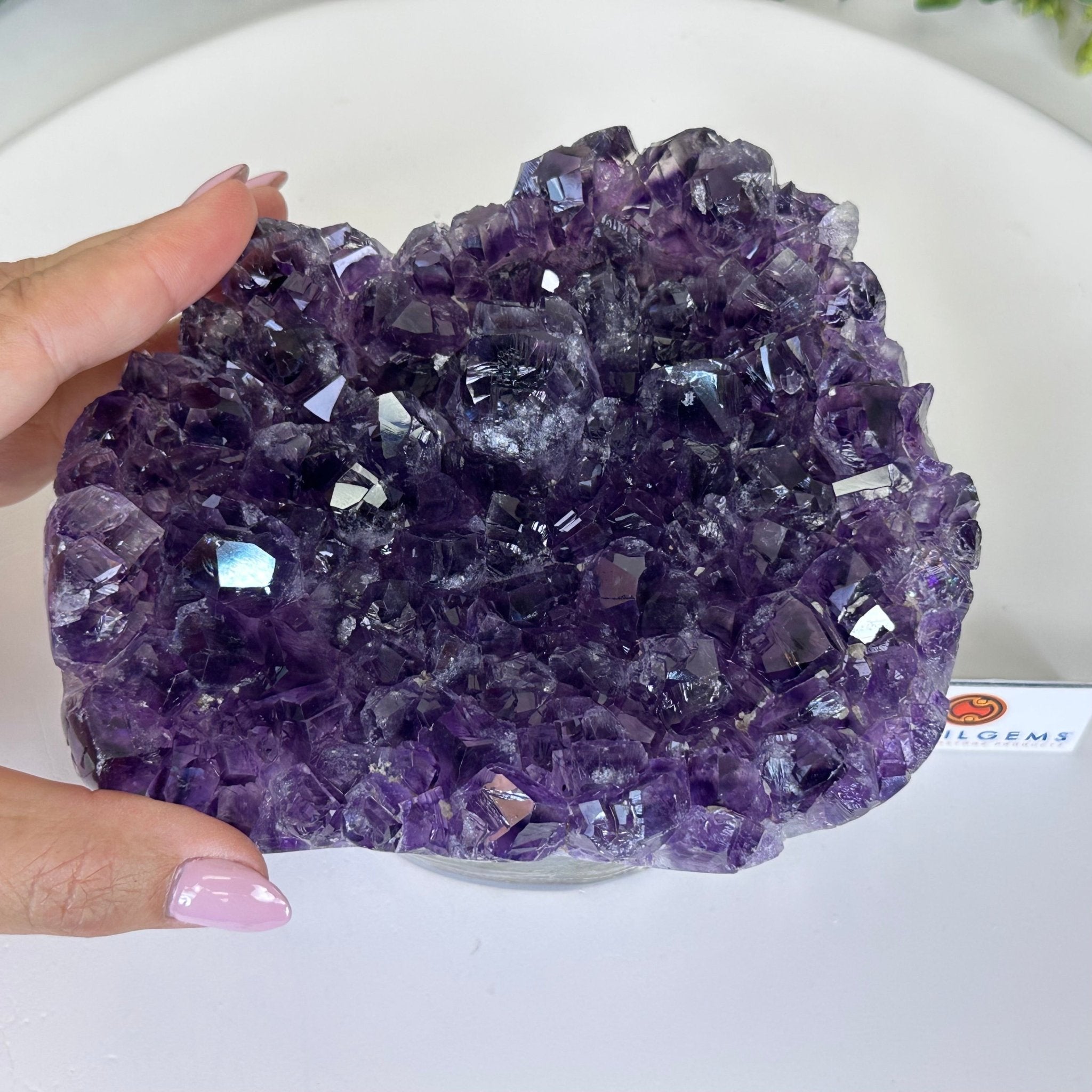 DisclaimerThis is a natural gemstone crystal sold by Brazil Gems® as is and as you see it in its images and video. It is the exact one you will receive. It may contain natural imperfections and/or imperfections, broken edges and repairs from the extraction, polishing and prepping processes. In order for it to stand on its own the bottom has been cut flat. At Brazil Gems®, we make every effort to get measurements as exact as possible but they are done by human hands and eyes and therefore may have minor discrepancies.